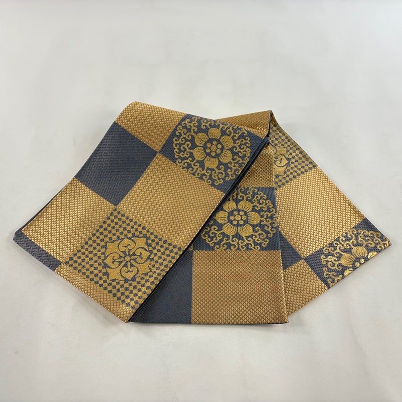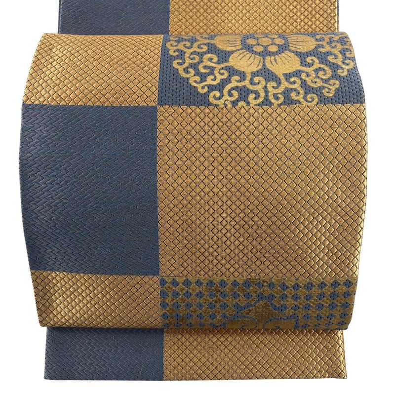 セミフォーマルでお使いいただける袋帯でございます。 見る人に重たい印象を感じさせない女性ならではの、気品豊かな一品です。 締め跡がございます。 表地所々に金彩の変色がございます。 リユース品としては良い状態で、まだまだご活用頂けると思われます。 ※なお、厳しく商品の状態確認を行っておりますが、記載の汚れ以外にも見落とし箇所がある可能性がある旨ご了承いただけますと幸いです。 沢山の商品の中からご覧いただき誠にありがとうございます。