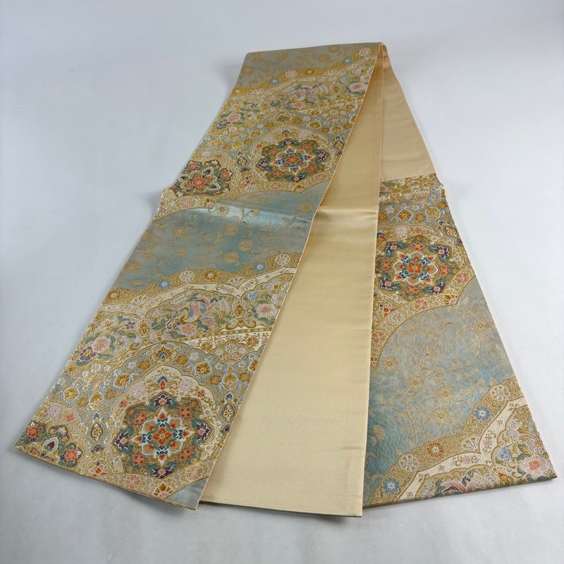 【着物ランク】秀品 【素材】正絹 【帯丈】約428cm 【帯幅】約30.5cm 【帯仕立て】仕立て上がり 【状態ランク】ランクA 【帯着用シーン】フォーマル(留袖・振袖・訪問着)