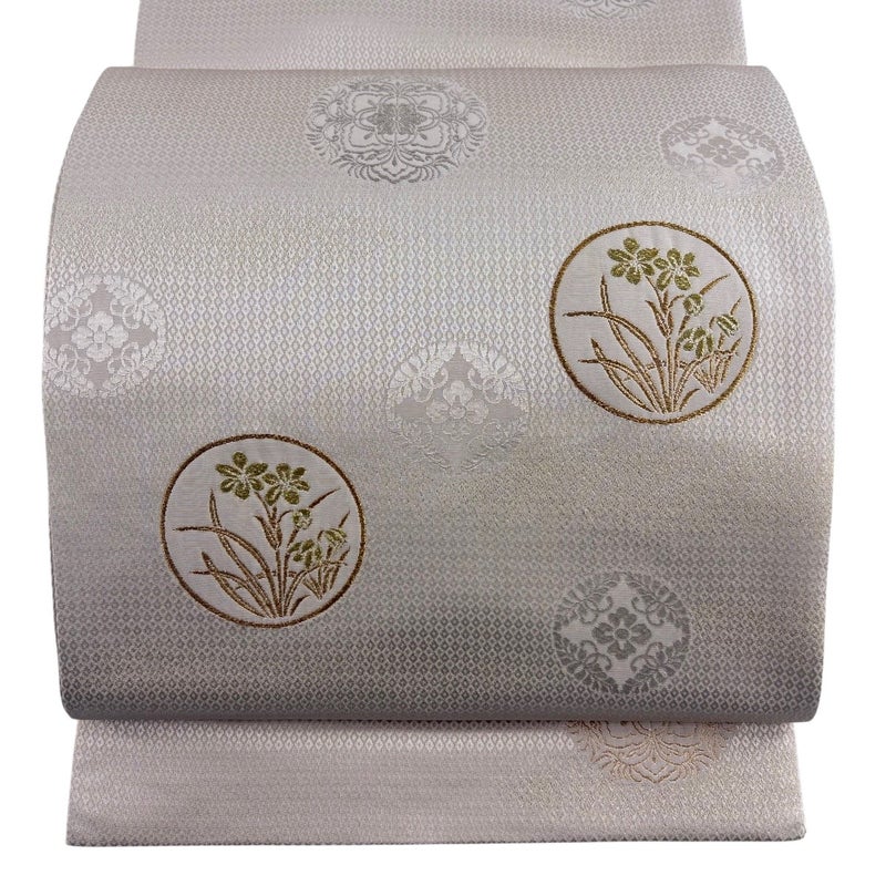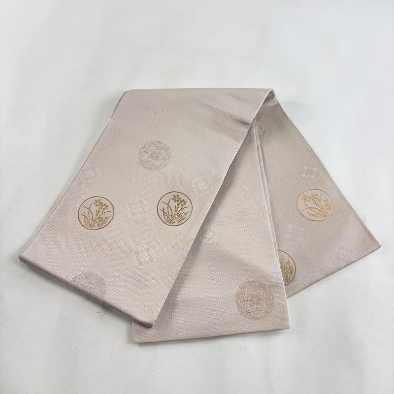 【着物ランク】秀品 【素材】正絹 【帯丈】約448cm 【帯幅】約31.5cm 【帯仕立て】仕立て上がり 【状態ランク】ランクA 【帯着用シーン】セミフォーマル(色無地・付下げ)