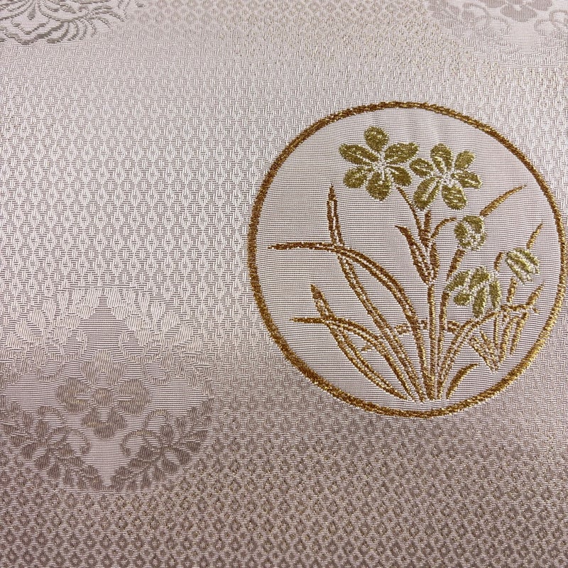 セミフォーマルでお使いいただける袋帯でございます。 見る人に重たい印象を感じさせない女性ならではの、気品豊かな一品です。 締め跡がございます。 前柄お太鼓間と手先前柄間に薄いシミがございます。 リユース品としては目立った染み傷なく、状態の良いお品でございます。 ※なお、厳しく商品の状態確認を行っておりますが、記載の汚れ以外にも見落とし箇所がある可能性がある旨ご了承いただけますと幸いです。 沢山の商品の中からご覧いただき誠にありがとうございます。