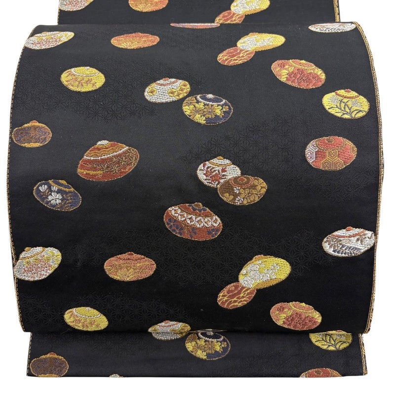 【袋帯】 黒系 黒 秀品 A 帯丈426cm~435cm 7990-9980 美品 二万以下