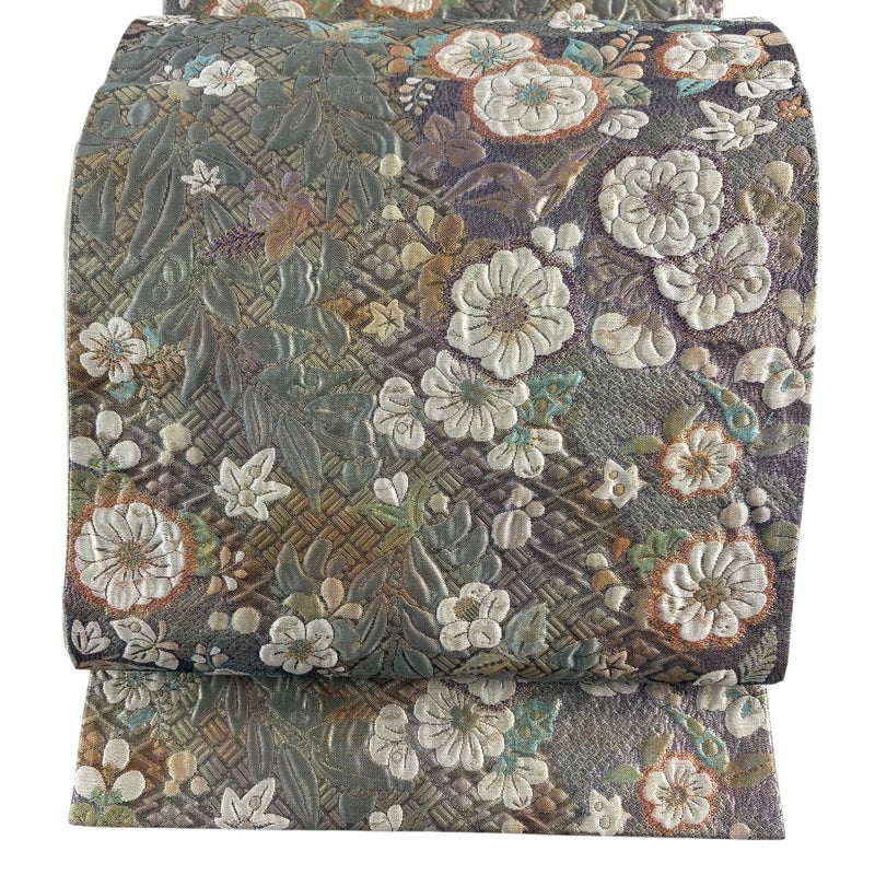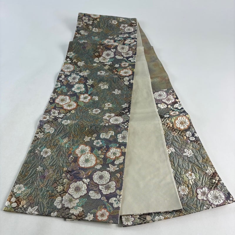 【袋帯】 灰色系 灰緑 秀品 B 帯丈426cm~435cm 4000-7980 二万以下