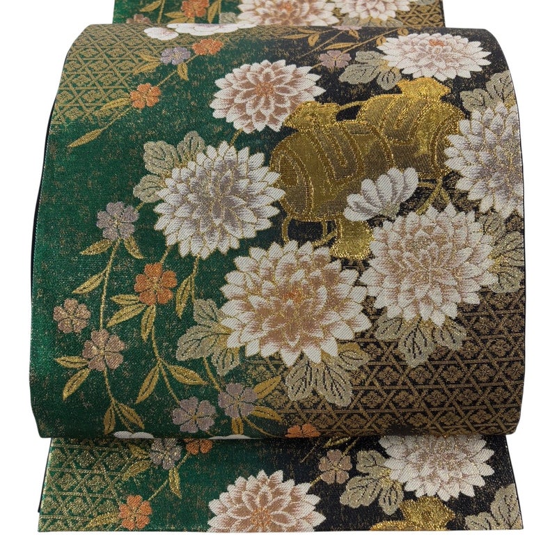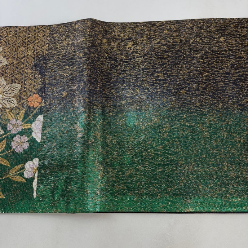 【袋帯】 緑系 緑 秀品 A 帯丈426cm~435cm 7990-9980 美品 二万以下
