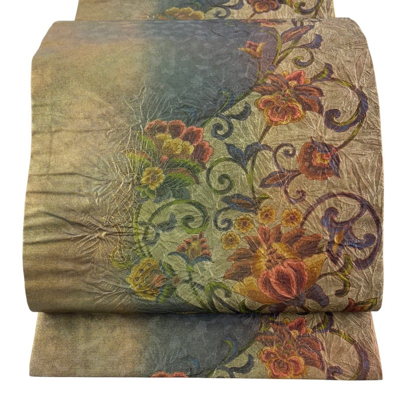 セミフォーマルでお使いいただける袋帯でございます。 見る人に重たい印象を感じさせない女性ならではの、気品豊かな一品です。 締め跡がございます。 手先前柄間など所々に生地のヨレがございます。 裏地所々に生地のヨレがございます。 リユース品としては目立った染み傷なく、状態の良いお品でございます。 ※なお、厳しく商品の状態確認を行っておりますが、記載の汚れ以外にも見落とし箇所がある可能性がある旨ご了承いただけますと幸いです。 沢山の商品の中からご覧いただき誠にありがとうございます。