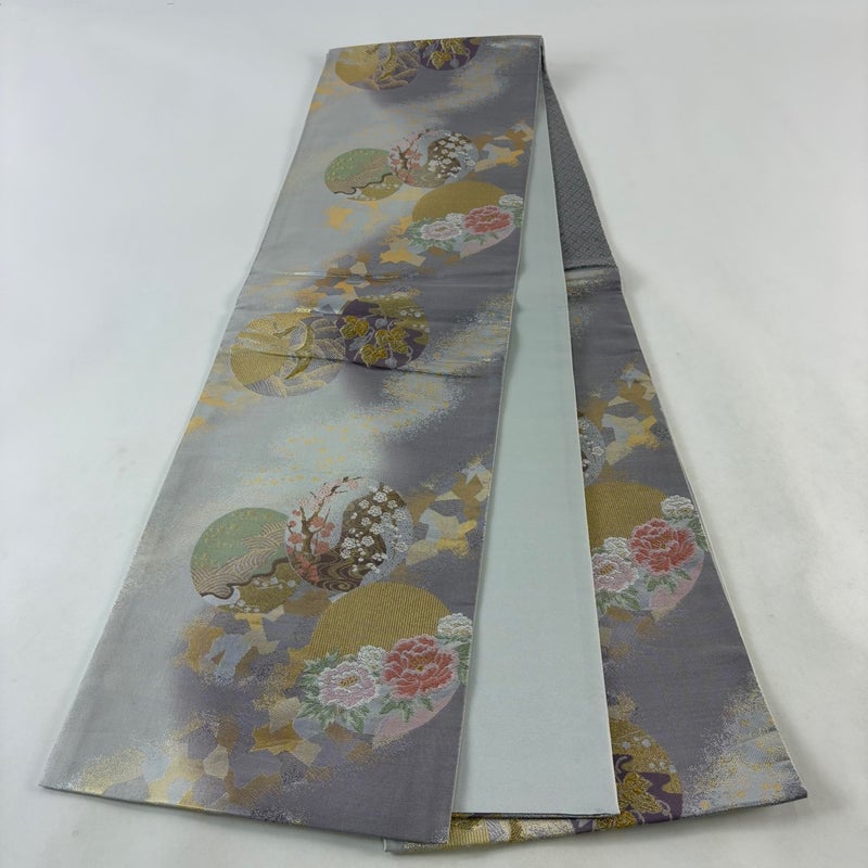 【袋帯】 灰色系 灰紫 秀品 A 帯丈436cm以上 7990-9980 美品 二万以下