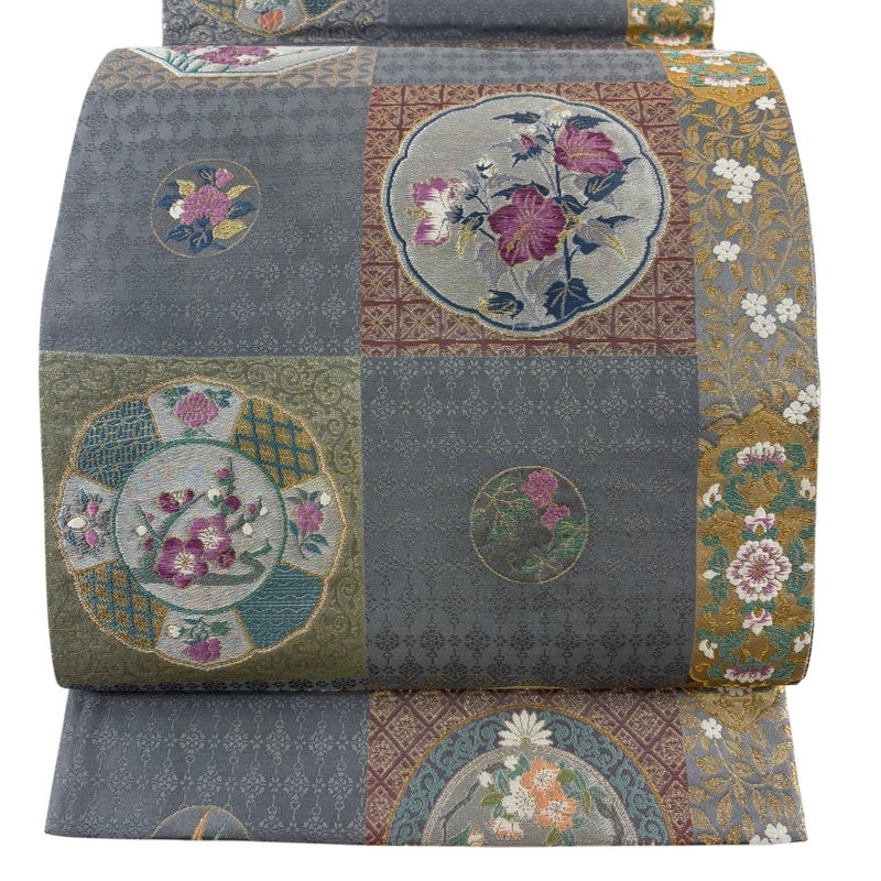 【袋帯】 灰色系 灰色 秀品 A 帯丈436cm以上 7990-9980 美品 二万以下