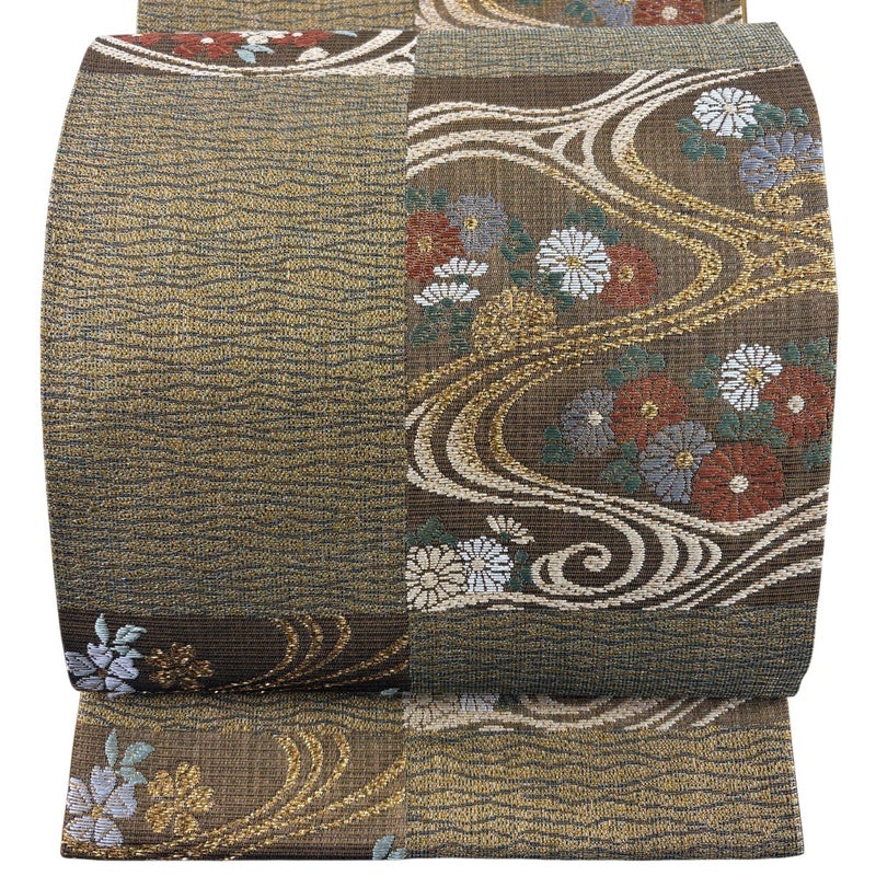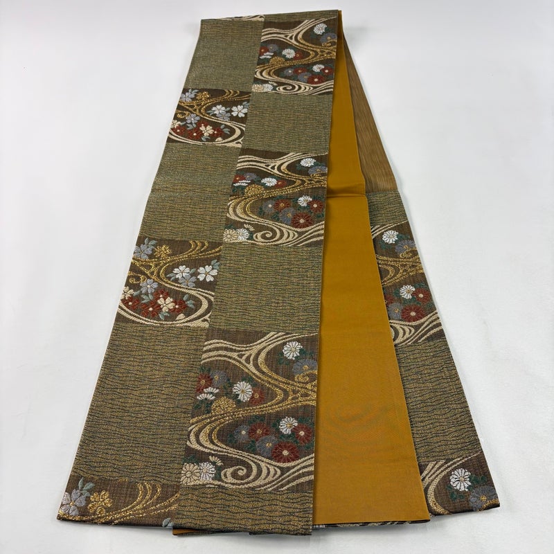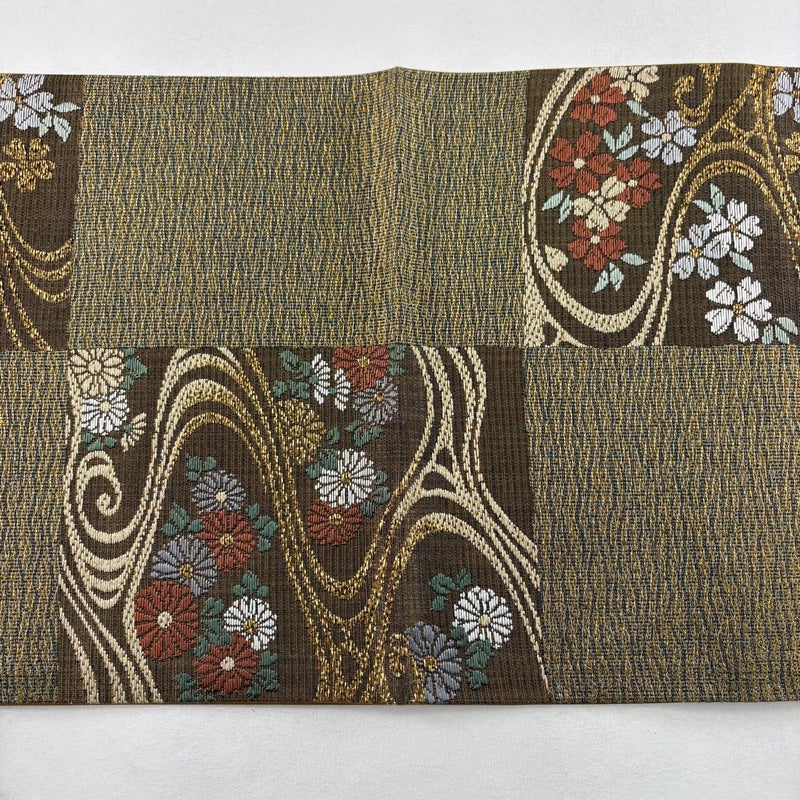 【袋帯】 茶系 茶緑色 秀品 A 帯丈436cm以上 7990-9980 美品 二万以下