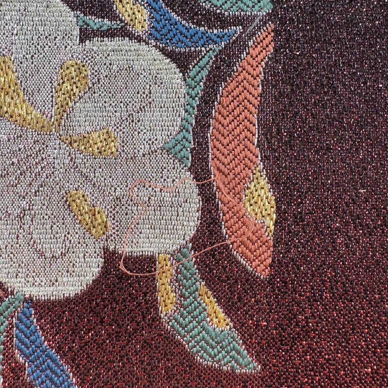 おめでたい席に相応しい意匠の袋帯でございます。 格式高いお席にもお使いいただけますので、お見逃しのないようお願いいたします。 締め跡がございます。 表地所々に柄のほつれがございます。 リユース品としては良い状態で、まだまだご活用頂けると思われます。 ※なお、厳しく商品の状態確認を行っておりますが、記載の汚れ以外にも見落とし箇所がある可能性がある旨ご了承いただけますと幸いです。 沢山の商品の中からご覧いただき誠にありがとうございます。