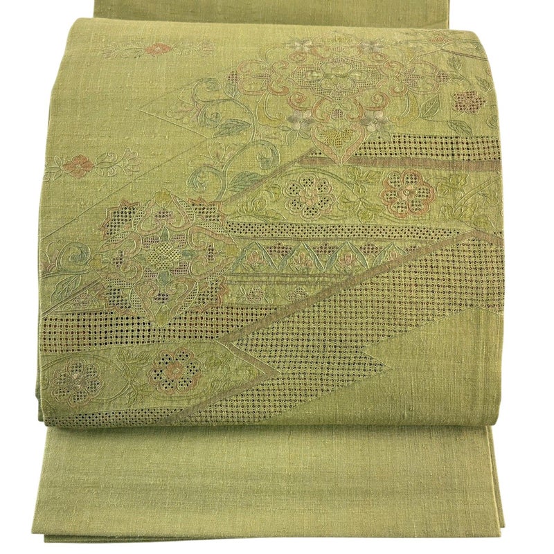 【袋帯】 緑系 黄緑色 秀品 A 帯丈436cm以上 7990-9980 美品 二万以下