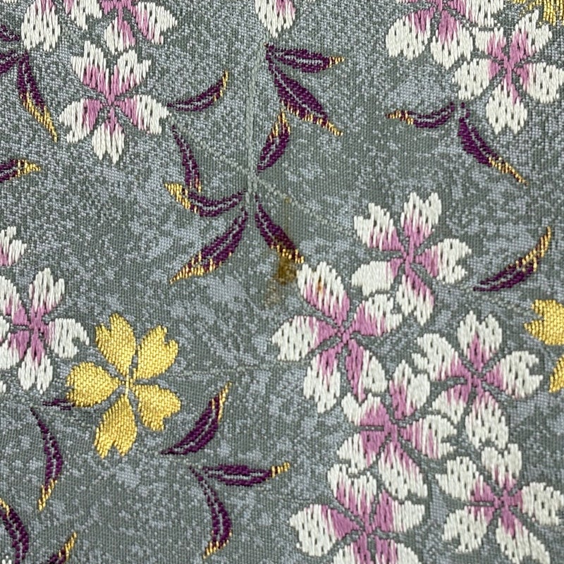 セミフォーマルでお使いいただける袋帯でございます。 見る人に重たい印象を感じさせない女性ならではの、気品豊かな一品です。 締め跡がございます。 表地所々にヤケ、前柄にシミ、中無地にシワがございます。 裏地所々に生地のヨレ、裏地所々にヤケ、裏地所々にシワがございます。 リユース品としては良い状態で、まだまだご活用頂けると思われます。 ※なお、厳しく商品の状態確認を行っておりますが、記載の汚れ以外にも見落とし箇所がある可能性がある旨ご了承いただけますと幸いです。 沢山の商品の中からご覧いただき誠にありがとうございます。
