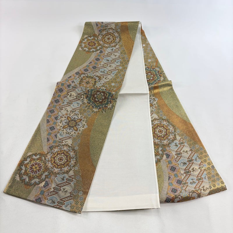 【着物ランク】秀品 【素材】正絹 【帯丈】約434cm 【帯幅】約31cm 【帯仕立て】仕立て上がり 【状態ランク】ランクA 【帯着用シーン】フォーマル(留袖・振袖・訪問着)