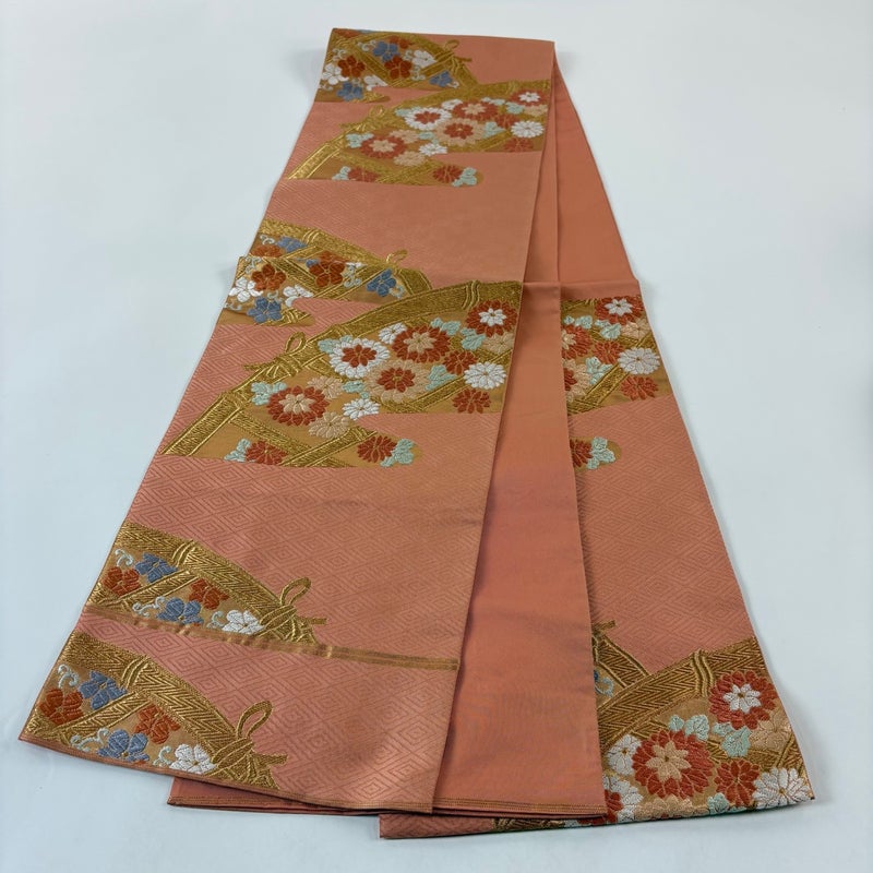 【袋帯】 赤系 サーモンピンク 名品 A 帯丈426cm~435cm 9990-29990 美品 二万以下