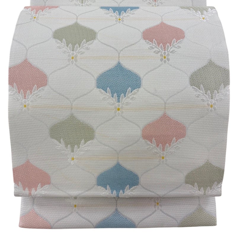 夏帯でございます。 普段使いでお使いいただける袋帯でございます。 カジュアルな装いに合わせてお使いください。 締め跡がございます。 お太鼓垂先間にシワがございます。 裏地所々にシミがございます。 リユース品としては目立った染み傷なく、状態の良いお品でございます。 ※なお、厳しく商品の状態確認を行っておりますが、記載の汚れ以外にも見落とし箇所がある可能性がある旨ご了承いただけますと幸いです。 沢山の商品の中からご覧いただき誠にありがとうございます。
