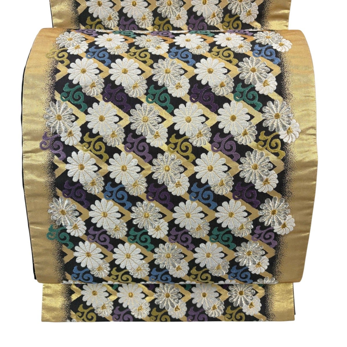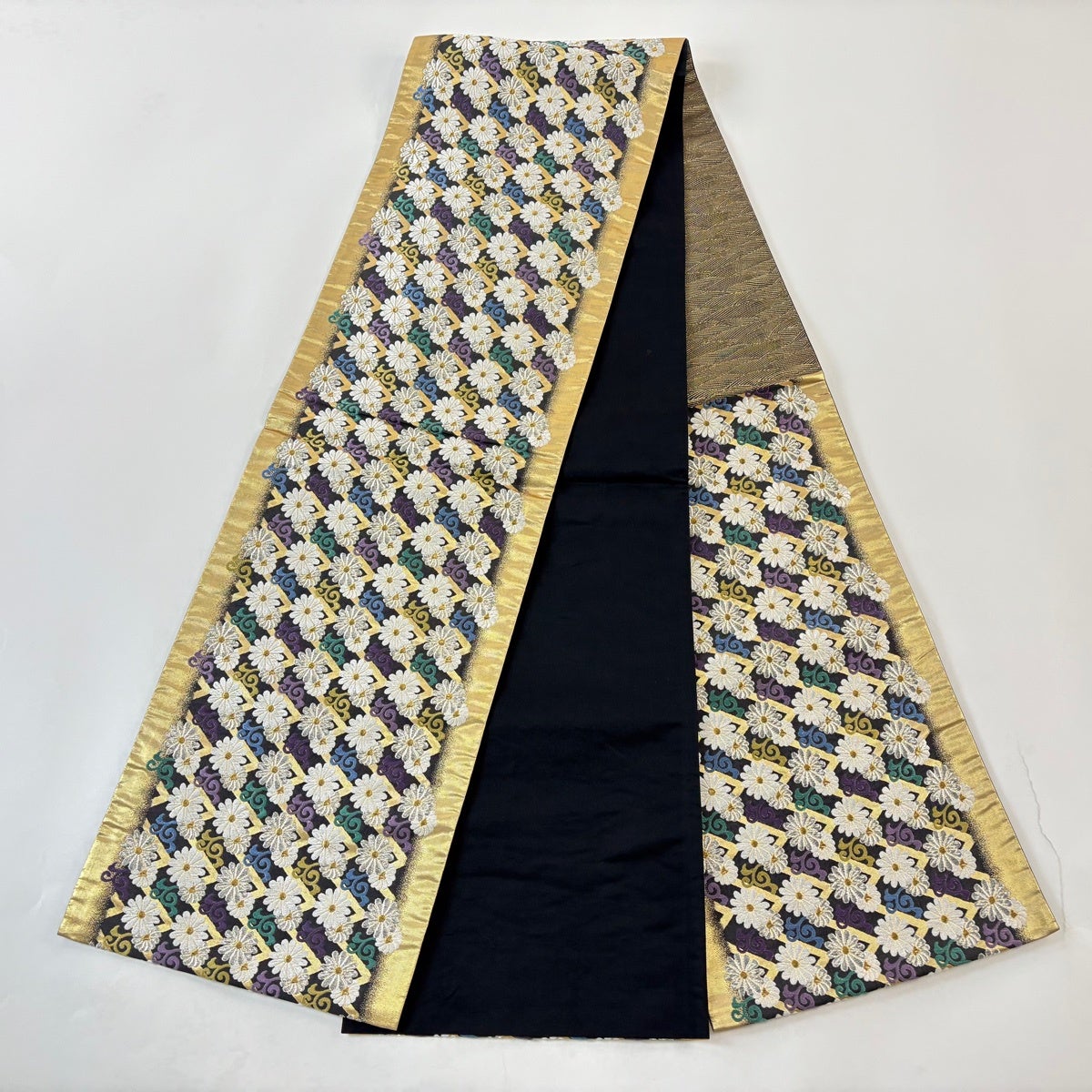 袋帯とは女性用の主にフォーマル用の帯で第一礼装として着用されることが多く、形状は表地にのみ柄があり裏地は無地になるように袋状に織って作成されたため袋帯という名が付きました。 帯を締める際にはおめでたいことが重なりますようにという願いが込められている二重太鼓や成人式の際に振袖に見かけるふくら雀や文庫結びなどの変わり結びを用いて着用します。