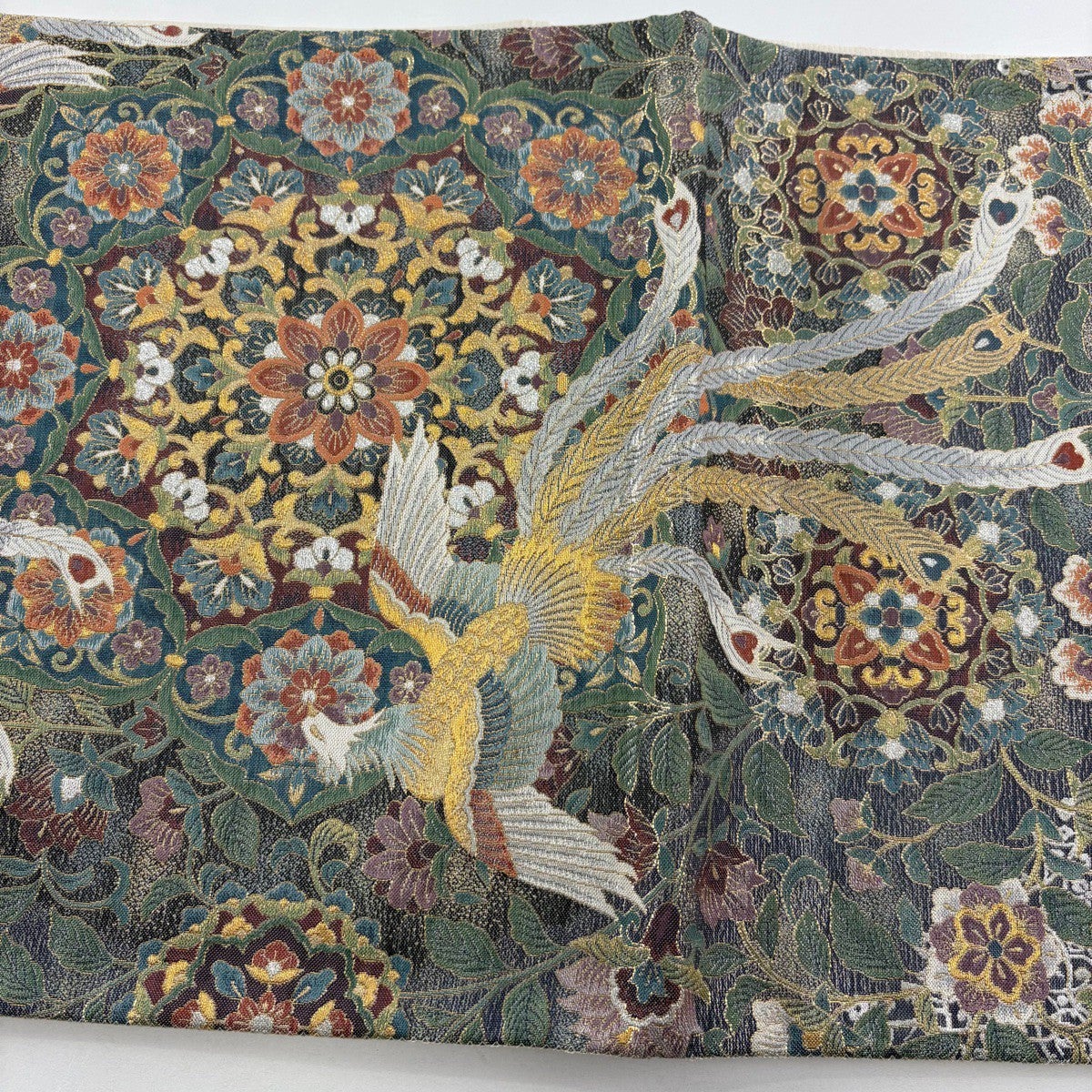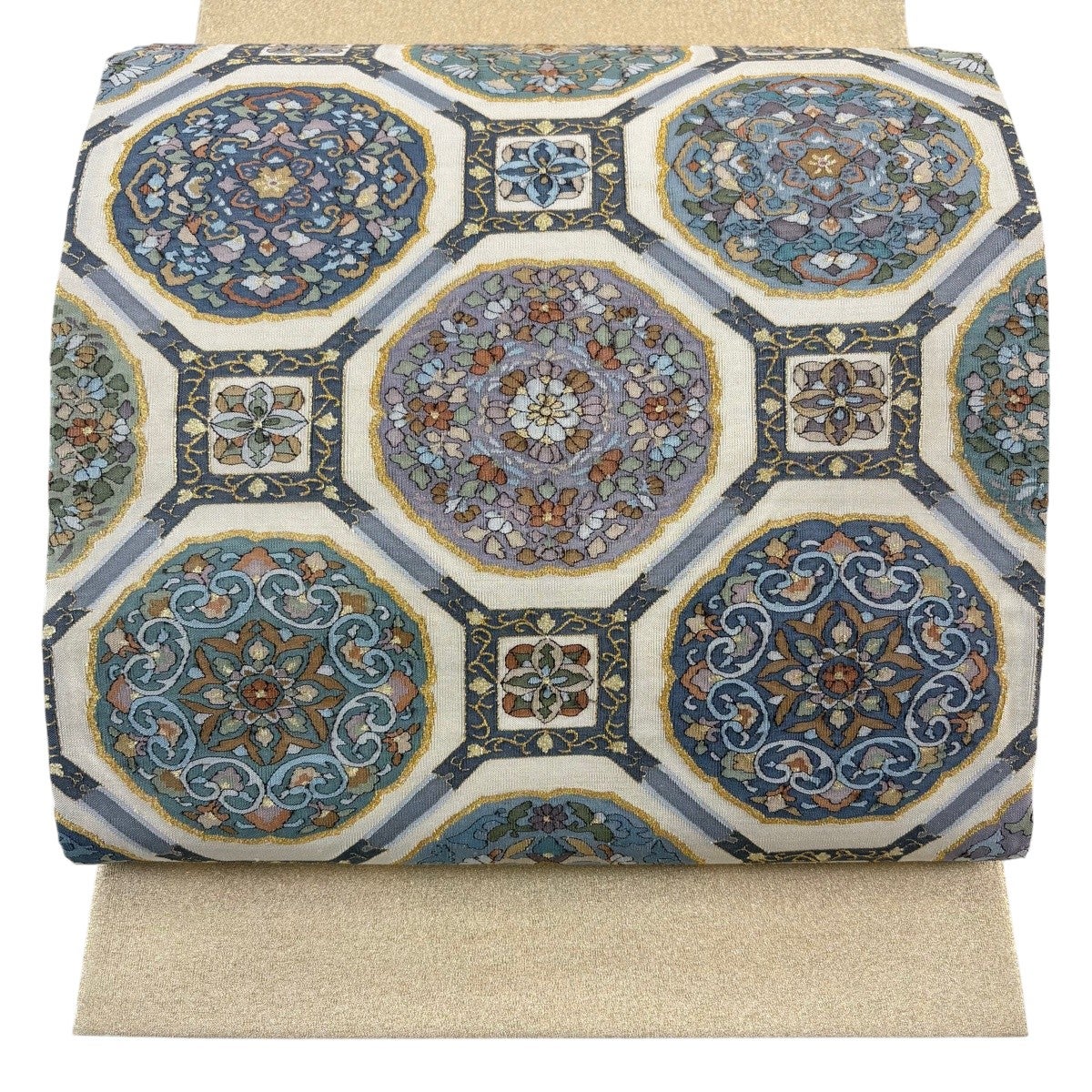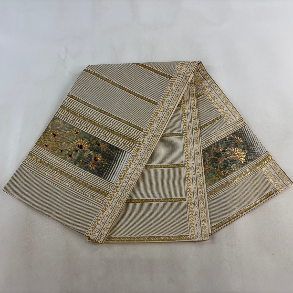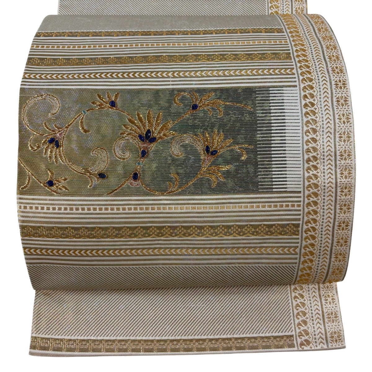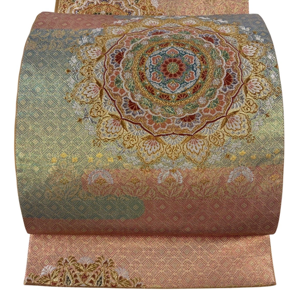 袋帯とは女性用の主にフォーマル用の帯で第一礼装として着用されることが多く、形状は表地にのみ柄があり裏地は無地になるように袋状に織って作成されたため袋帯という名が付きました。 帯を締める際にはおめでたいことが重なりますようにという願いが込められている二重太鼓や成人式の際に振袖に見かけるふくら雀や文庫結びなどの変わり結びを用いて着用します。