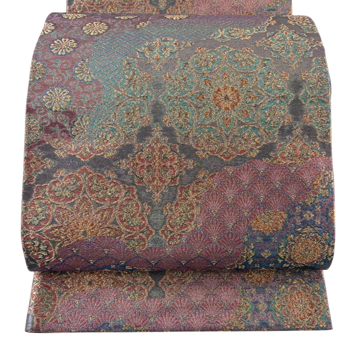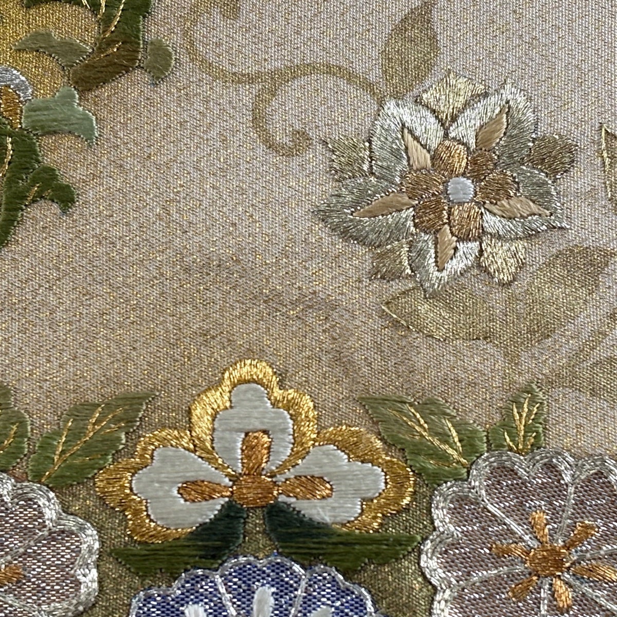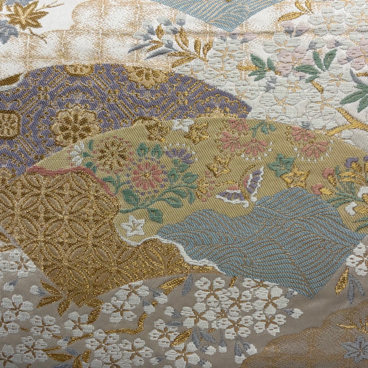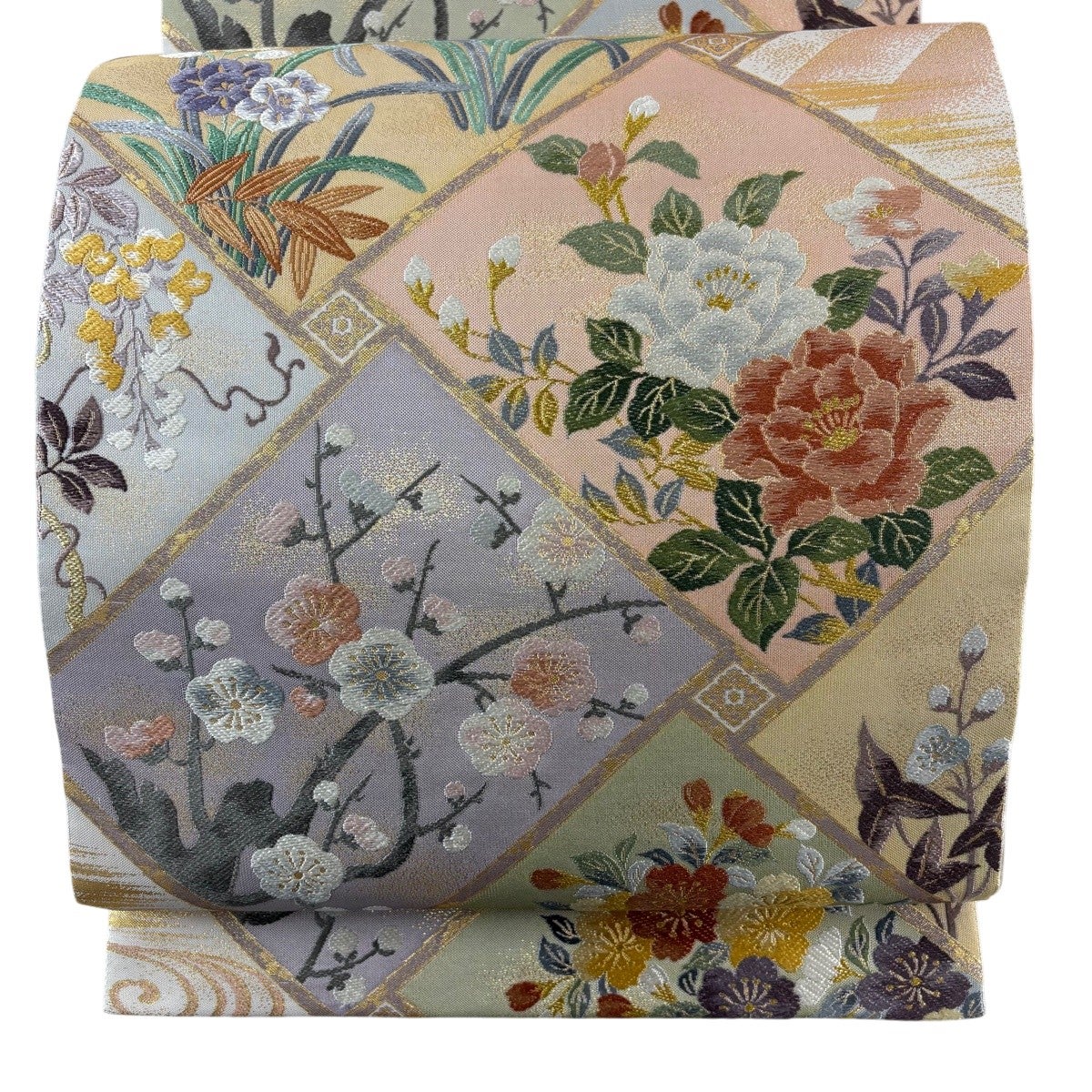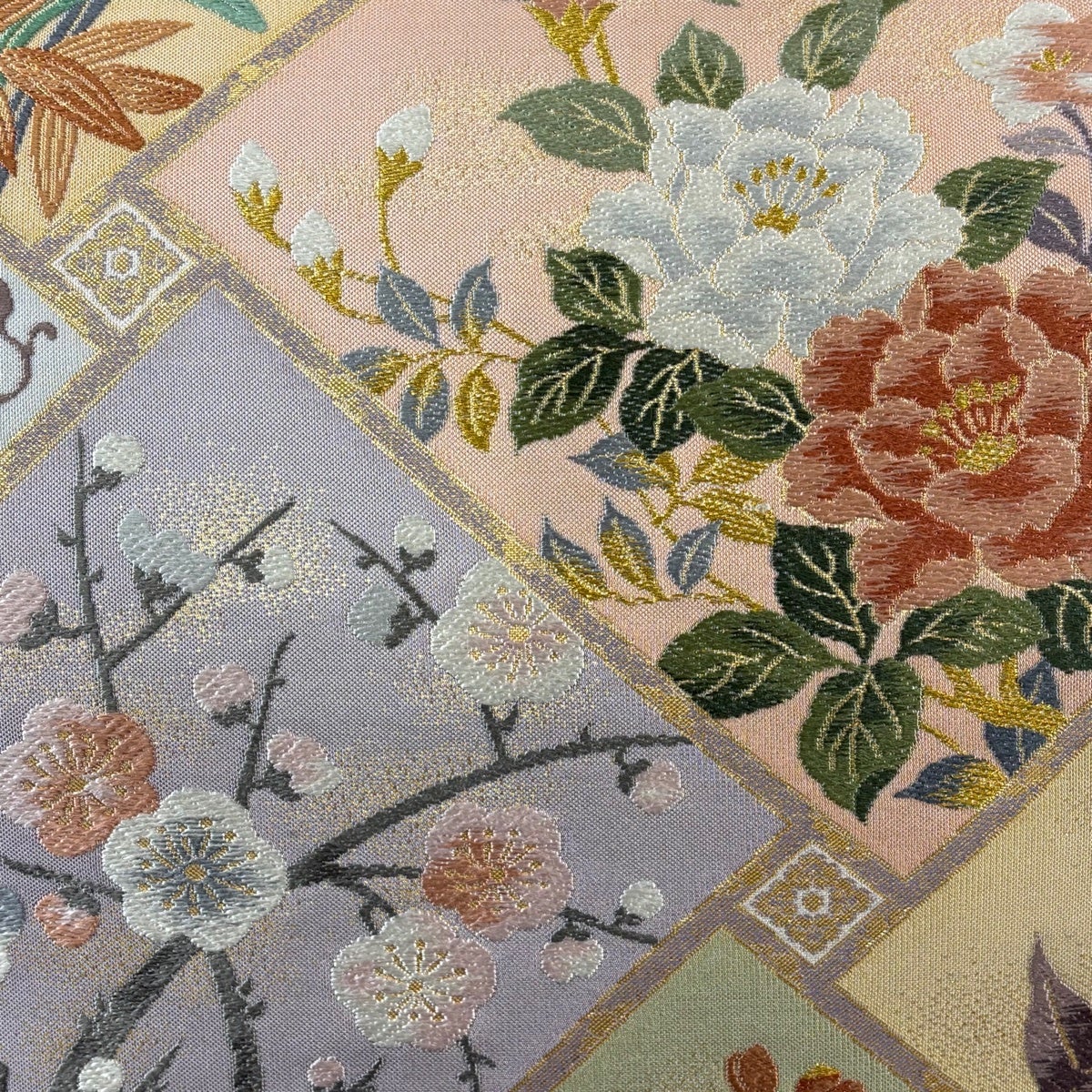 袋帯とは女性用の主にフォーマル用の帯で第一礼装として着用されることが多く、形状は表地にのみ柄があり裏地は無地になるように袋状に織って作成されたため袋帯という名が付きました。 帯を締める際にはおめでたいことが重なりますようにという願いが込められている二重太鼓や成人式の際に振袖に見かけるふくら雀や文庫結びなどの変わり結びを用いて着用します。
