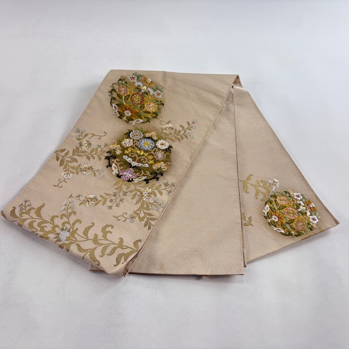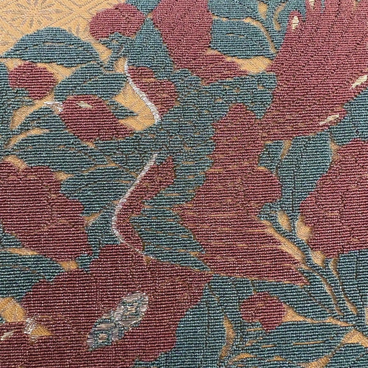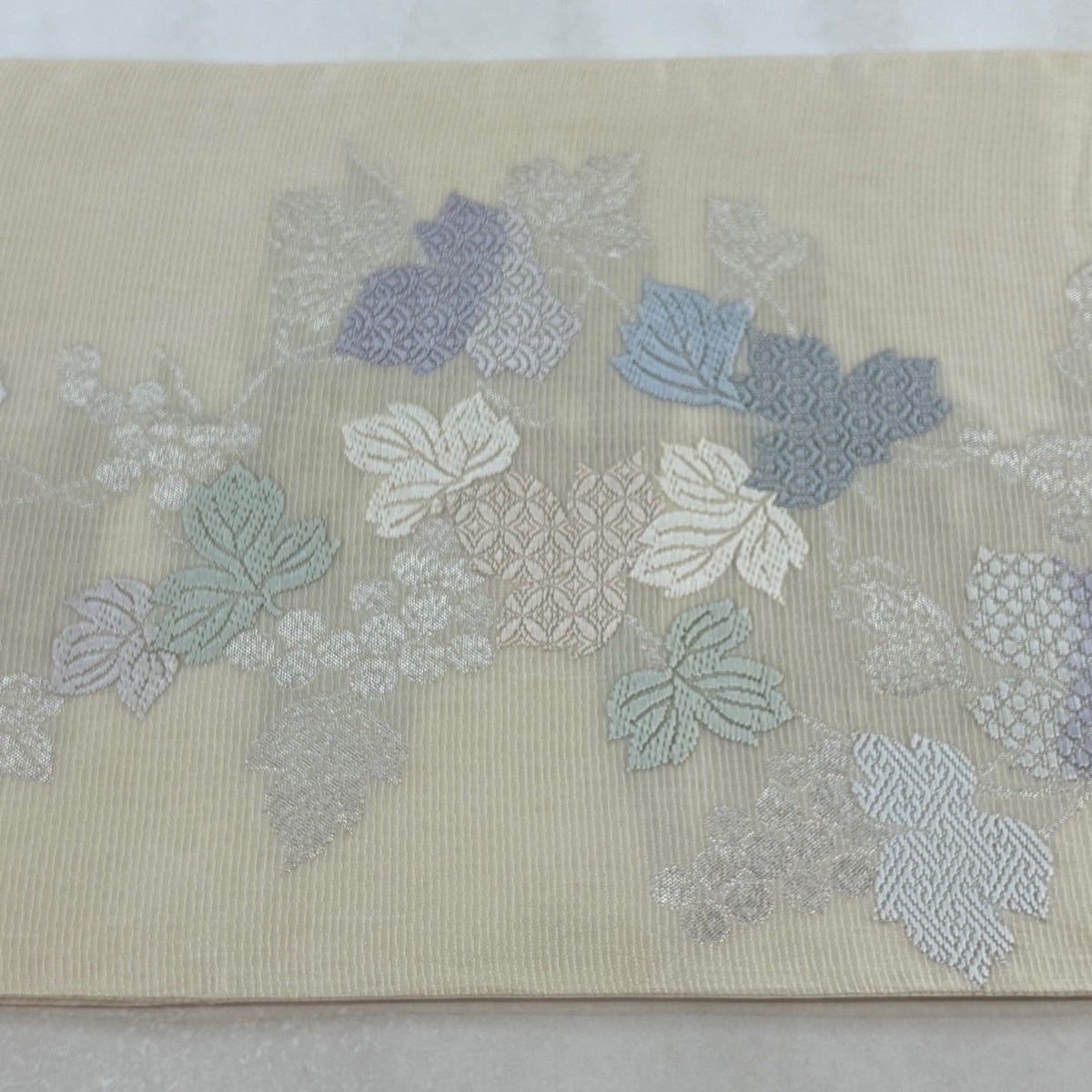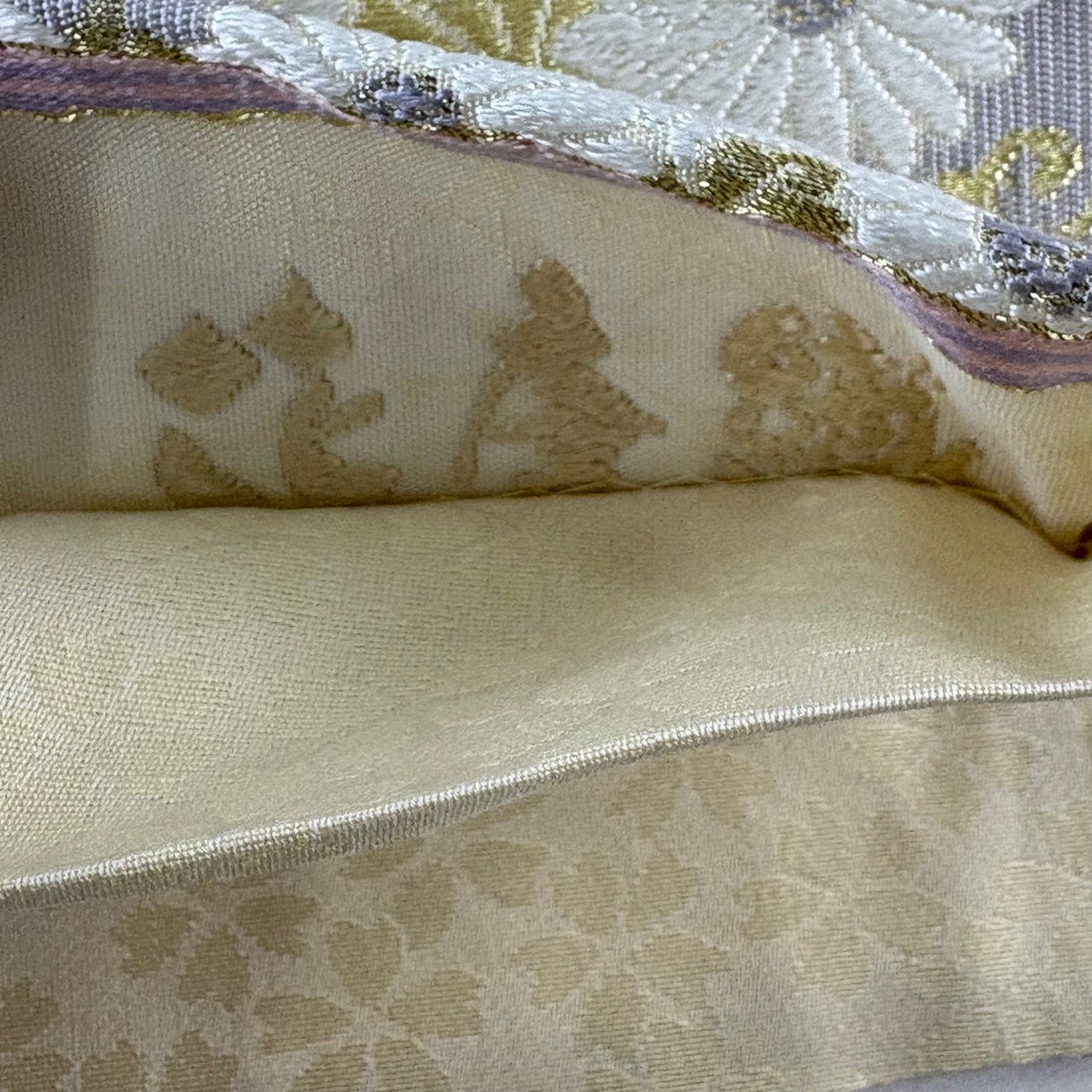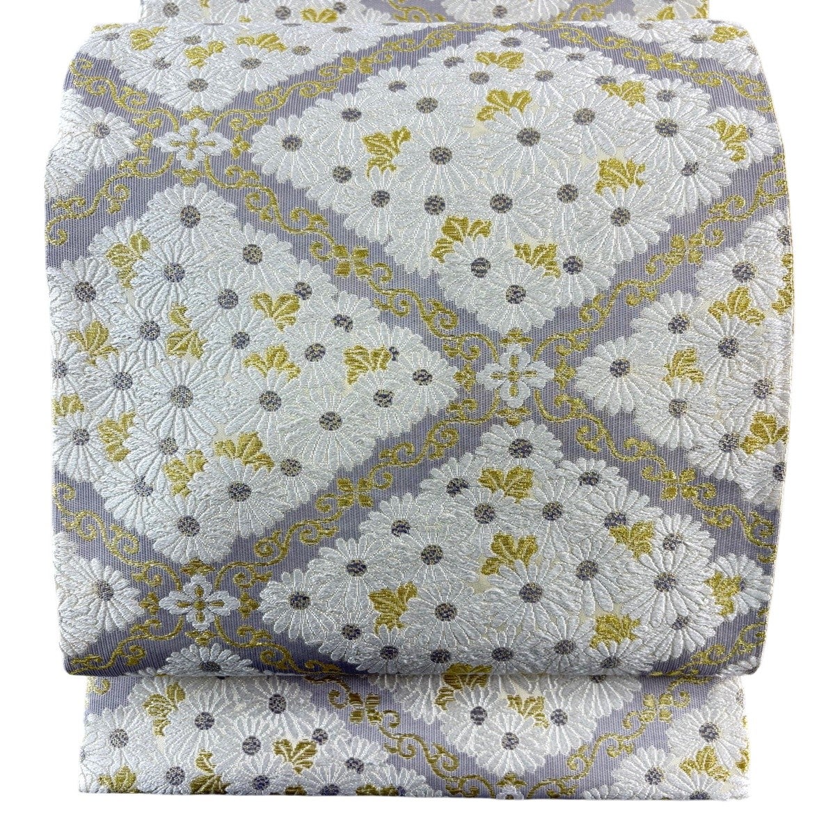 袋帯とは女性用の主にフォーマル用の帯で第一礼装として着用されることが多く、形状は表地にのみ柄があり裏地は無地になるように袋状に織って作成されたため袋帯という名が付きました。 帯を締める際にはおめでたいことが重なりますようにという願いが込められている二重太鼓や成人式の際に振袖に見かけるふくら雀や文庫結びなどの変わり結びを用いて着用します。