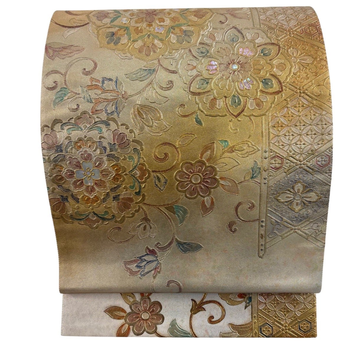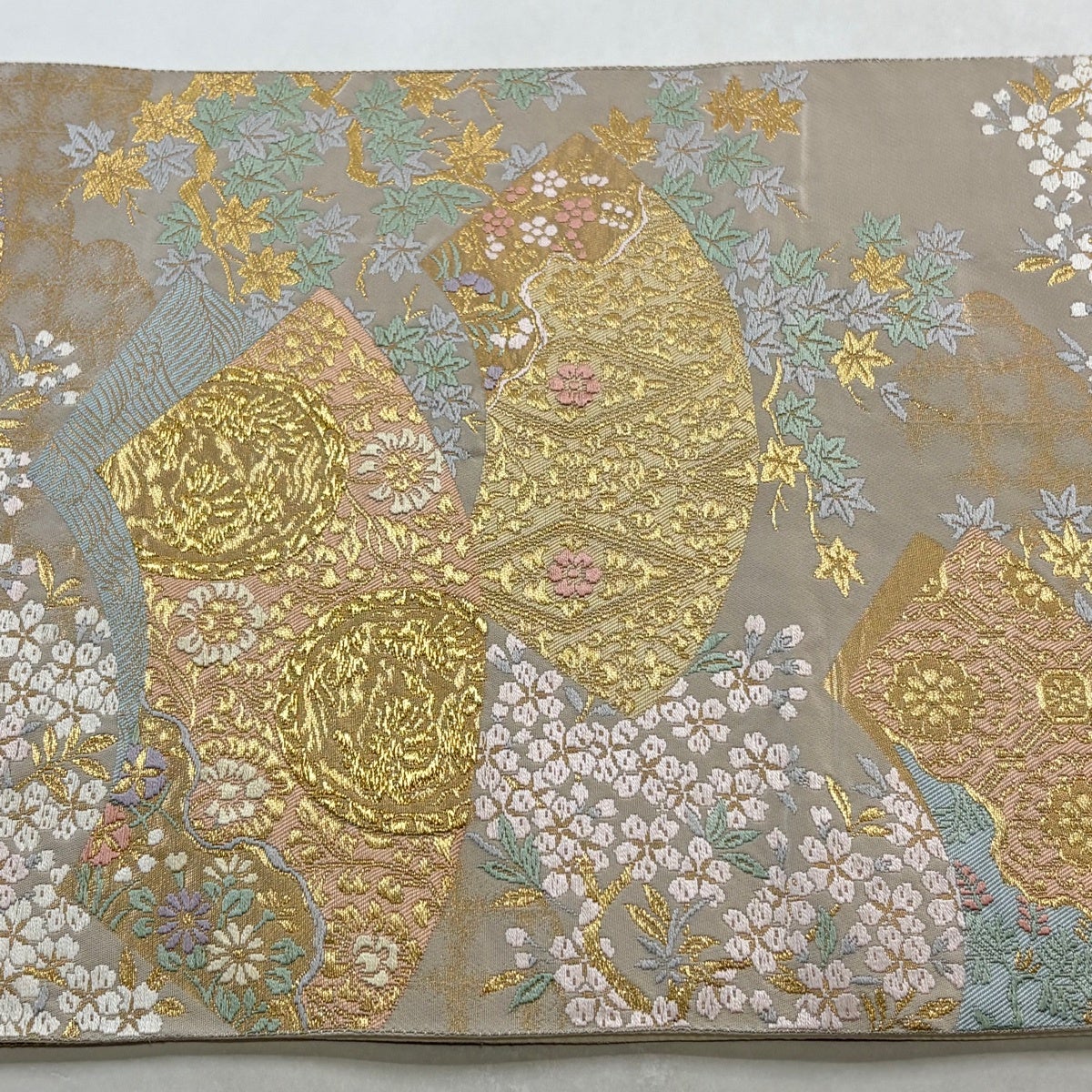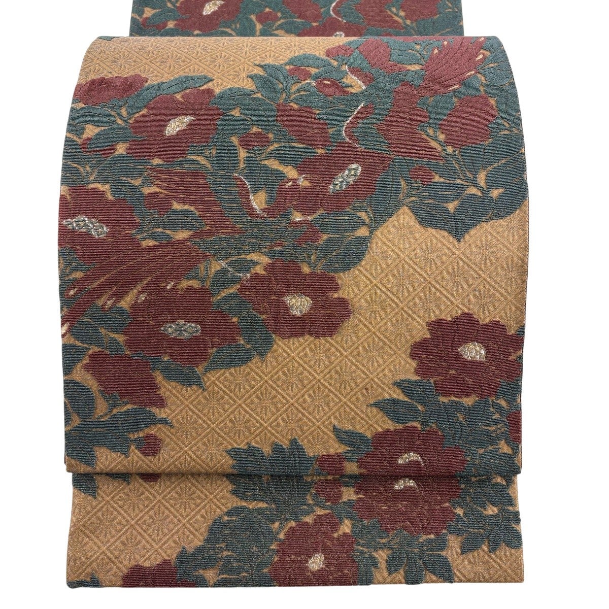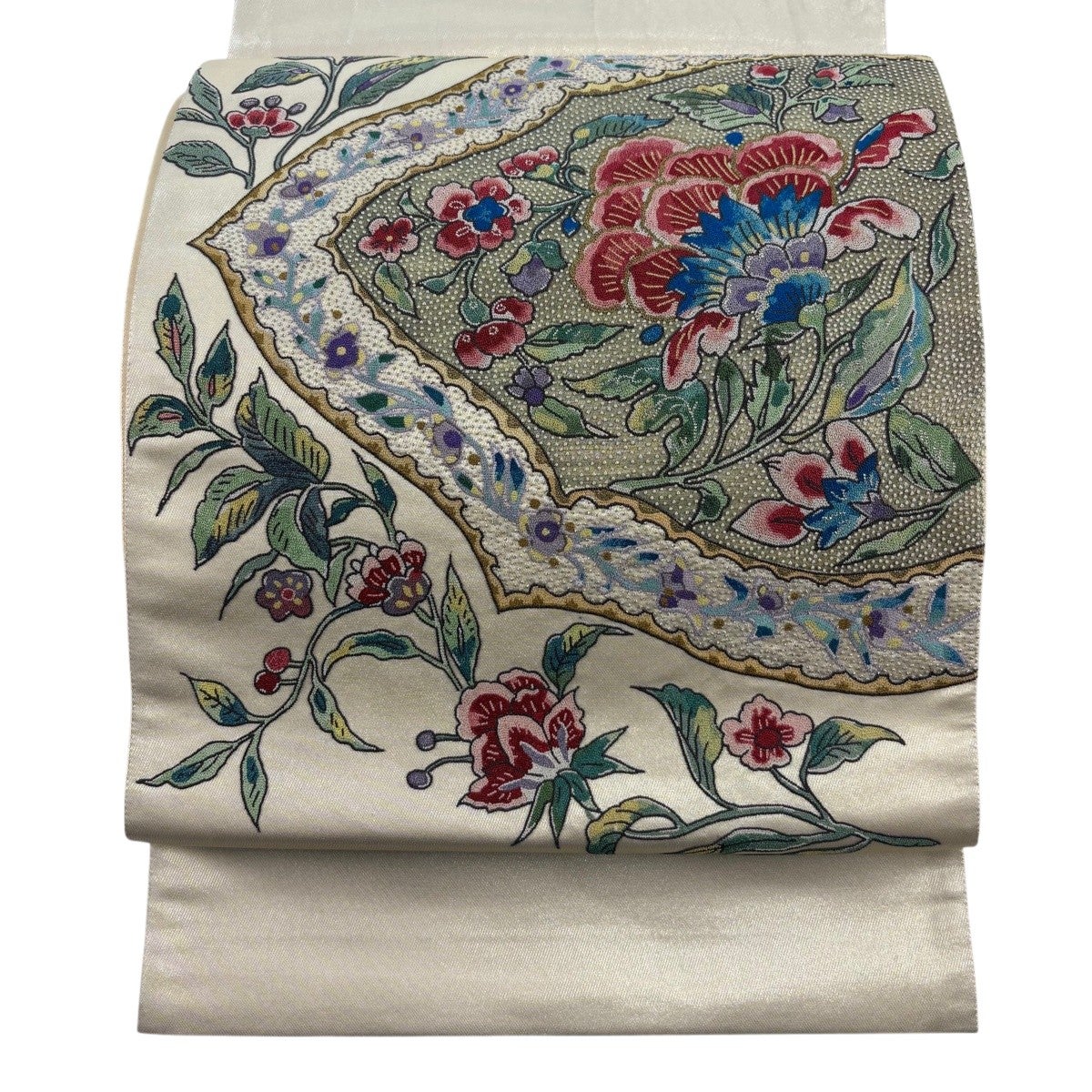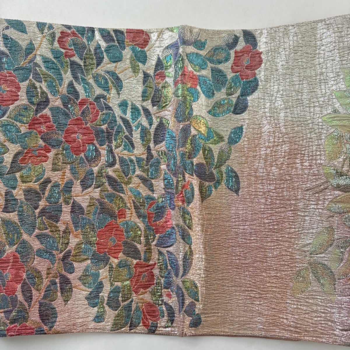 袋帯とは女性用の主にフォーマル用の帯で第一礼装として着用されることが多く、形状は表地にのみ柄があり裏地は無地になるように袋状に織って作成されたため袋帯という名が付きました。 帯を締める際にはおめでたいことが重なりますようにという願いが込められている二重太鼓や成人式の際に振袖に見かけるふくら雀や文庫結びなどの変わり結びを用いて着用します。