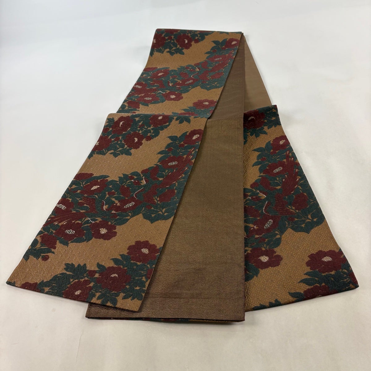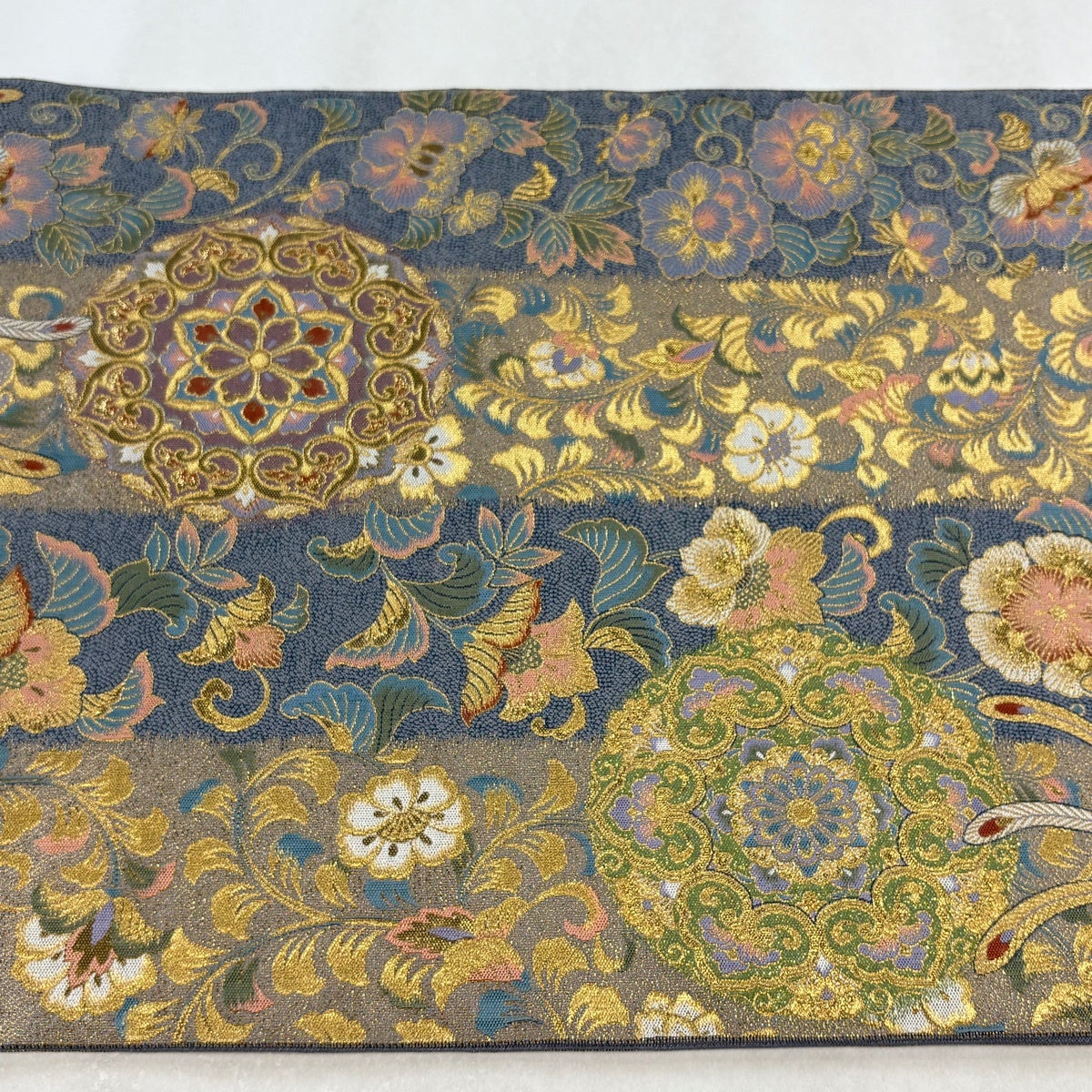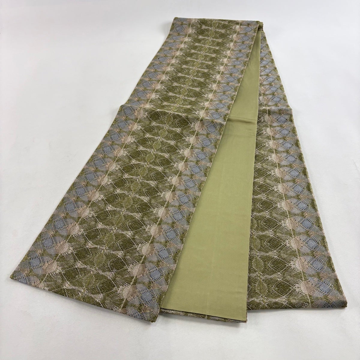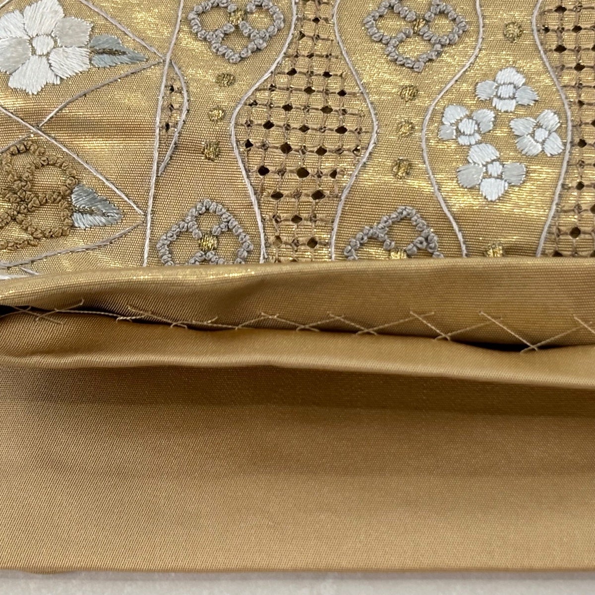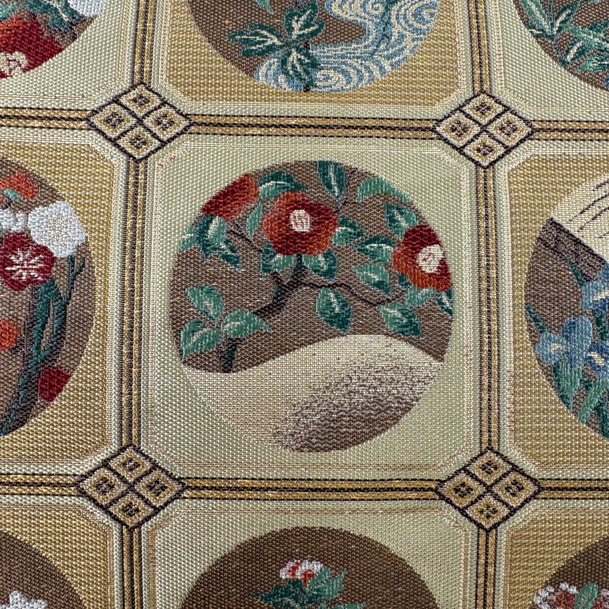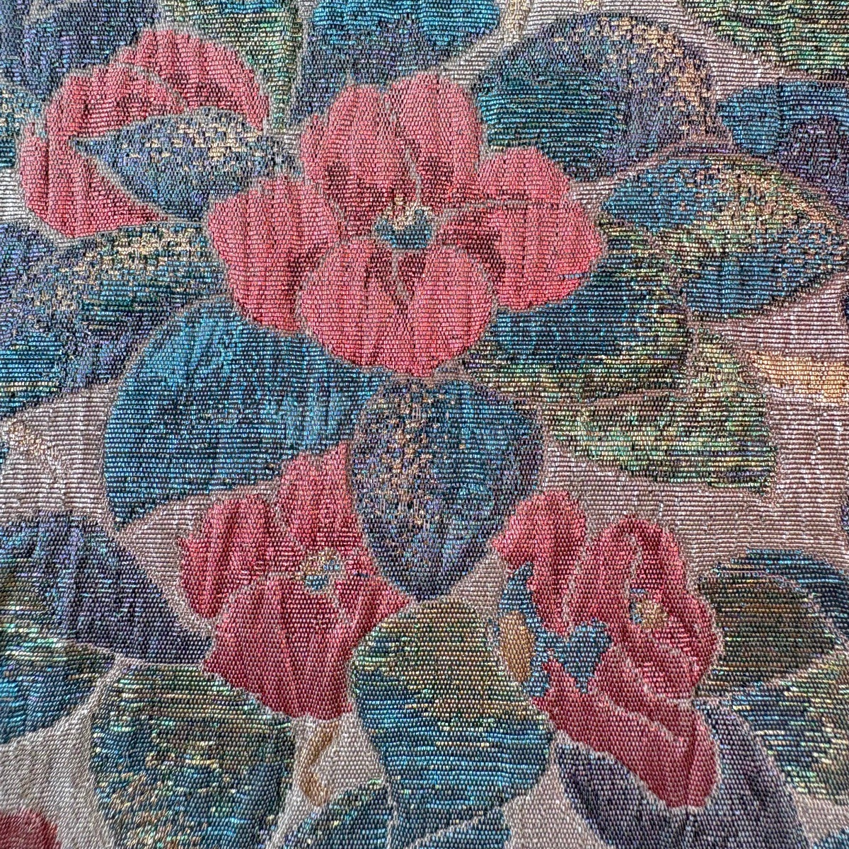 袋帯とは女性用の主にフォーマル用の帯で第一礼装として着用されることが多く、形状は表地にのみ柄があり裏地は無地になるように袋状に織って作成されたため袋帯という名が付きました。 帯を締める際にはおめでたいことが重なりますようにという願いが込められている二重太鼓や成人式の際に振袖に見かけるふくら雀や文庫結びなどの変わり結びを用いて着用します。