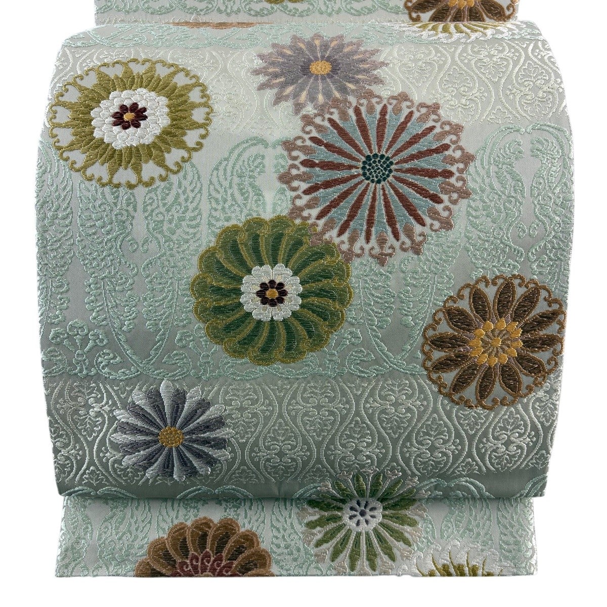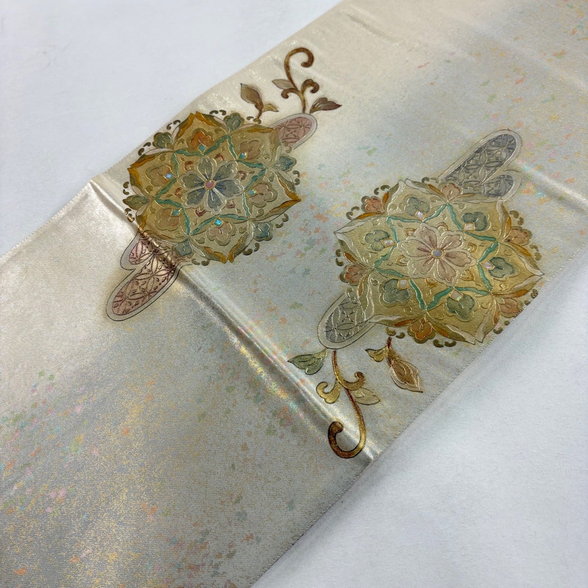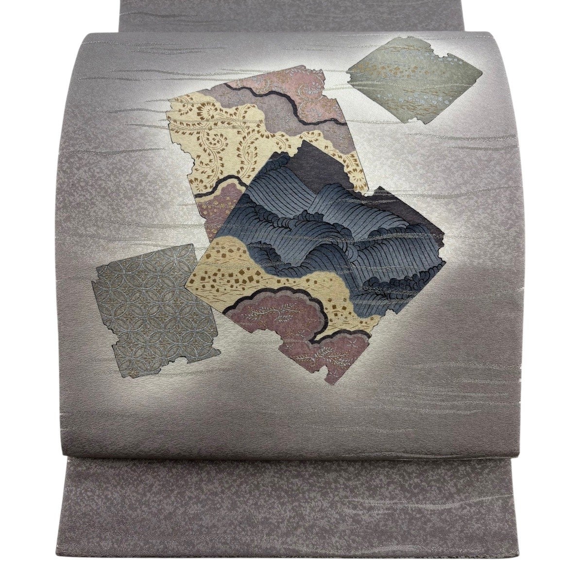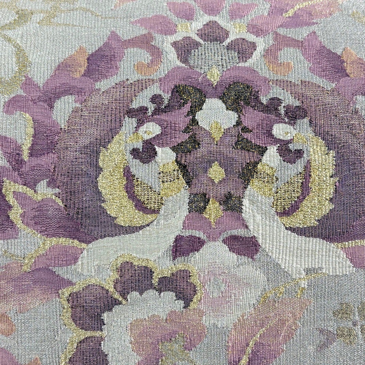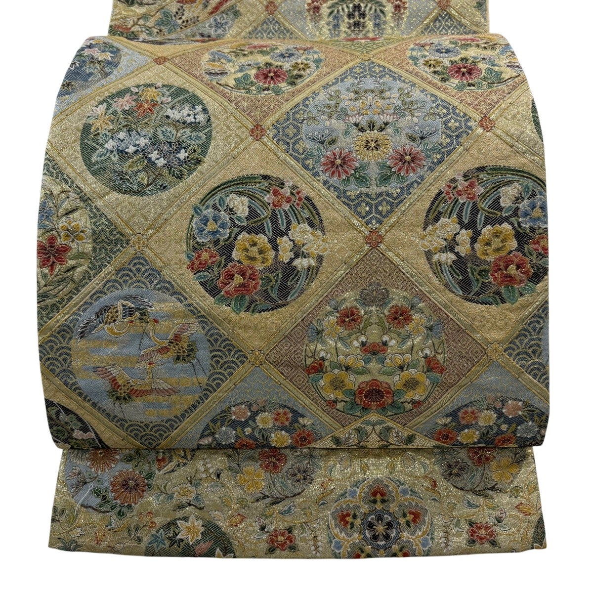 袋帯とは女性用の主にフォーマル用の帯で第一礼装として着用されることが多く、形状は表地にのみ柄があり裏地は無地になるように袋状に織って作成されたため袋帯という名が付きました。 帯を締める際にはおめでたいことが重なりますようにという願いが込められている二重太鼓や成人式の際に振袖に見かけるふくら雀や文庫結びなどの変わり結びを用いて着用します。
