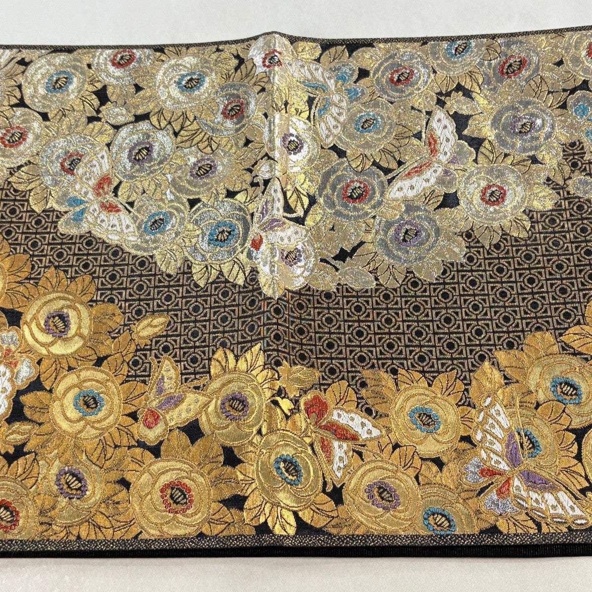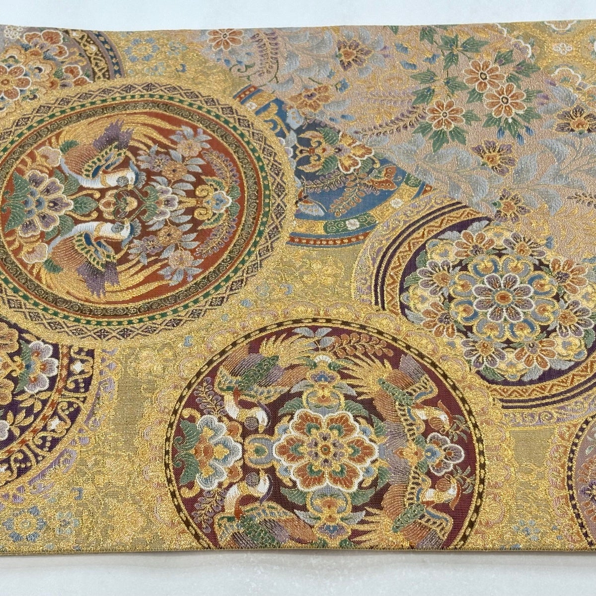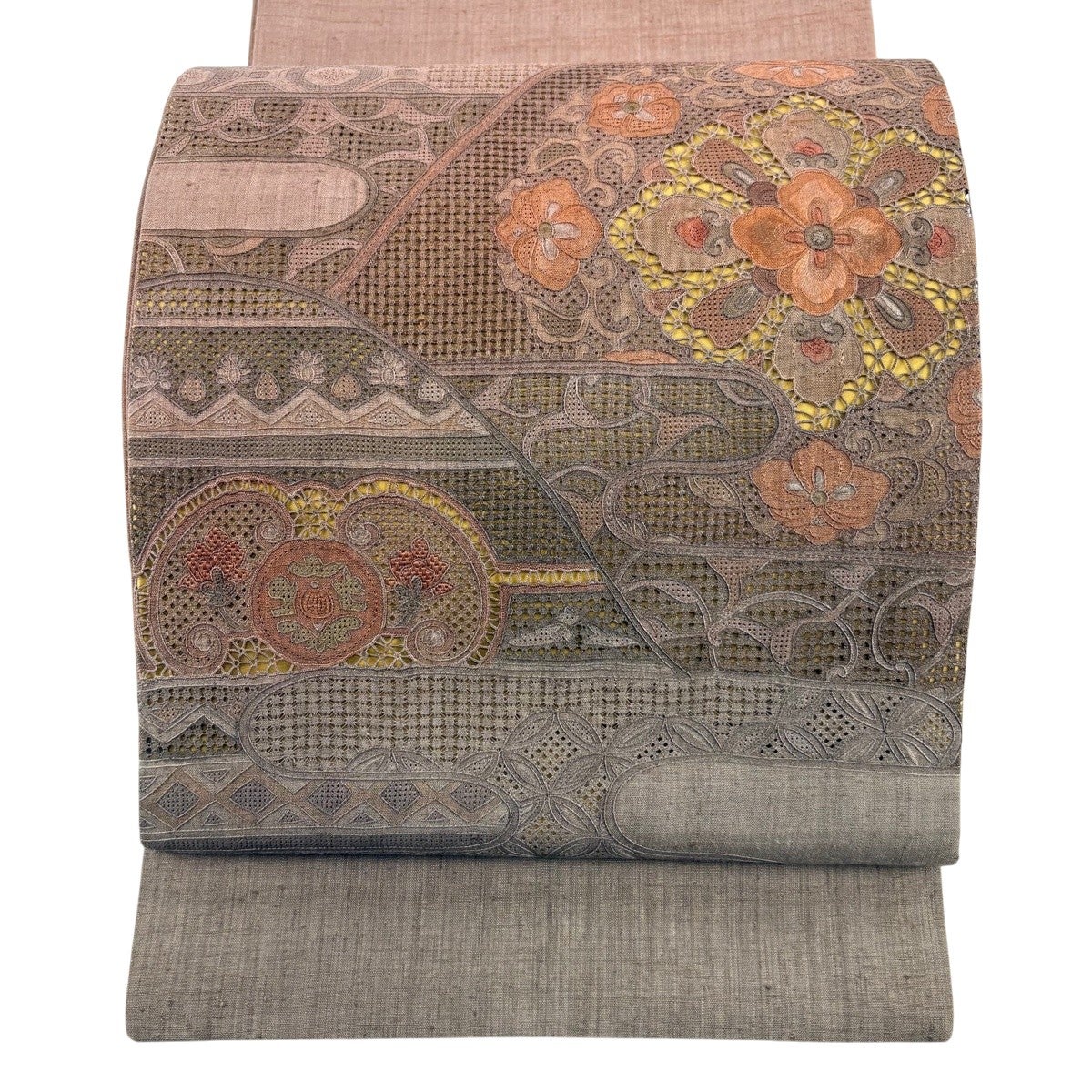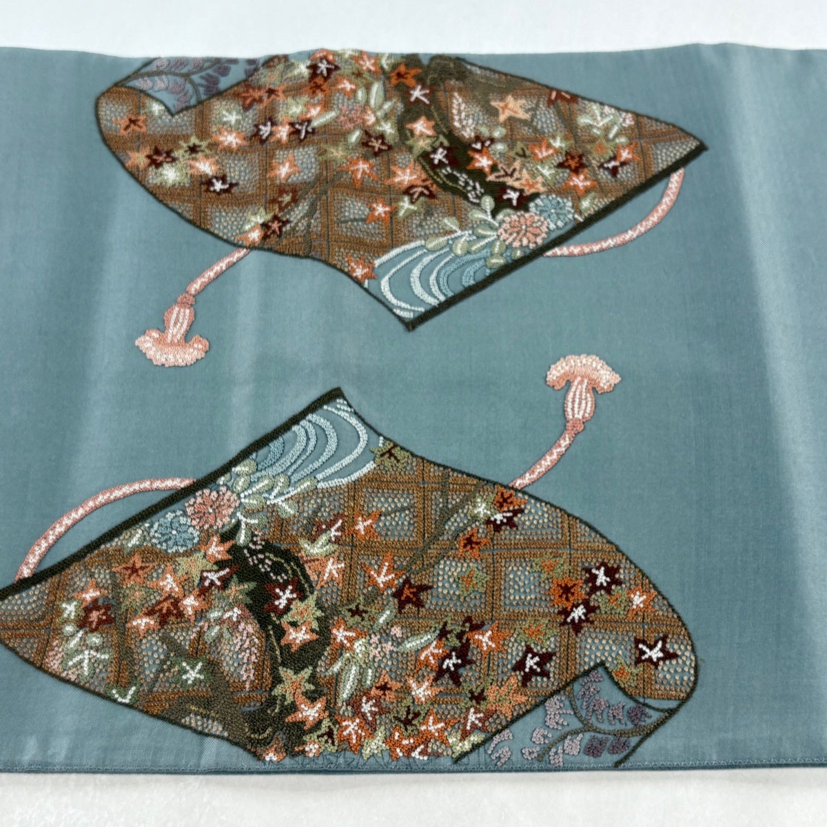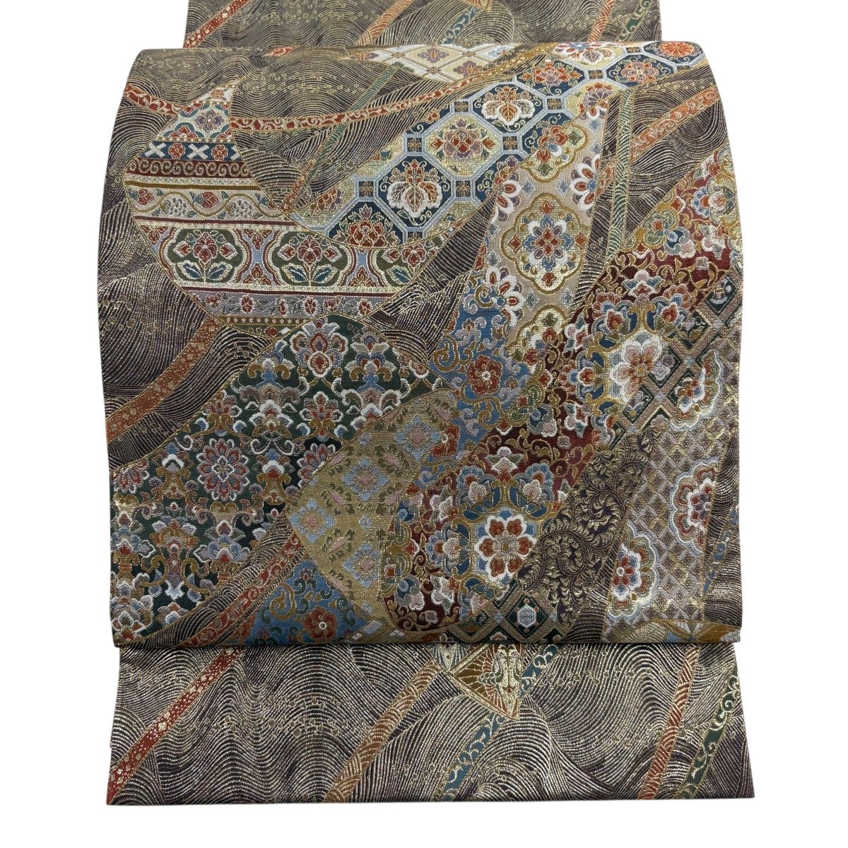 袋帯とは女性用の主にフォーマル用の帯で第一礼装として着用されることが多く、形状は表地にのみ柄があり裏地は無地になるように袋状に織って作成されたため袋帯という名が付きました。 帯を締める際にはおめでたいことが重なりますようにという願いが込められている二重太鼓や成人式の際に振袖に見かけるふくら雀や文庫結びなどの変わり結びを用いて着用します。