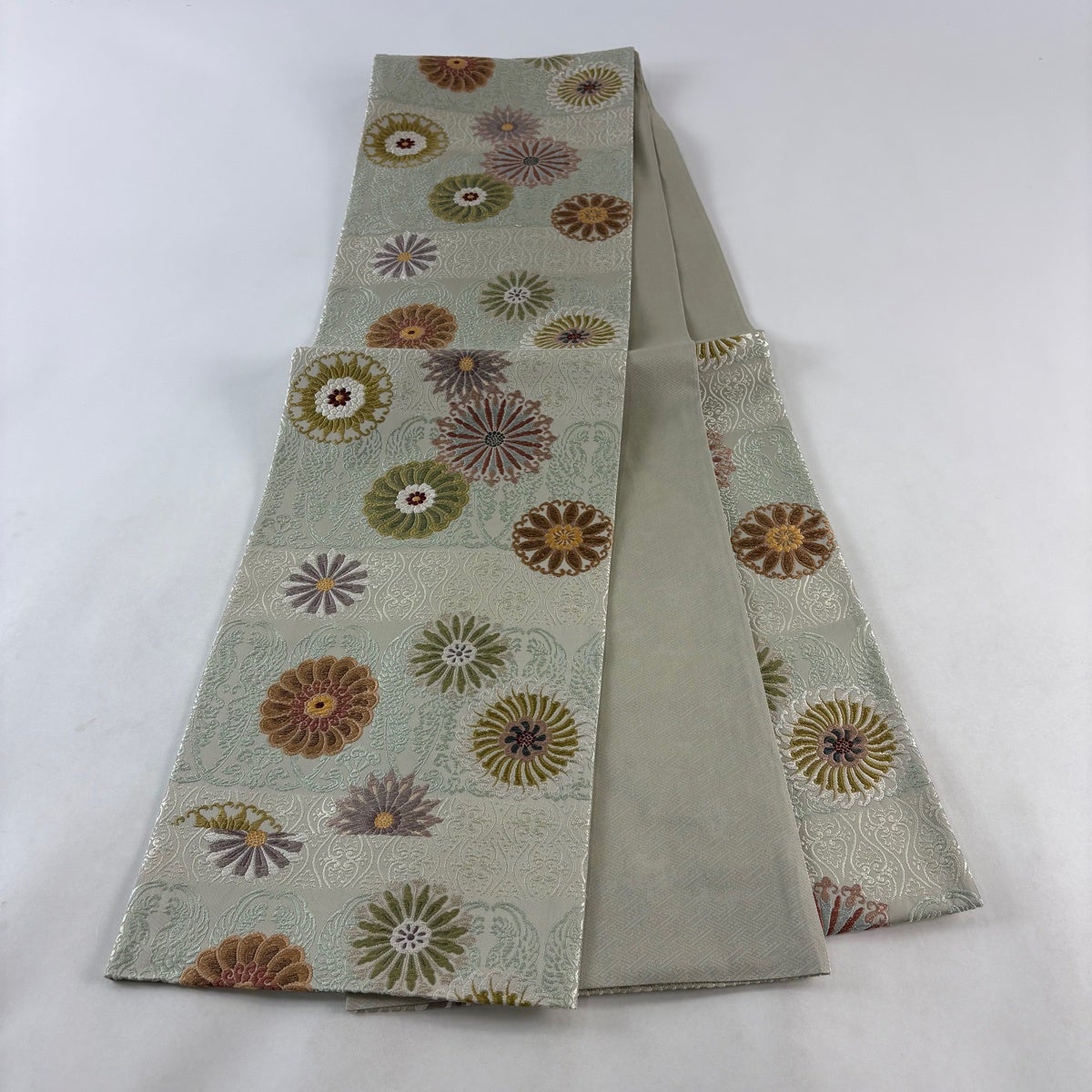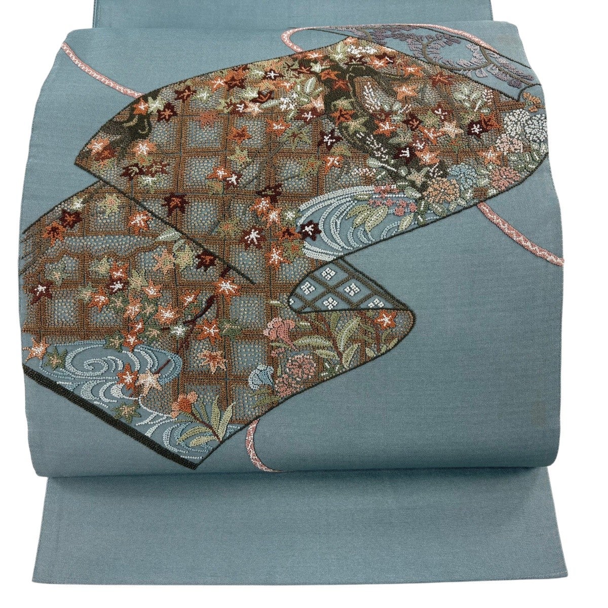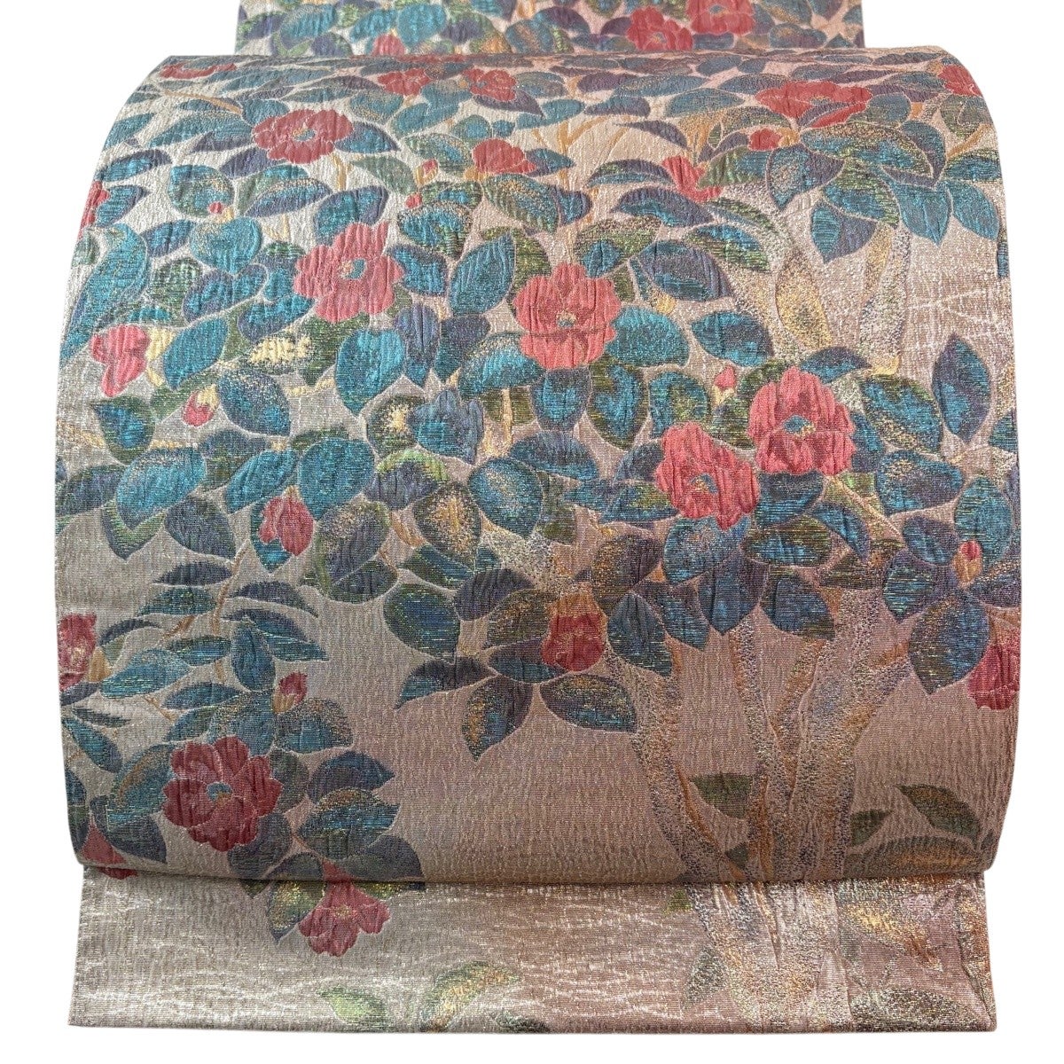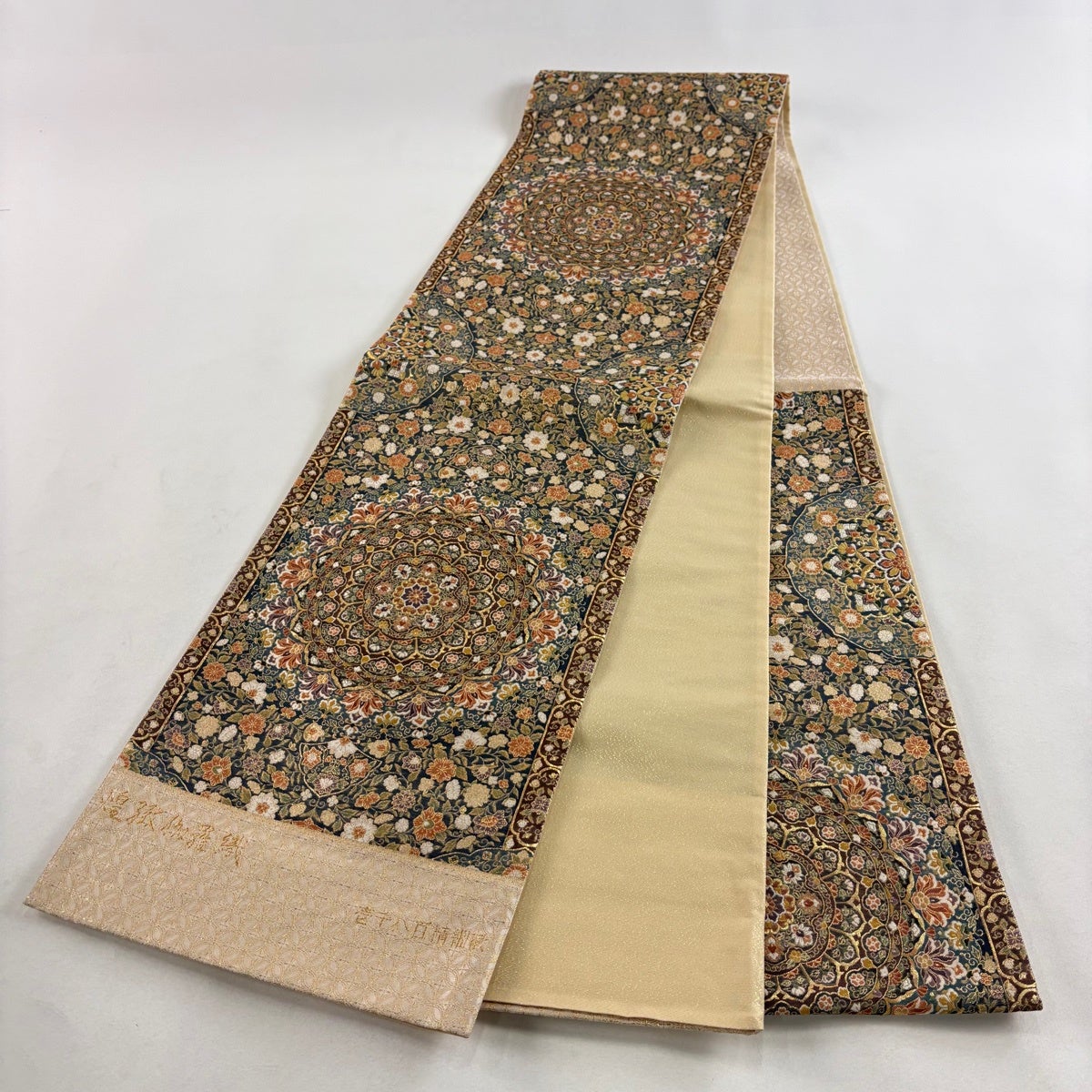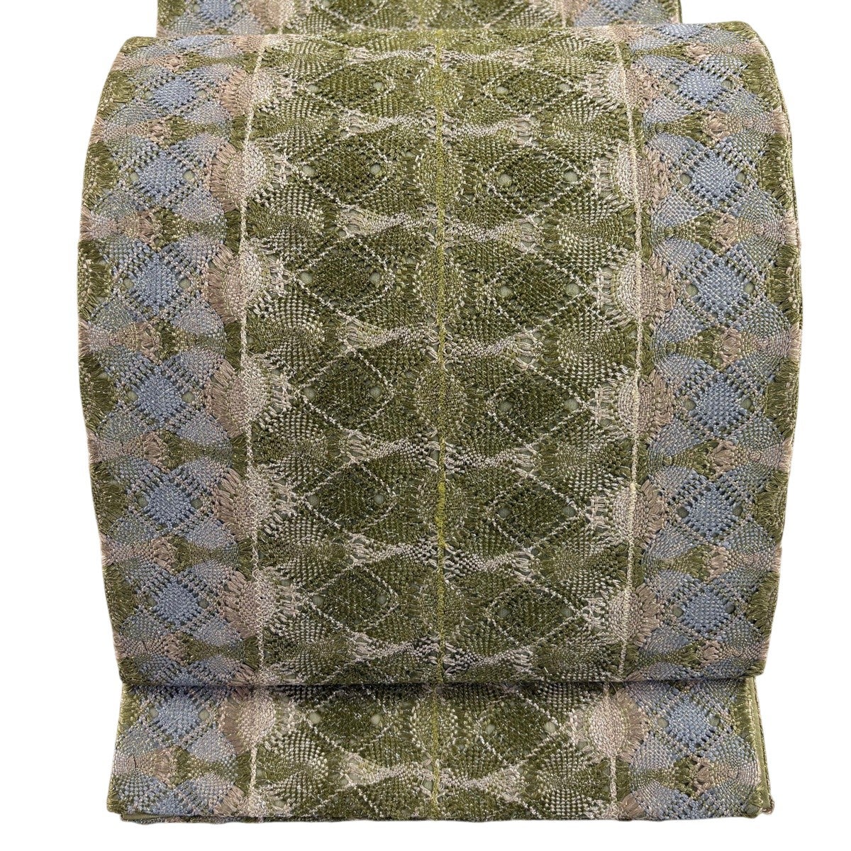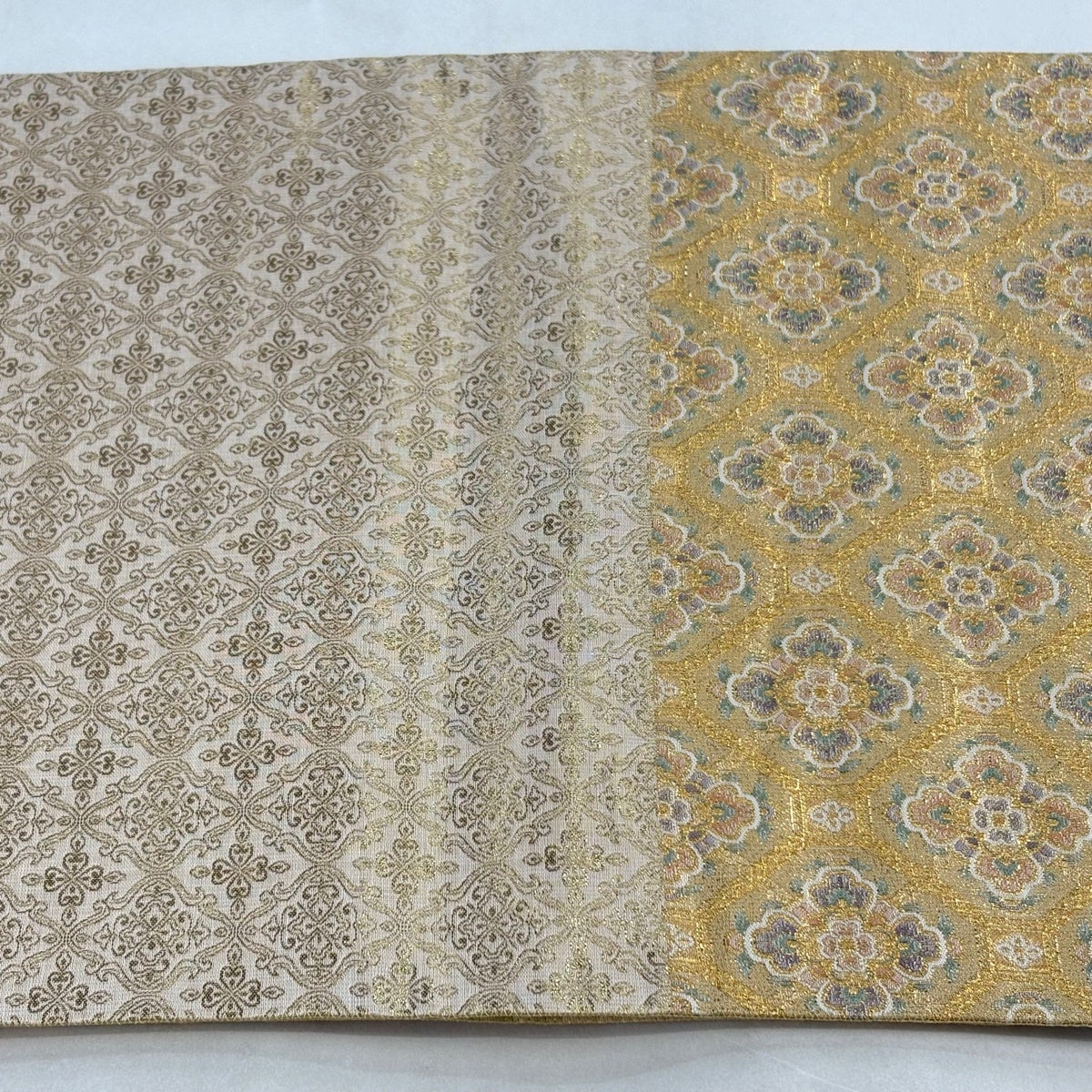 袋帯とは女性用の主にフォーマル用の帯で第一礼装として着用されることが多く、形状は表地にのみ柄があり裏地は無地になるように袋状に織って作成されたため袋帯という名が付きました。 帯を締める際にはおめでたいことが重なりますようにという願いが込められている二重太鼓や成人式の際に振袖に見かけるふくら雀や文庫結びなどの変わり結びを用いて着用します。