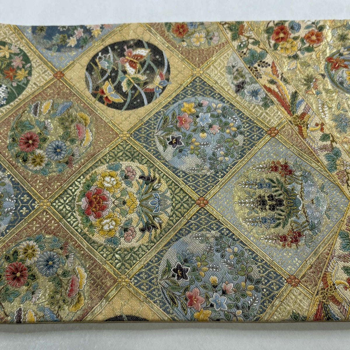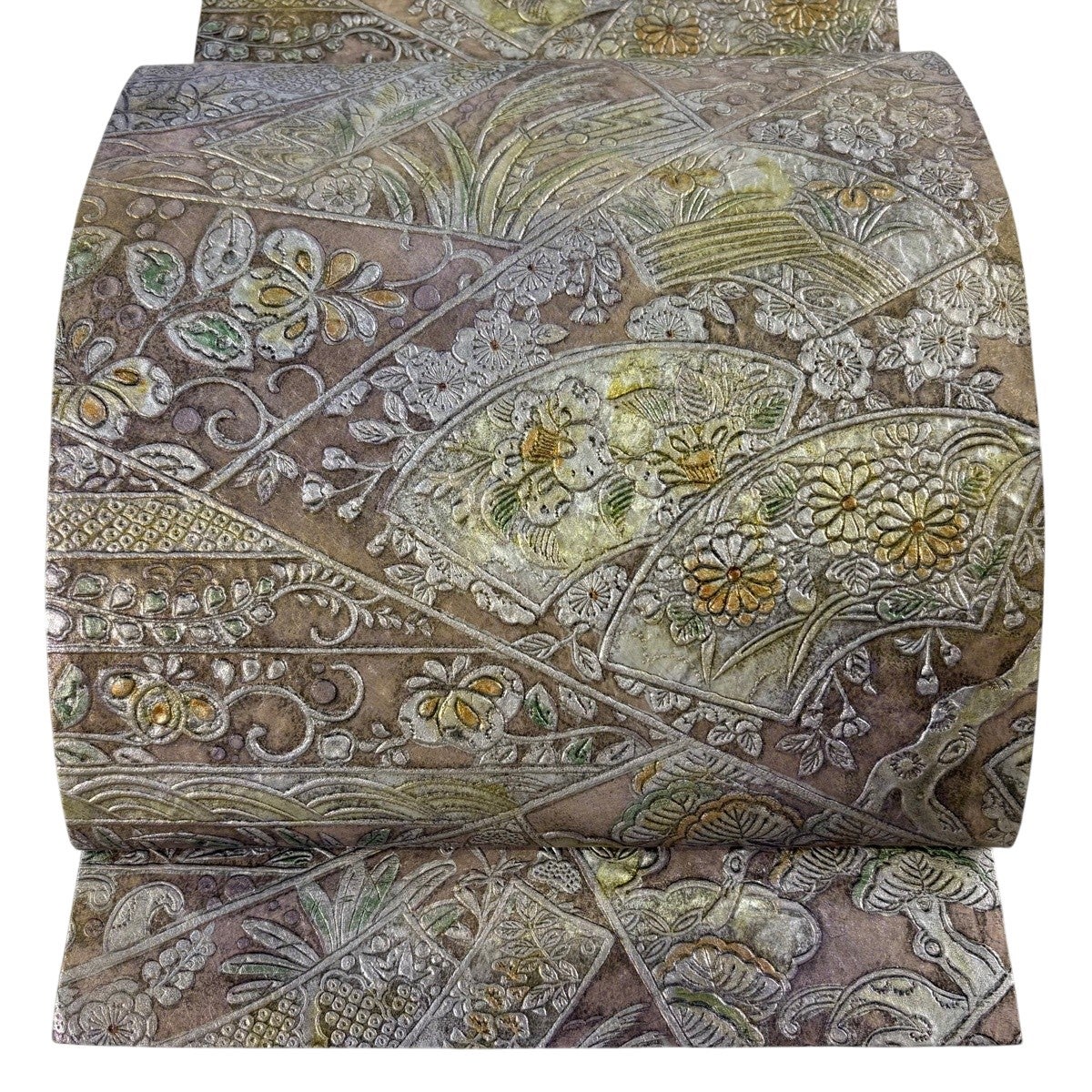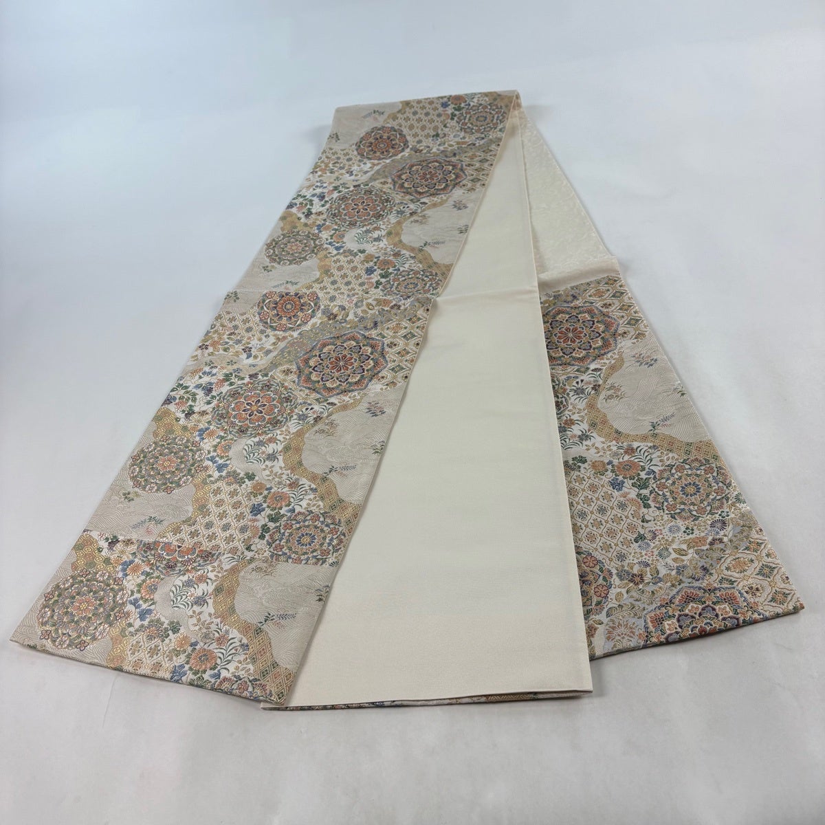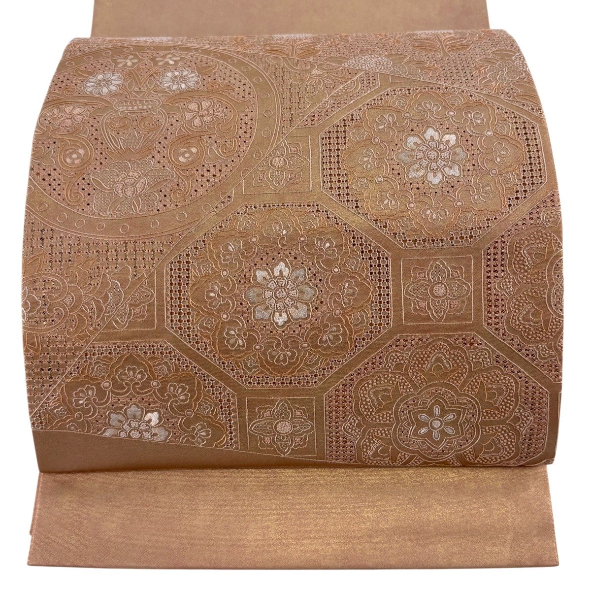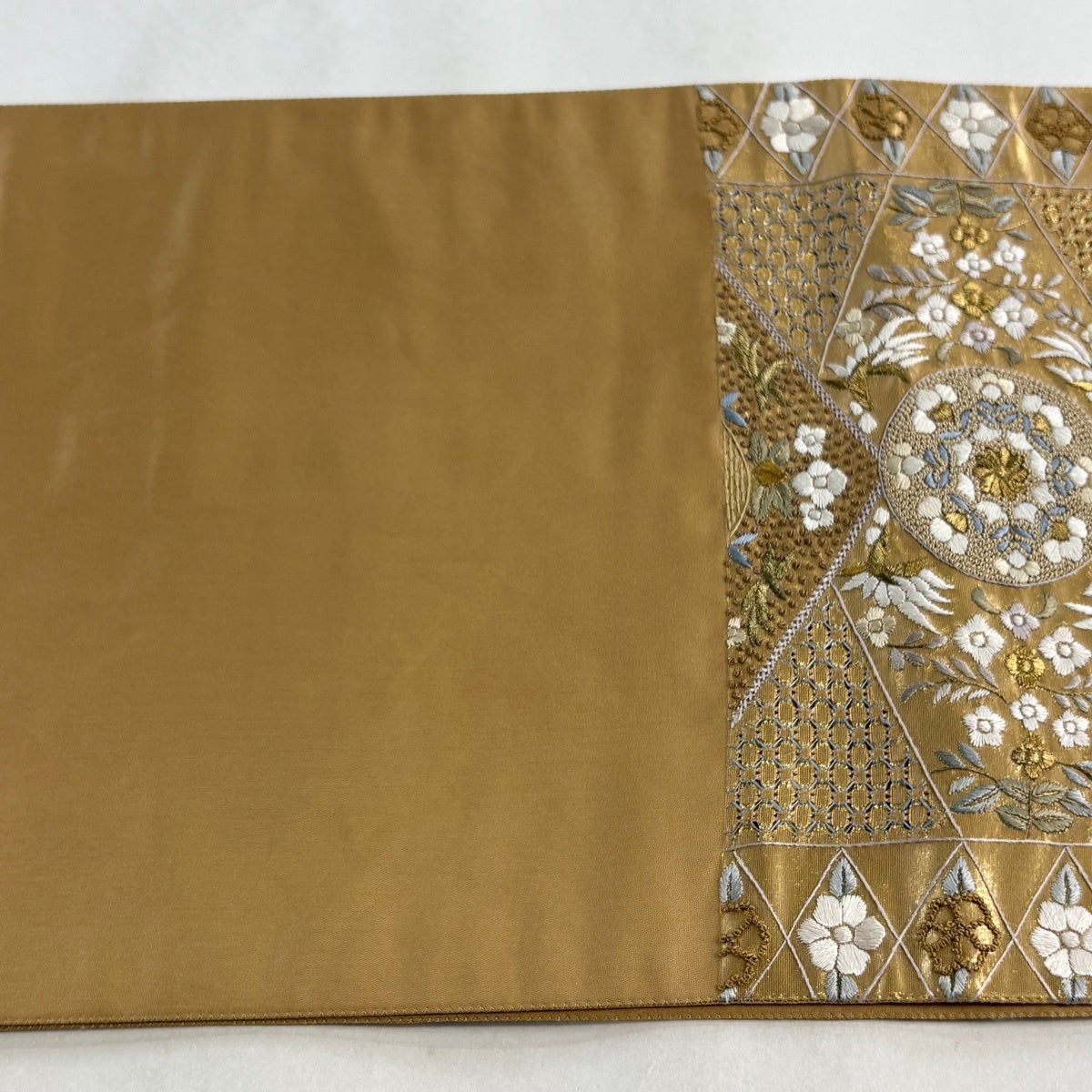 袋帯とは女性用の主にフォーマル用の帯で第一礼装として着用されることが多く、形状は表地にのみ柄があり裏地は無地になるように袋状に織って作成されたため袋帯という名が付きました。 帯を締める際にはおめでたいことが重なりますようにという願いが込められている二重太鼓や成人式の際に振袖に見かけるふくら雀や文庫結びなどの変わり結びを用いて着用します。