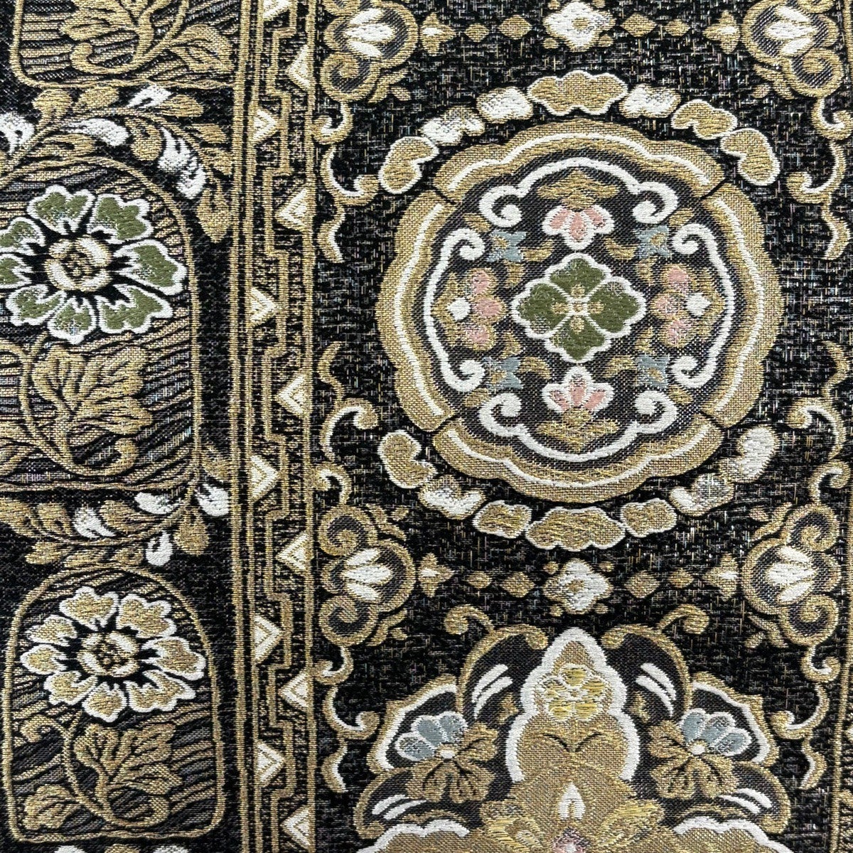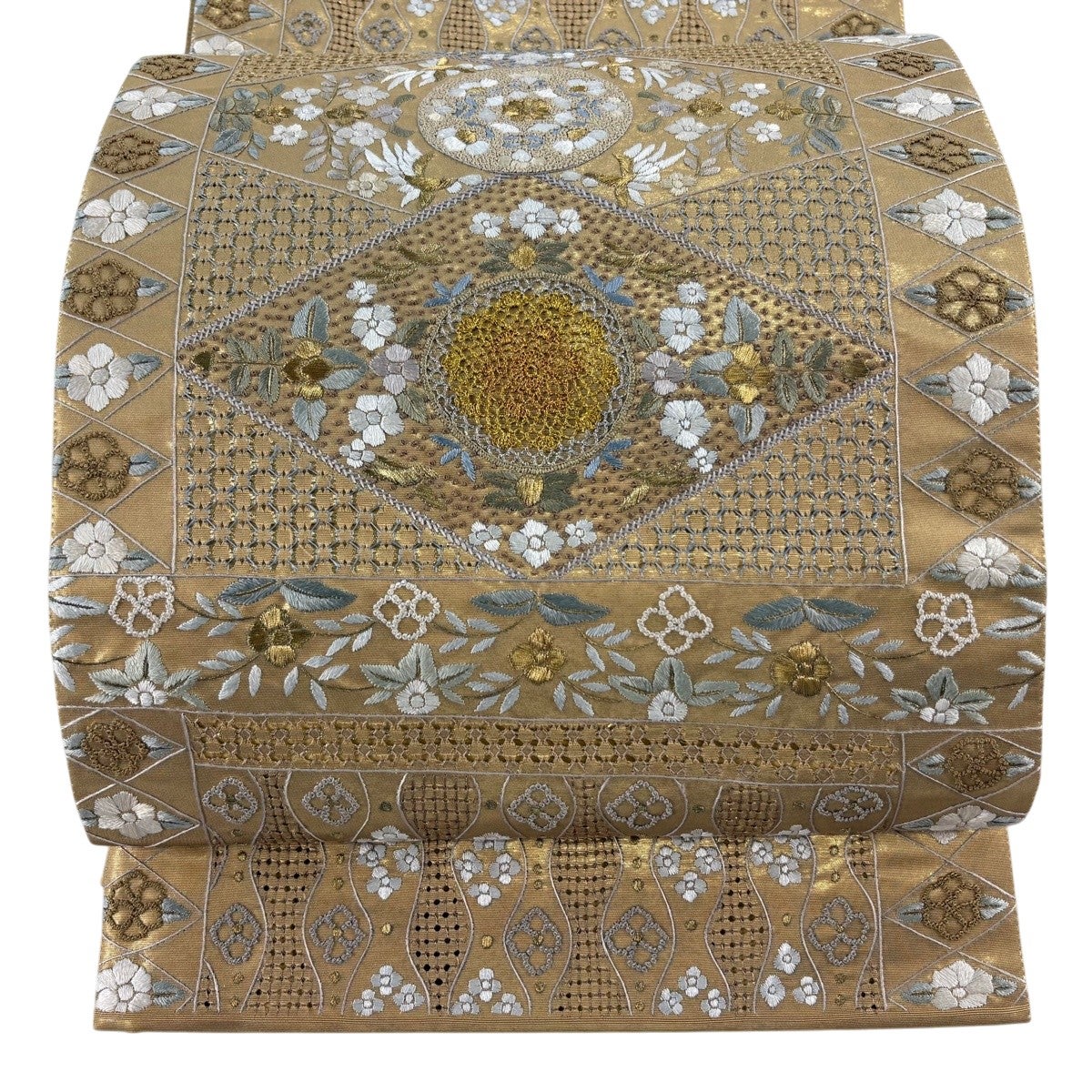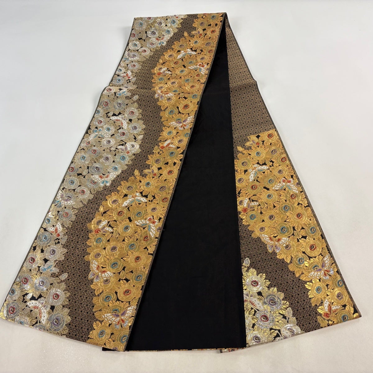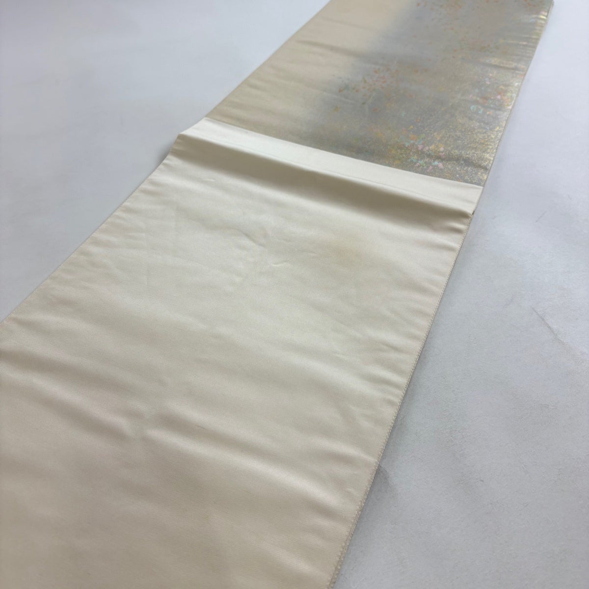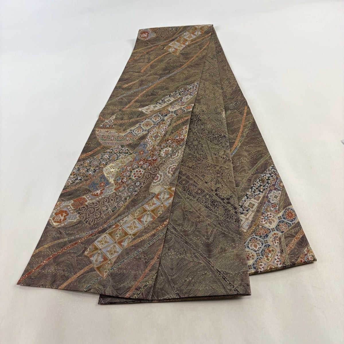 袋帯とは女性用の主にフォーマル用の帯で第一礼装として着用されることが多く、形状は表地にのみ柄があり裏地は無地になるように袋状に織って作成されたため袋帯という名が付きました。 帯を締める際にはおめでたいことが重なりますようにという願いが込められている二重太鼓や成人式の際に振袖に見かけるふくら雀や文庫結びなどの変わり結びを用いて着用します。