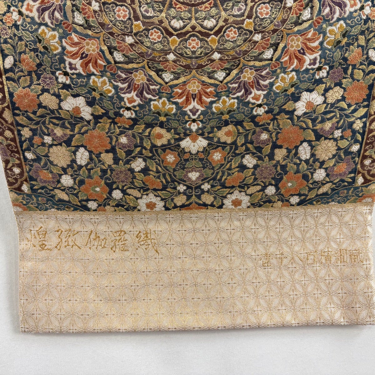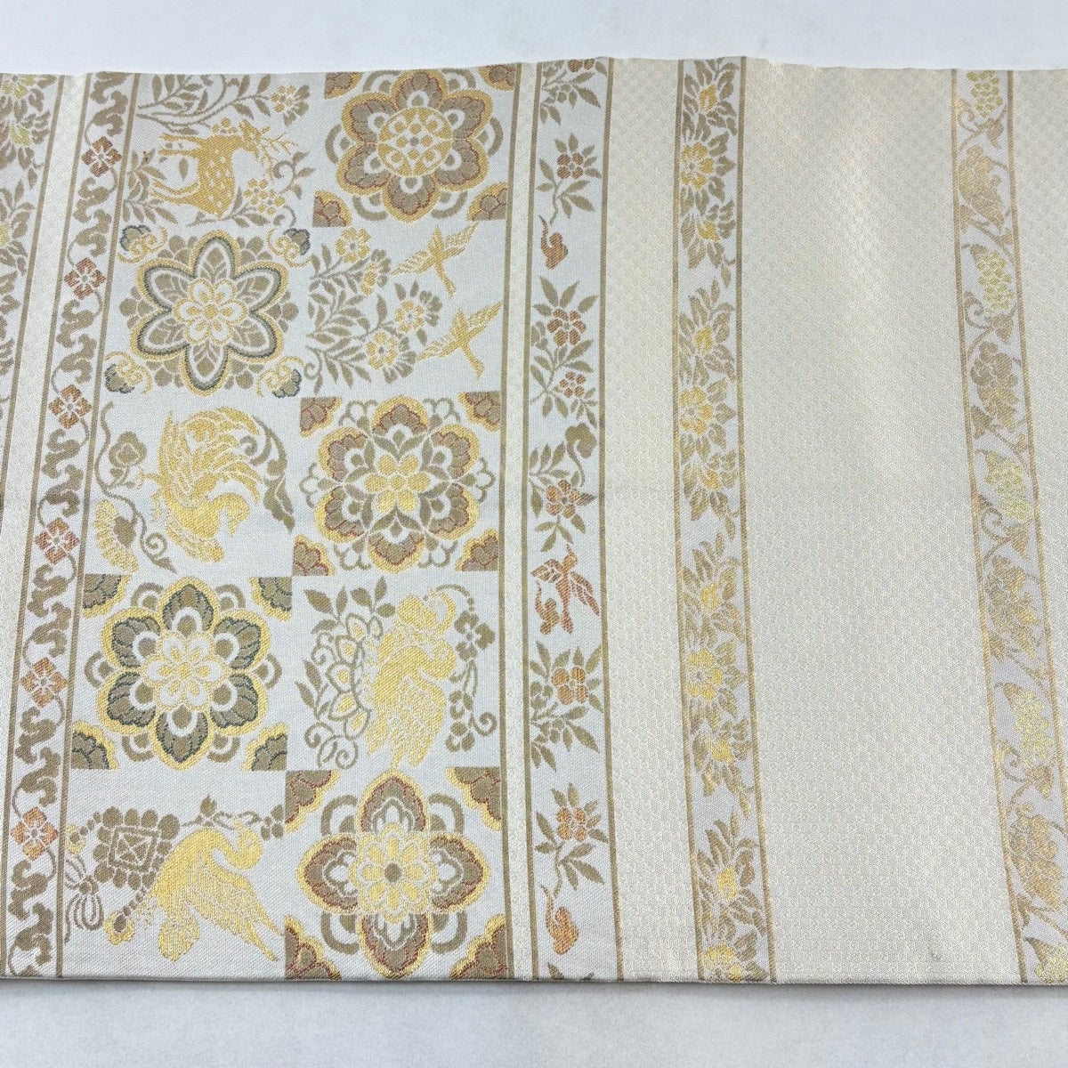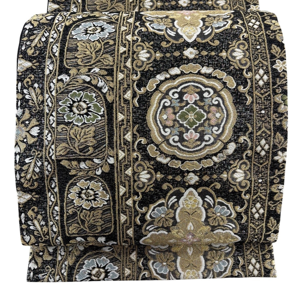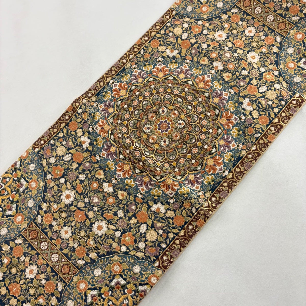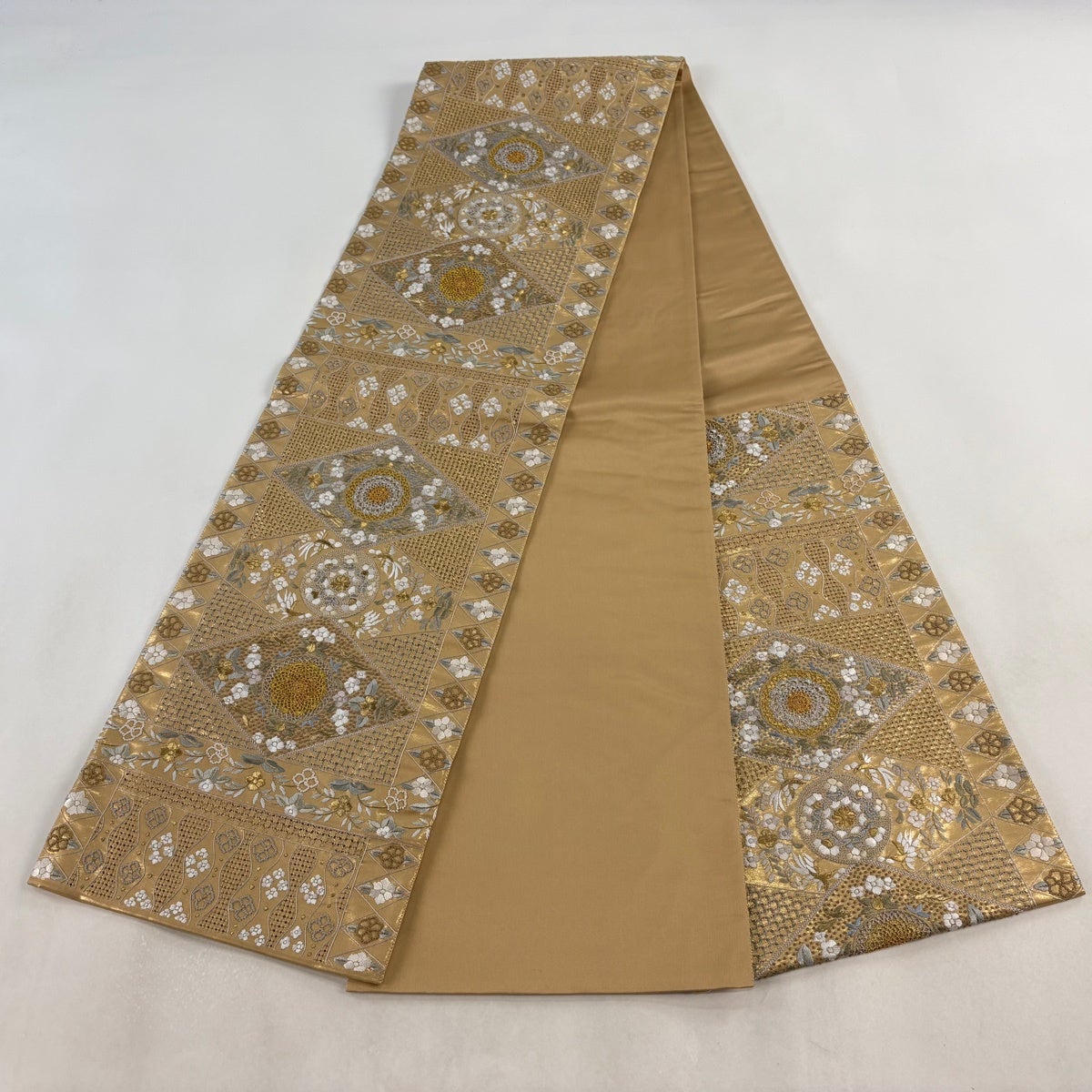 袋帯とは女性用の主にフォーマル用の帯で第一礼装として着用されることが多く、形状は表地にのみ柄があり裏地は無地になるように袋状に織って作成されたため袋帯という名が付きました。 帯を締める際にはおめでたいことが重なりますようにという願いが込められている二重太鼓や成人式の際に振袖に見かけるふくら雀や文庫結びなどの変わり結びを用いて着用します。