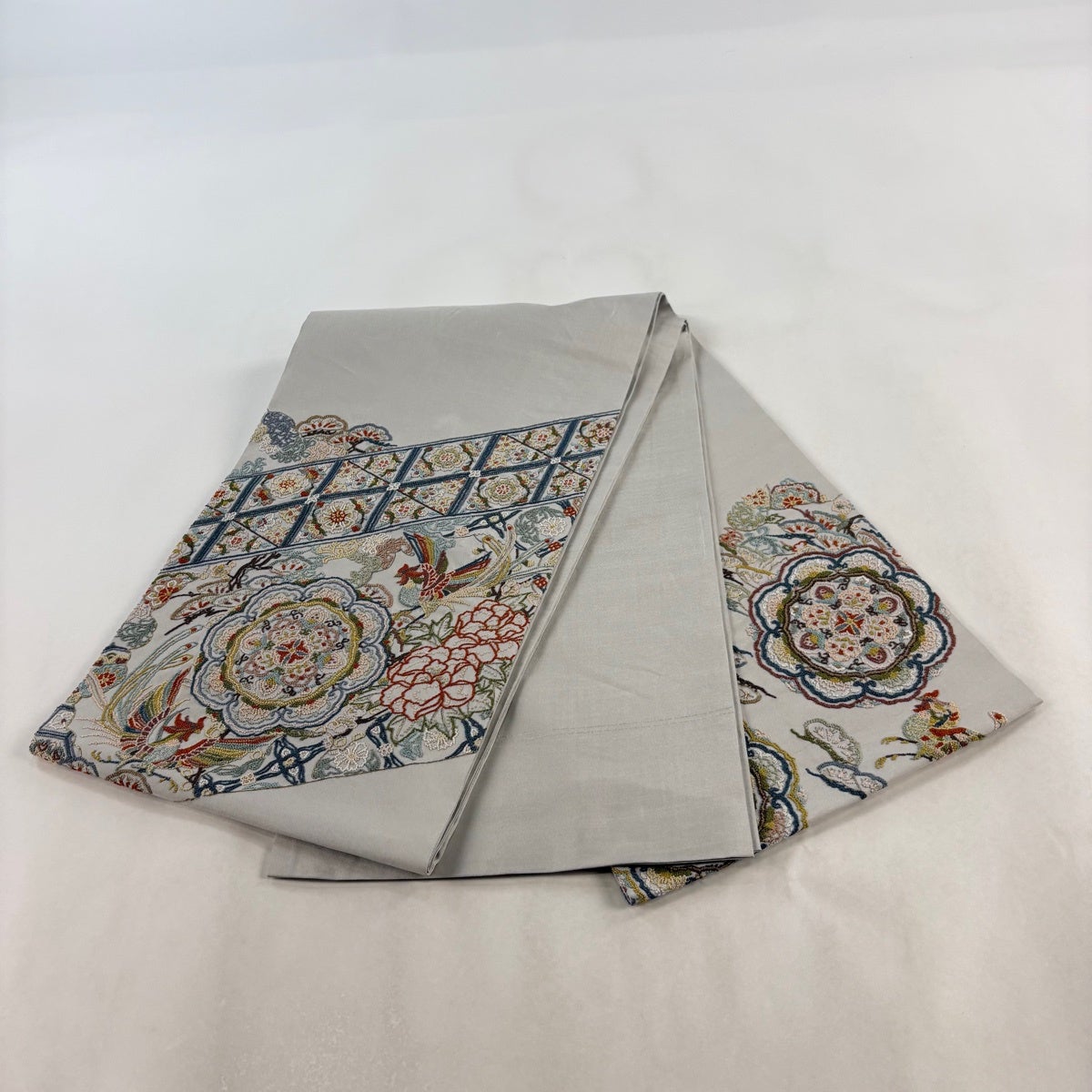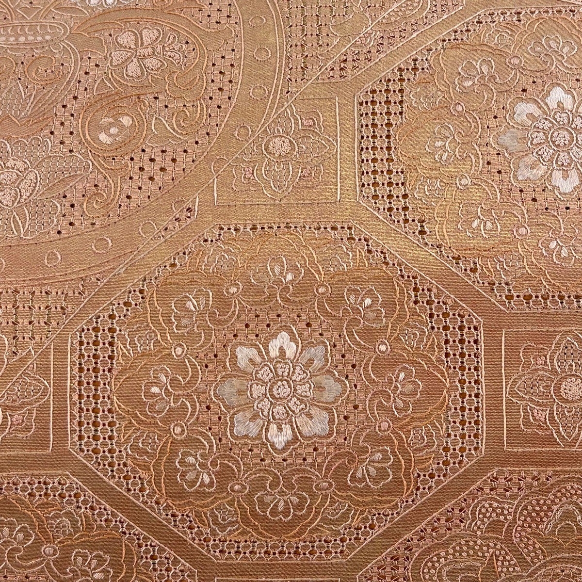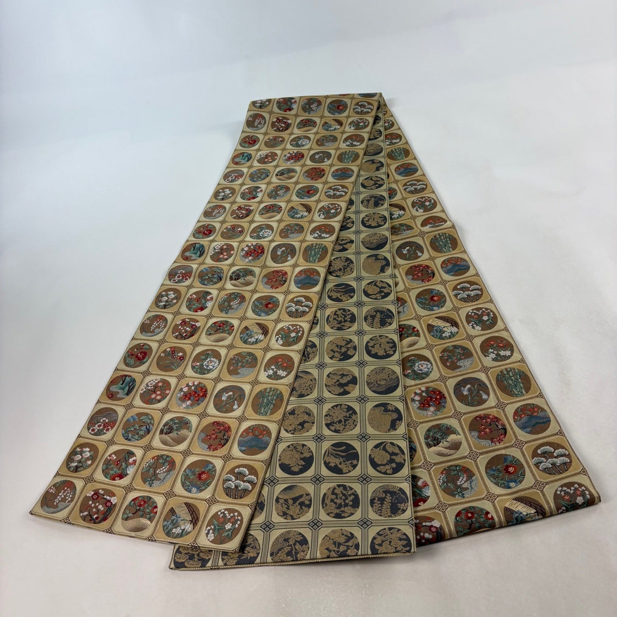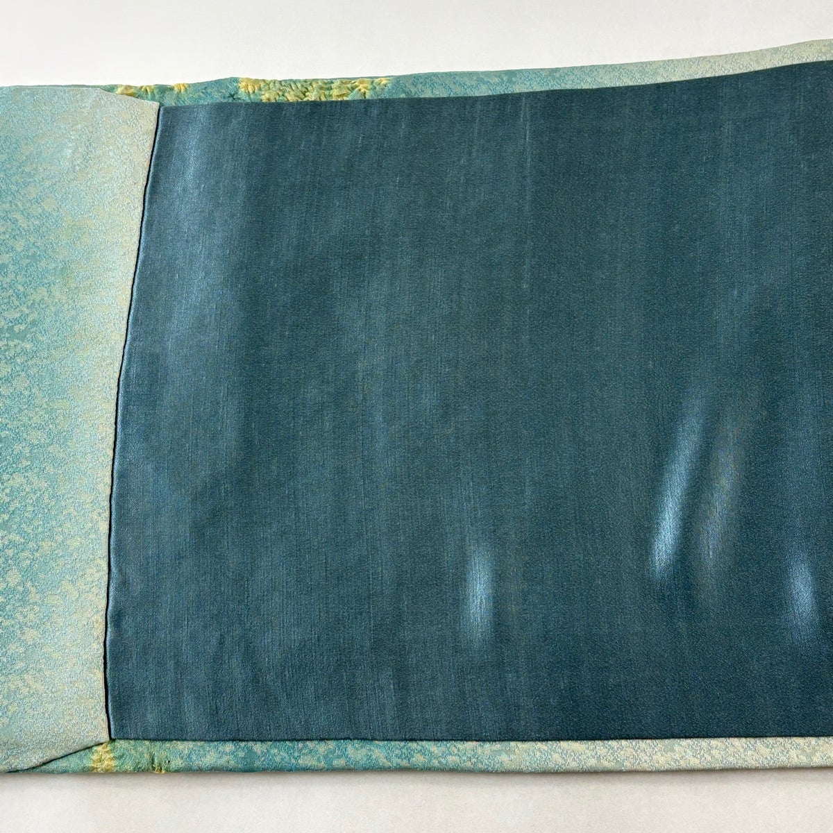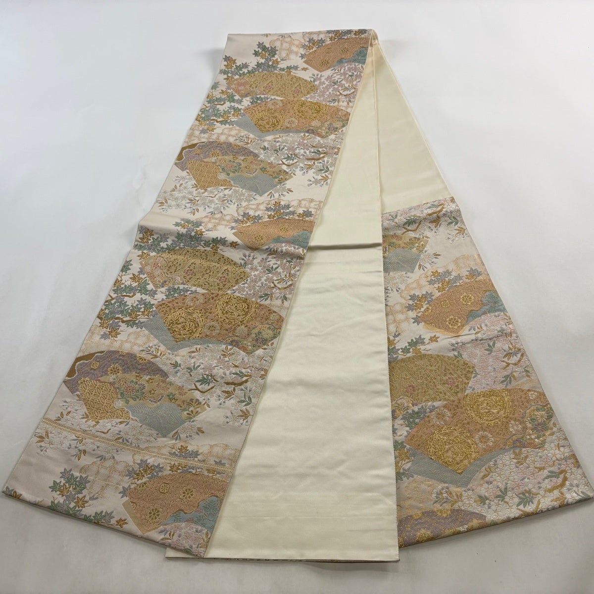 袋帯とは女性用の主にフォーマル用の帯で第一礼装として着用されることが多く、形状は表地にのみ柄があり裏地は無地になるように袋状に織って作成されたため袋帯という名が付きました。 帯を締める際にはおめでたいことが重なりますようにという願いが込められている二重太鼓や成人式の際に振袖に見かけるふくら雀や文庫結びなどの変わり結びを用いて着用します。