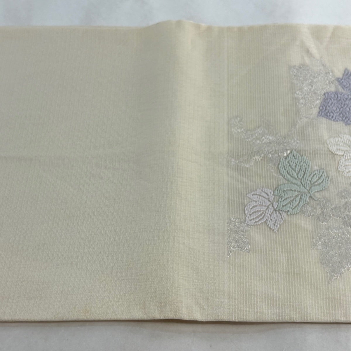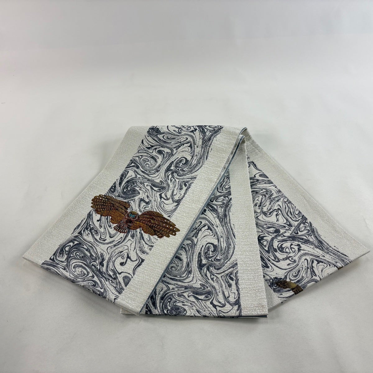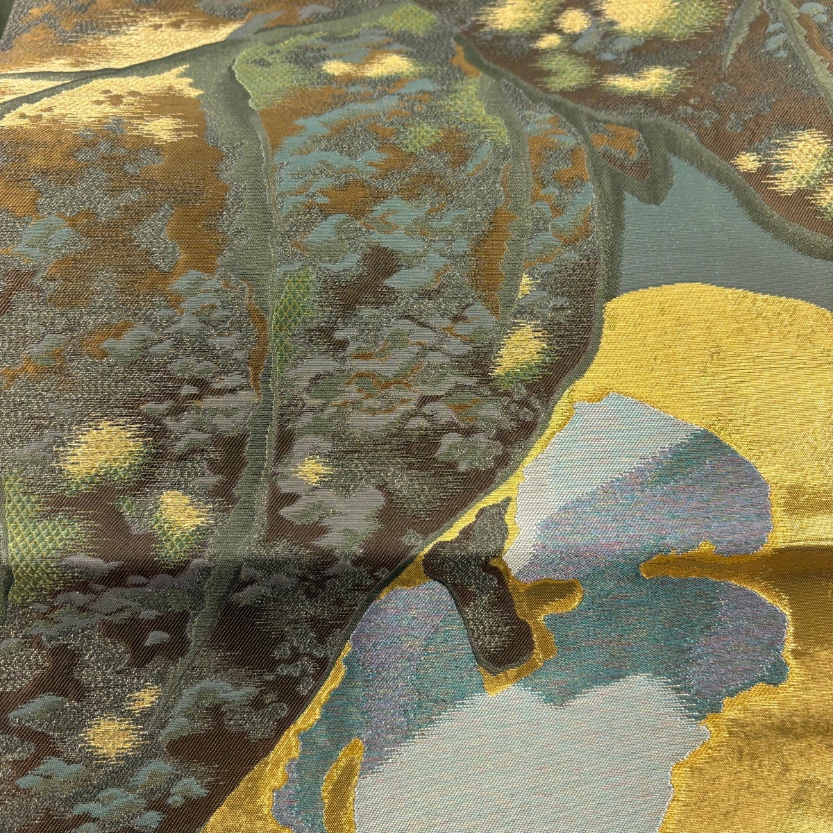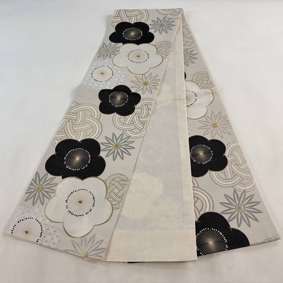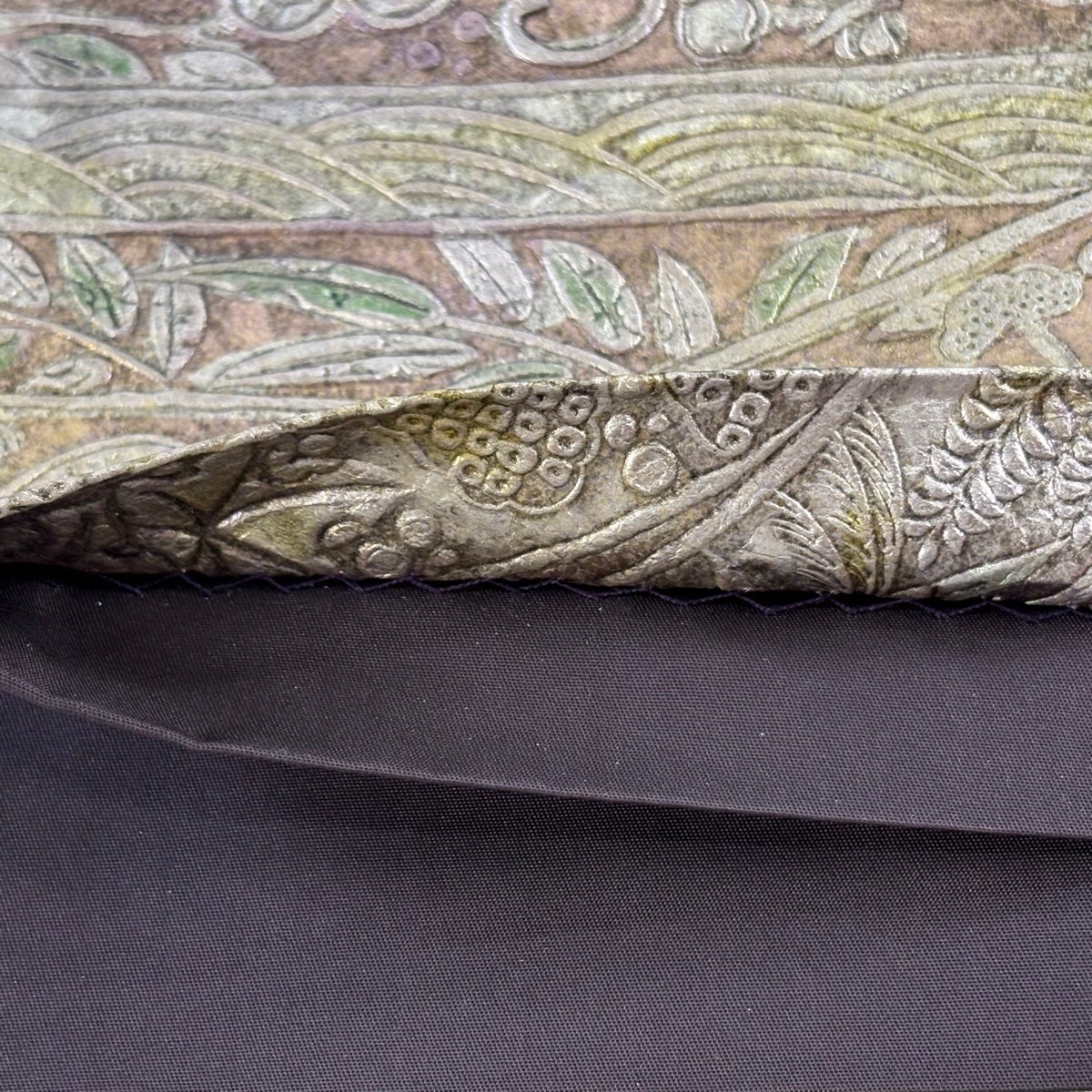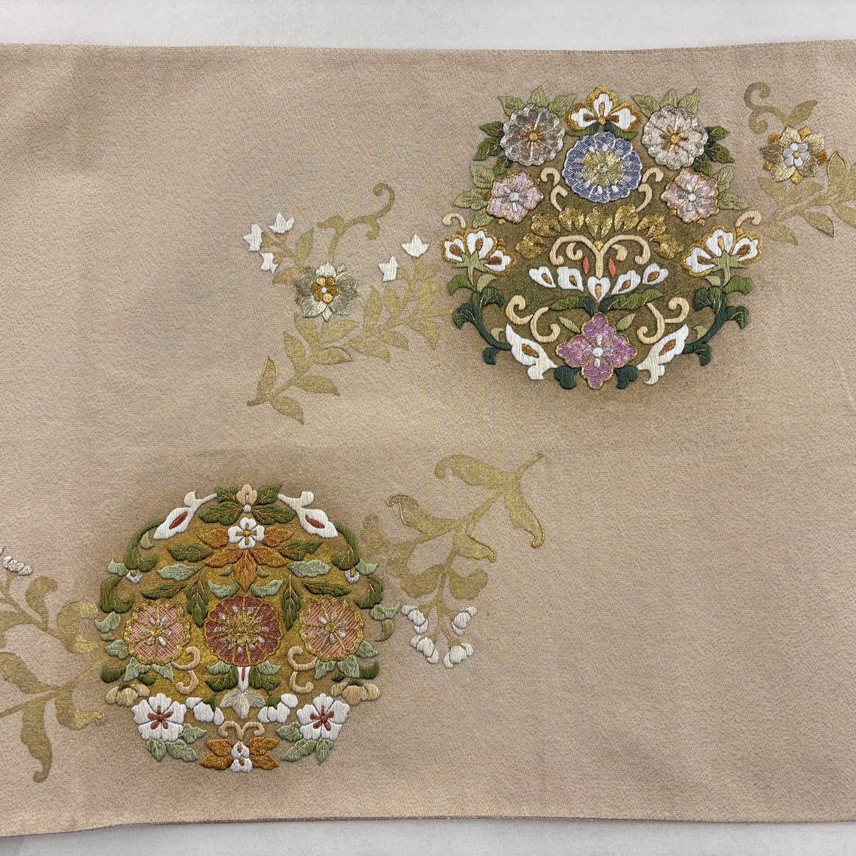 袋帯とは女性用の主にフォーマル用の帯で第一礼装として着用されることが多く、形状は表地にのみ柄があり裏地は無地になるように袋状に織って作成されたため袋帯という名が付きました。 帯を締める際にはおめでたいことが重なりますようにという願いが込められている二重太鼓や成人式の際に振袖に見かけるふくら雀や文庫結びなどの変わり結びを用いて着用します。