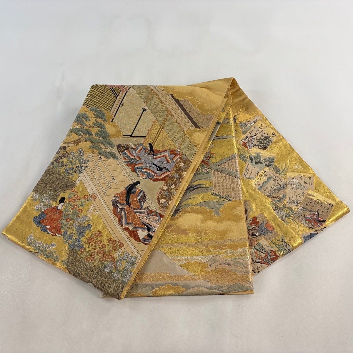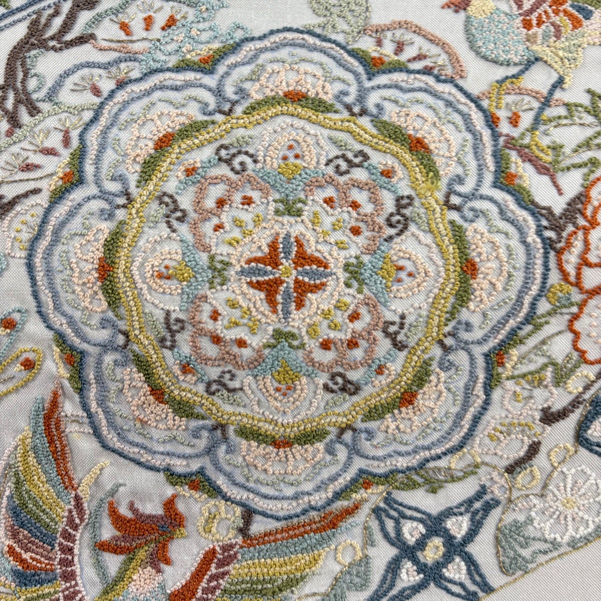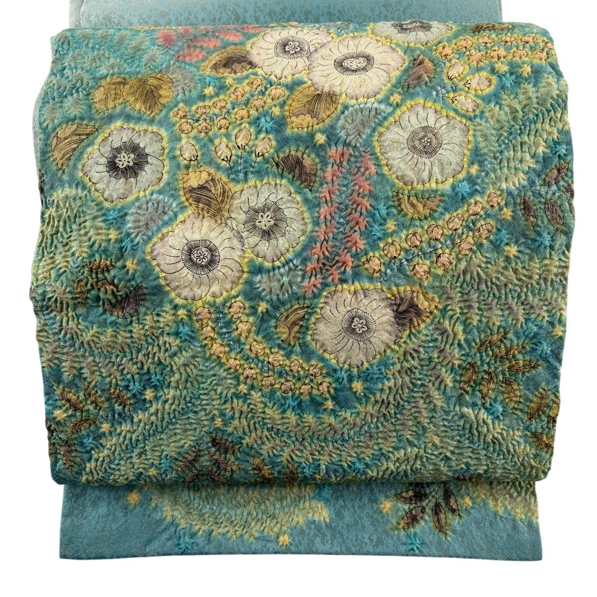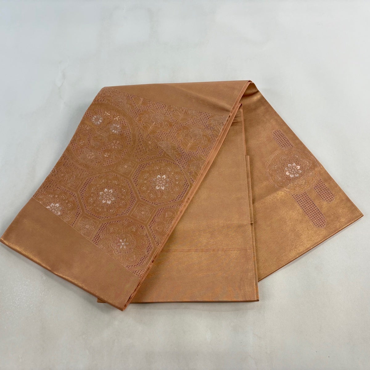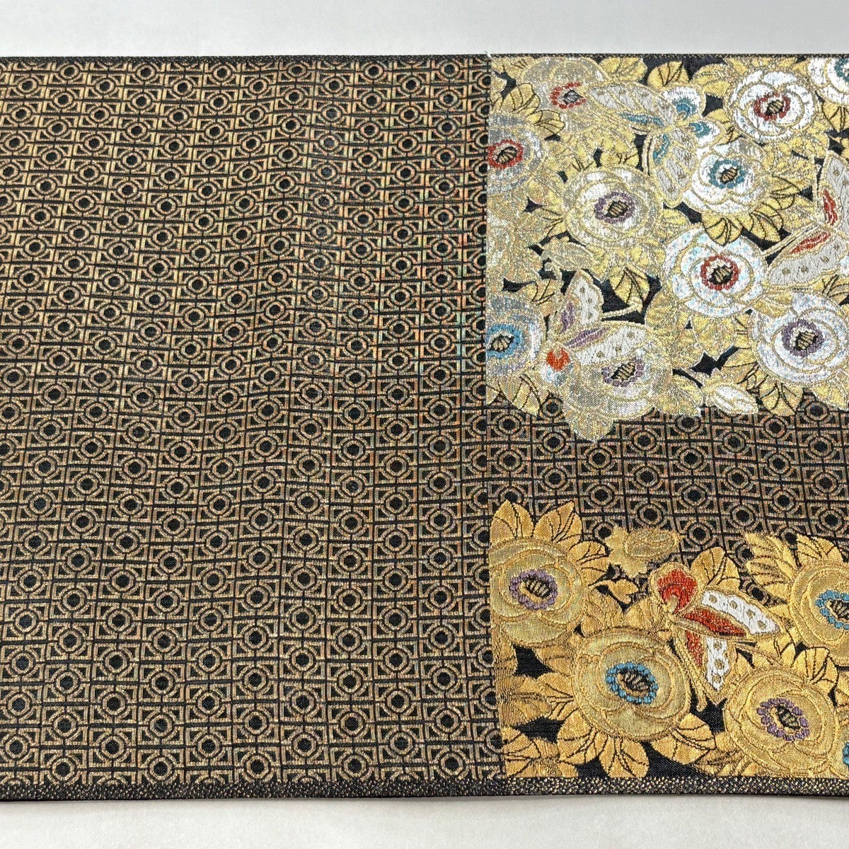 袋帯とは女性用の主にフォーマル用の帯で第一礼装として着用されることが多く、形状は表地にのみ柄があり裏地は無地になるように袋状に織って作成されたため袋帯という名が付きました。 帯を締める際にはおめでたいことが重なりますようにという願いが込められている二重太鼓や成人式の際に振袖に見かけるふくら雀や文庫結びなどの変わり結びを用いて着用します。