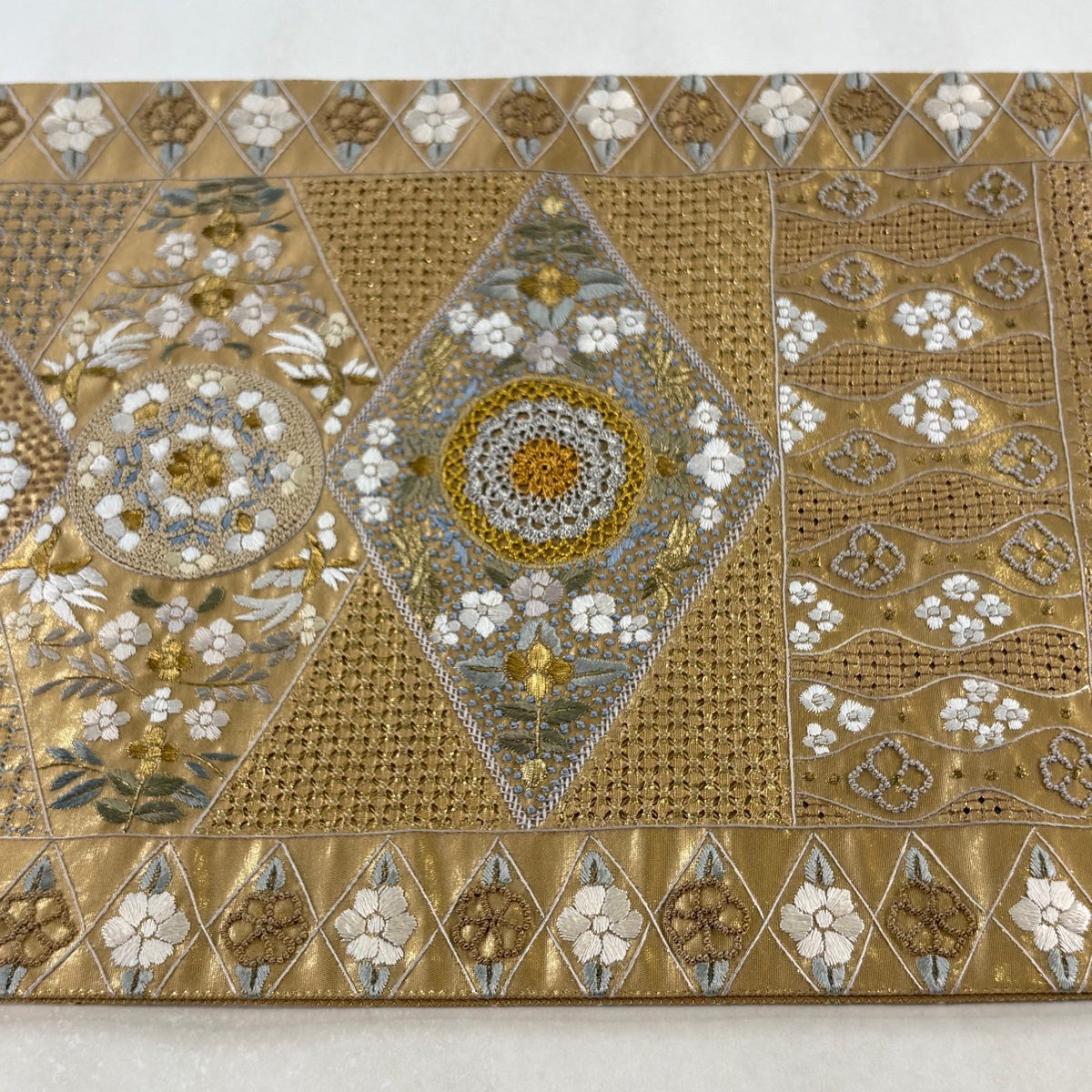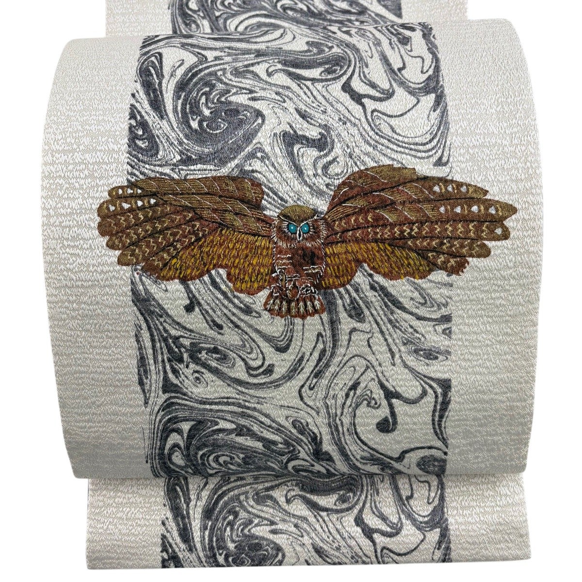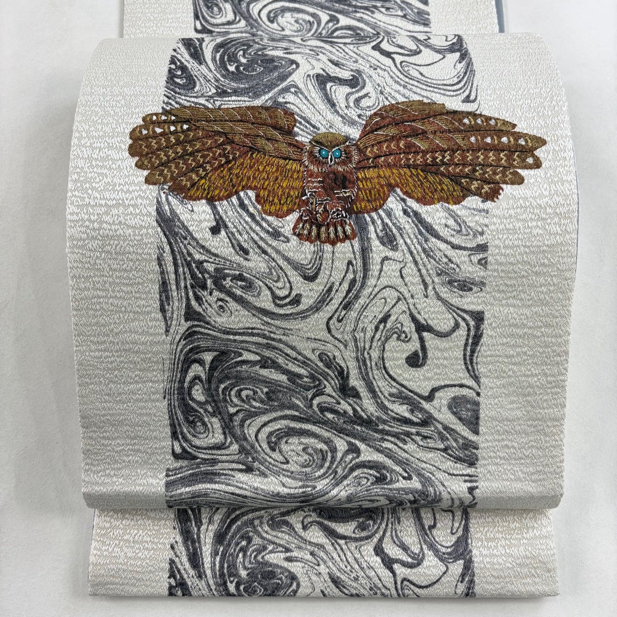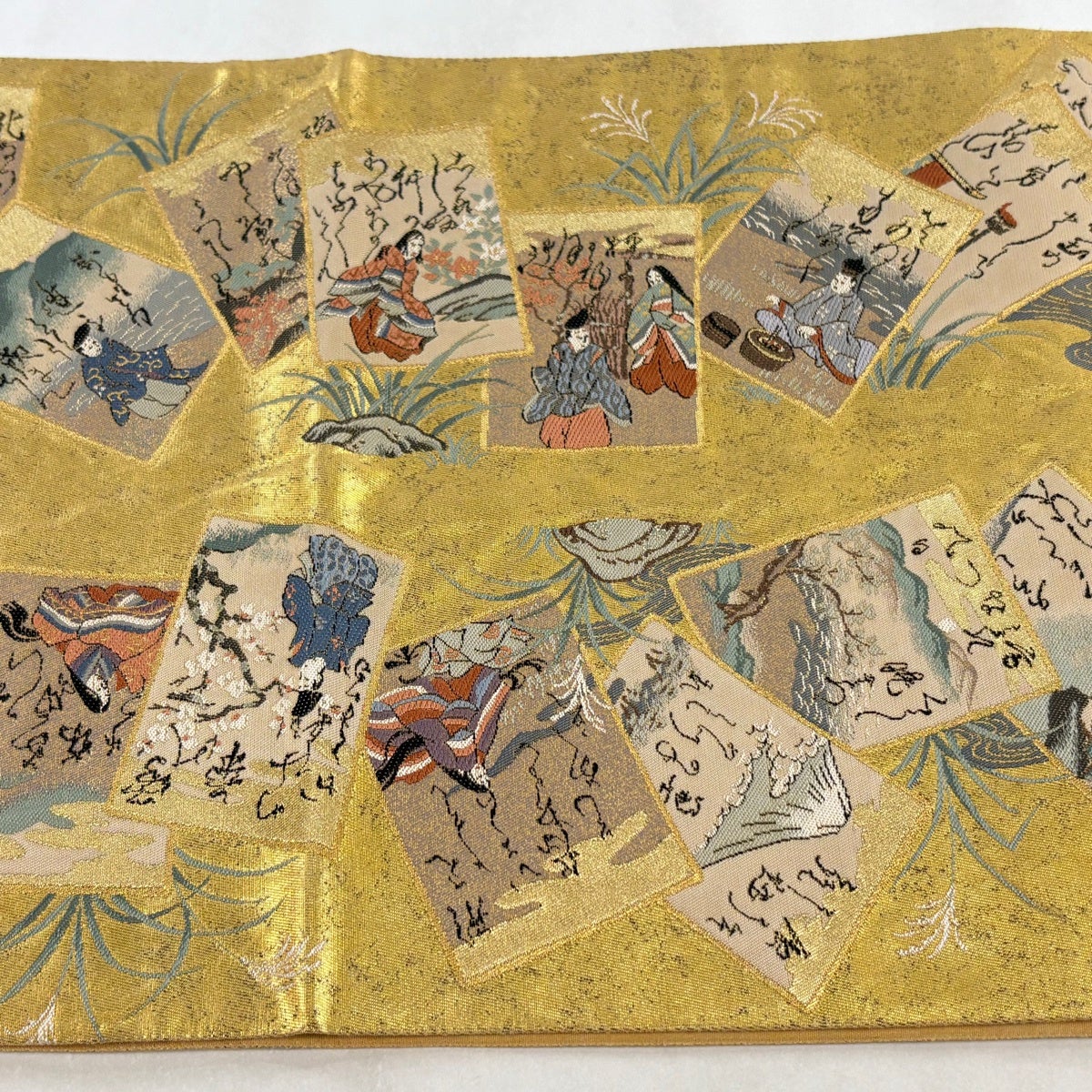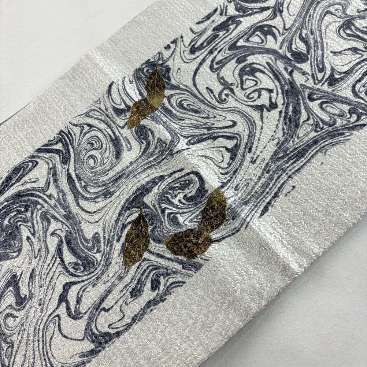 袋帯とは女性用の主にフォーマル用の帯で第一礼装として着用されることが多く、形状は表地にのみ柄があり裏地は無地になるように袋状に織って作成されたため袋帯という名が付きました。 帯を締める際にはおめでたいことが重なりますようにという願いが込められている二重太鼓や成人式の際に振袖に見かけるふくら雀や文庫結びなどの変わり結びを用いて着用します。