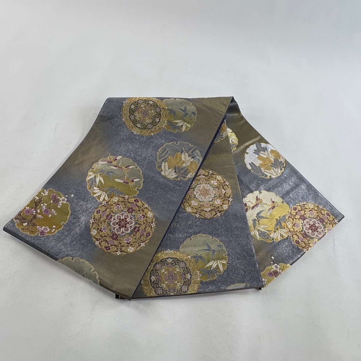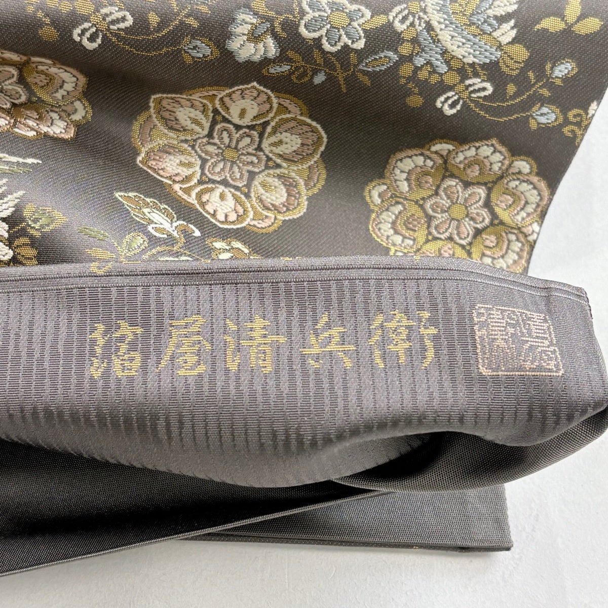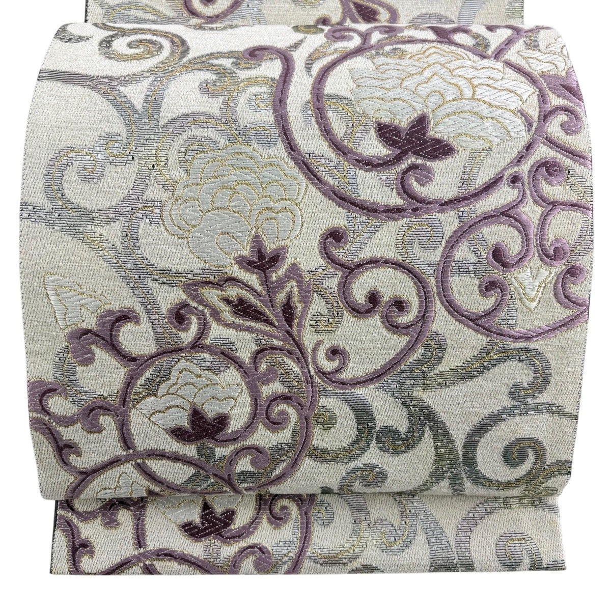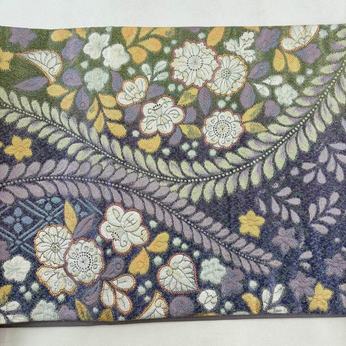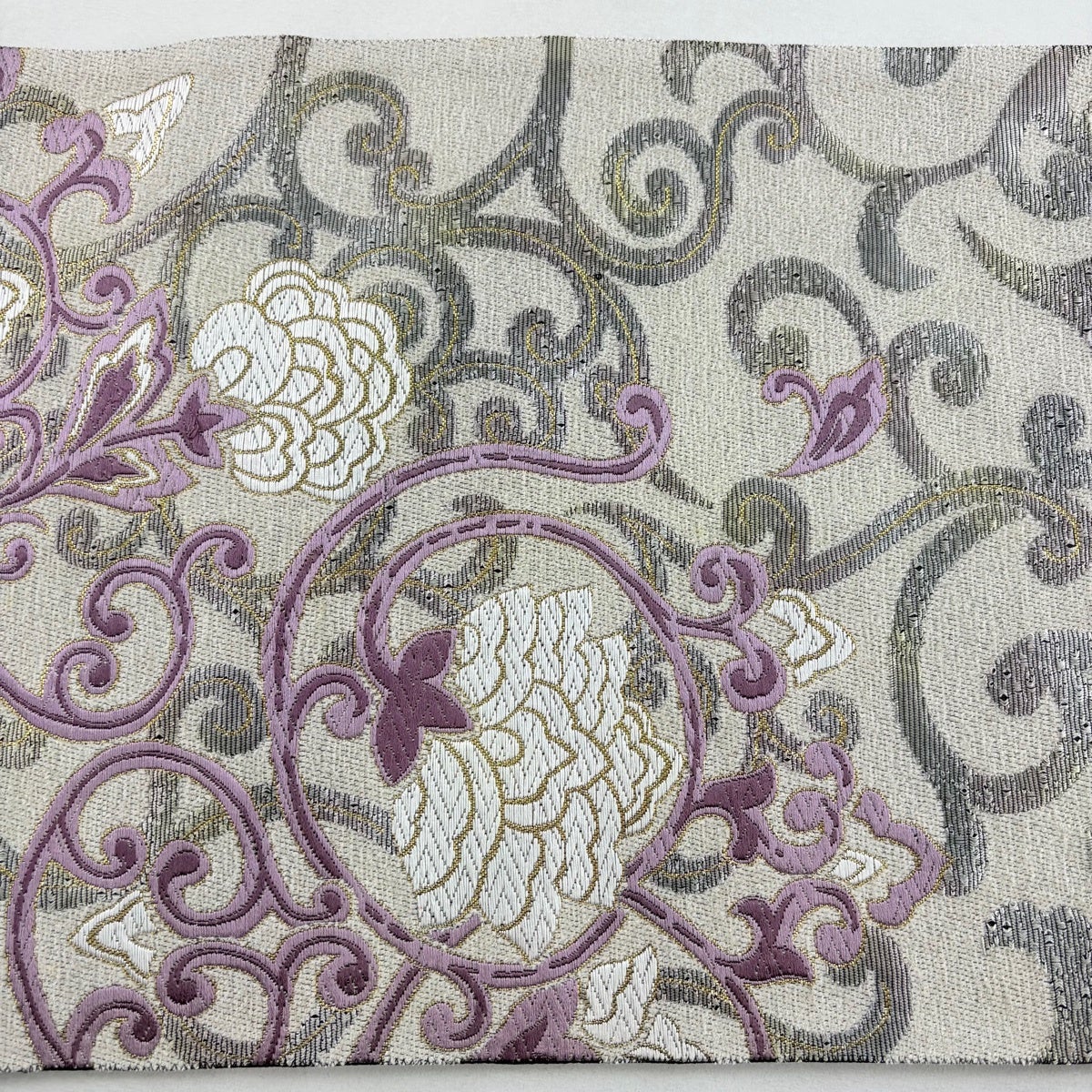 袋帯とは女性用の主にフォーマル用の帯で第一礼装として着用されることが多く、形状は表地にのみ柄があり裏地は無地になるように袋状に織って作成されたため袋帯という名が付きました。 帯を締める際にはおめでたいことが重なりますようにという願いが込められている二重太鼓や成人式の際に振袖に見かけるふくら雀や文庫結びなどの変わり結びを用いて着用します。