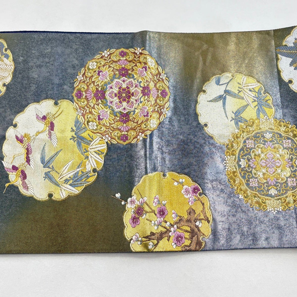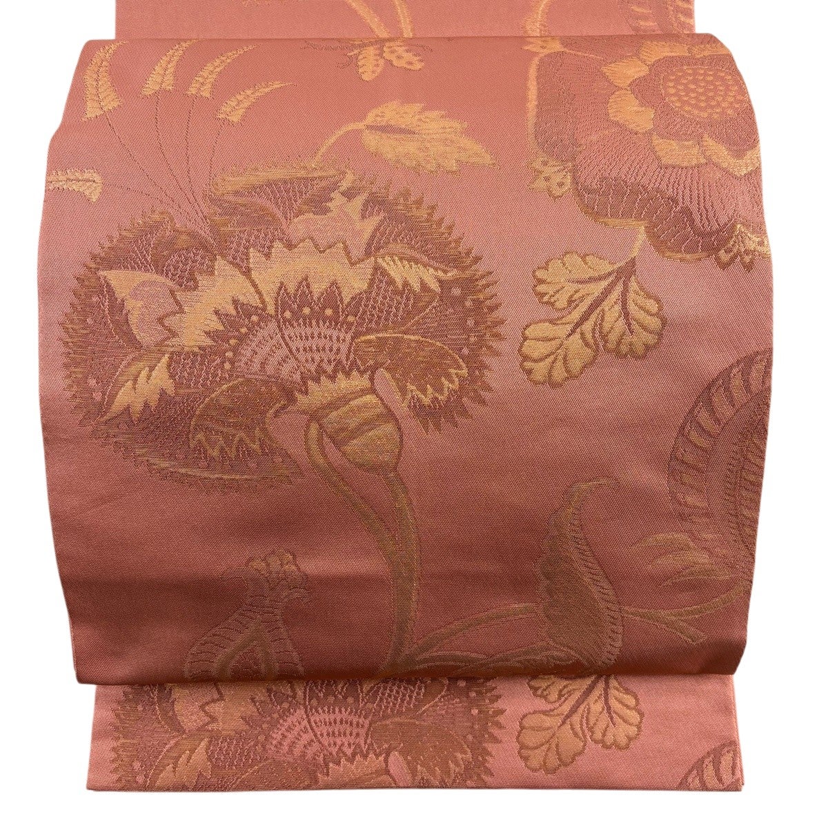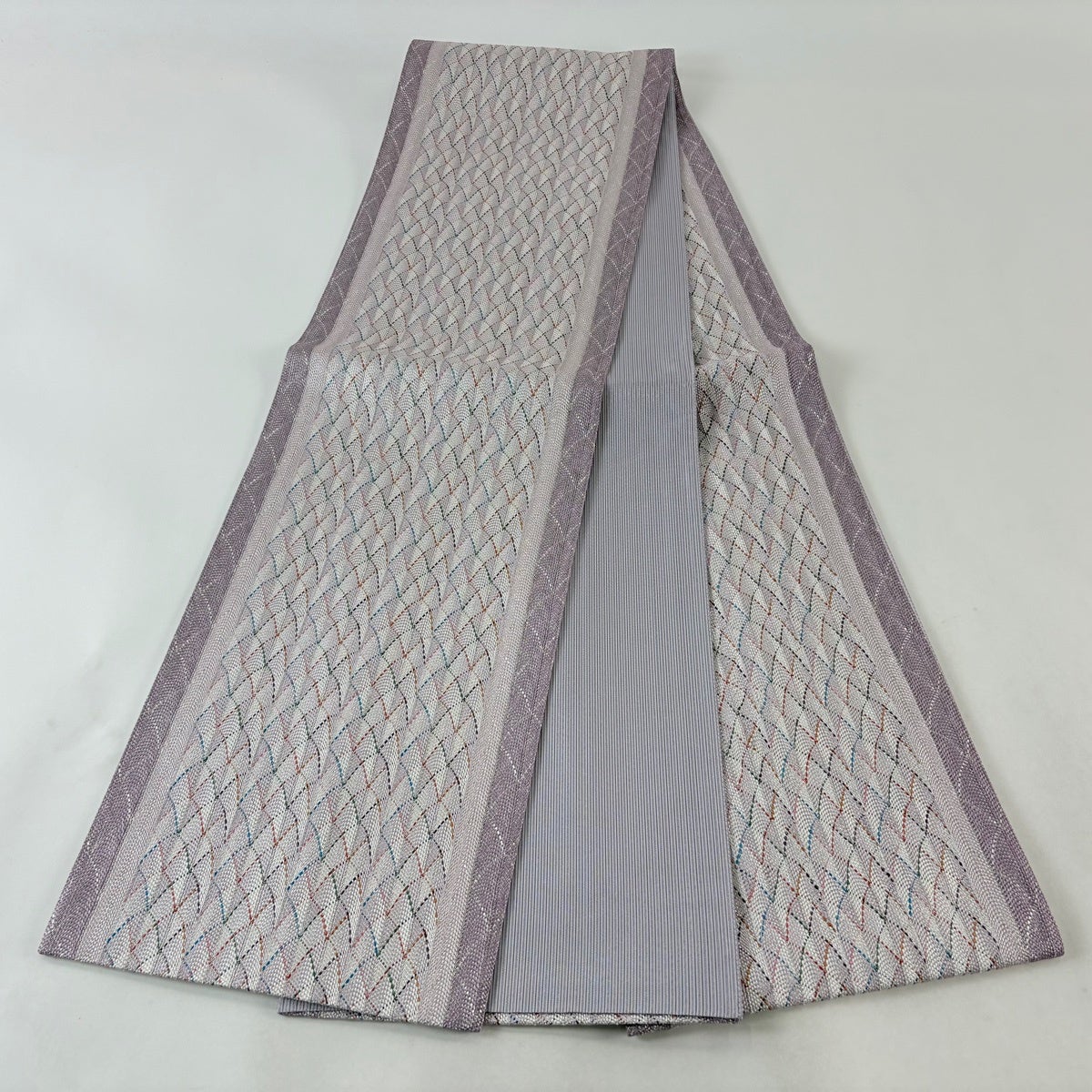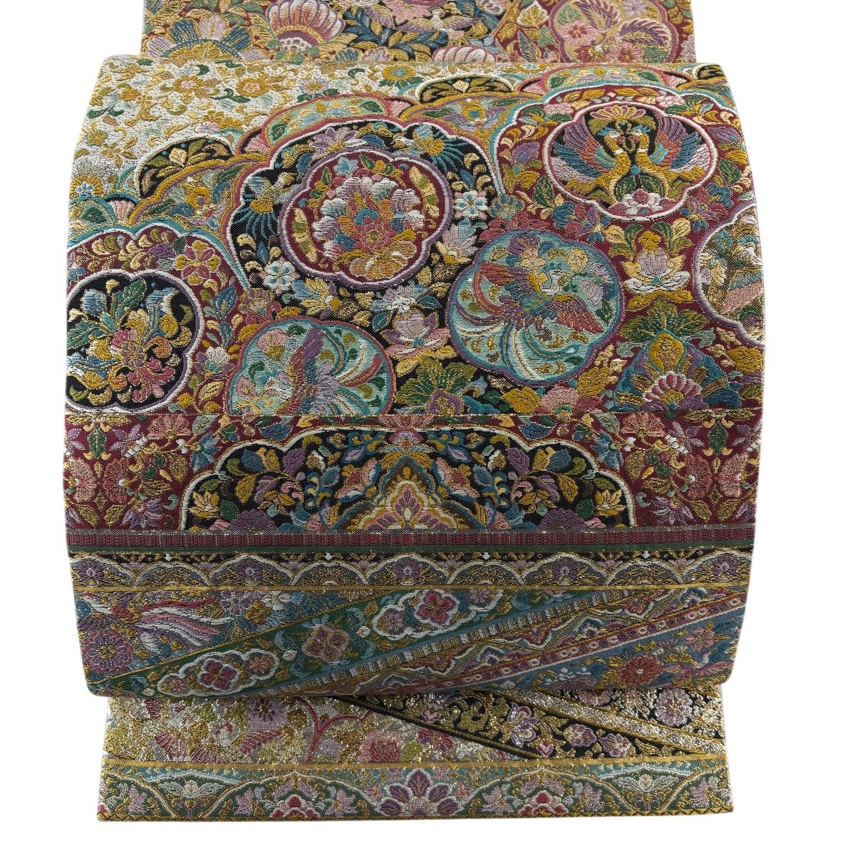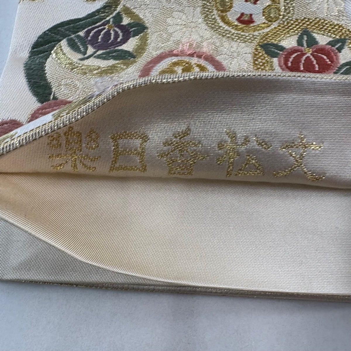 袋帯とは女性用の主にフォーマル用の帯で第一礼装として着用されることが多く、形状は表地にのみ柄があり裏地は無地になるように袋状に織って作成されたため袋帯という名が付きました。 帯を締める際にはおめでたいことが重なりますようにという願いが込められている二重太鼓や成人式の際に振袖に見かけるふくら雀や文庫結びなどの変わり結びを用いて着用します。