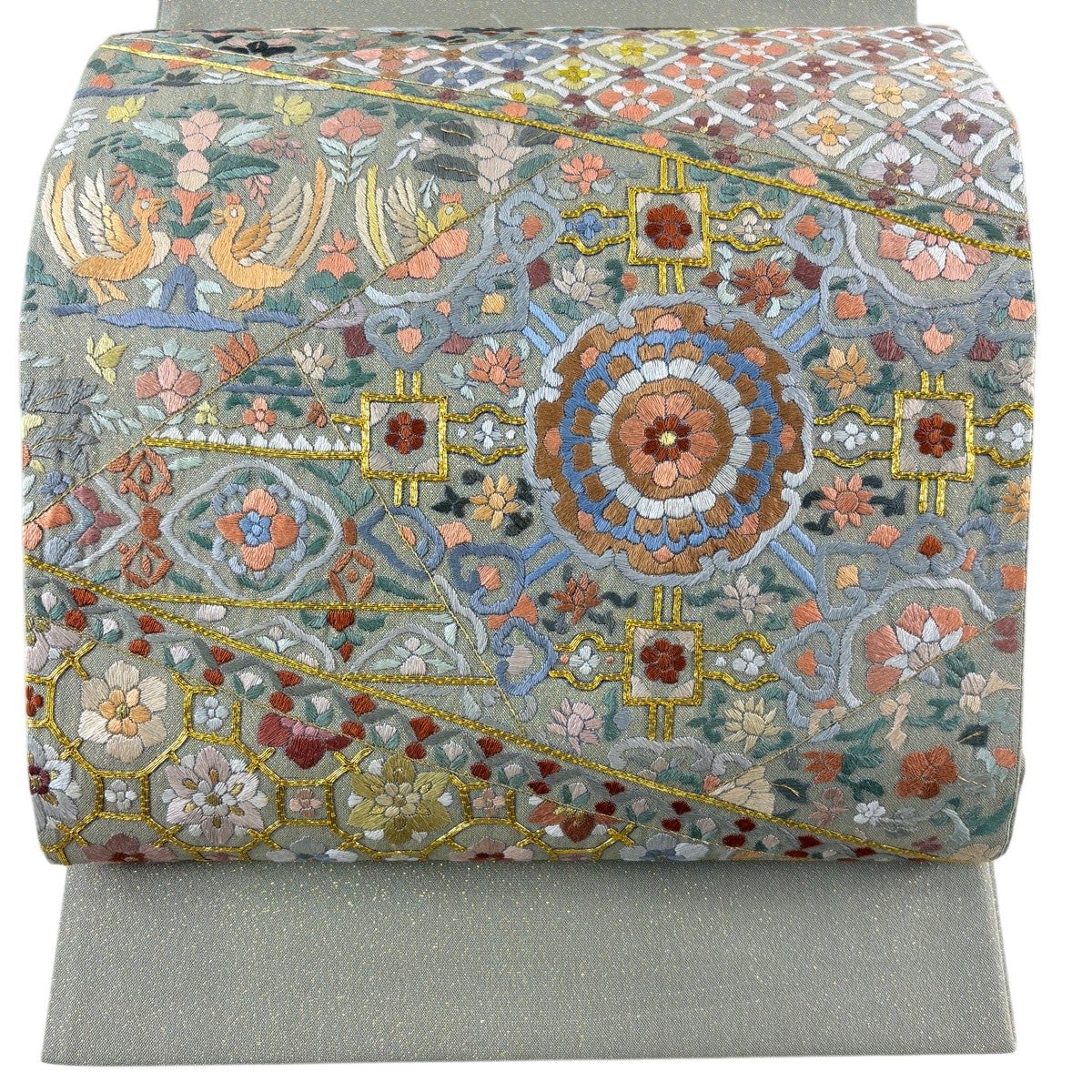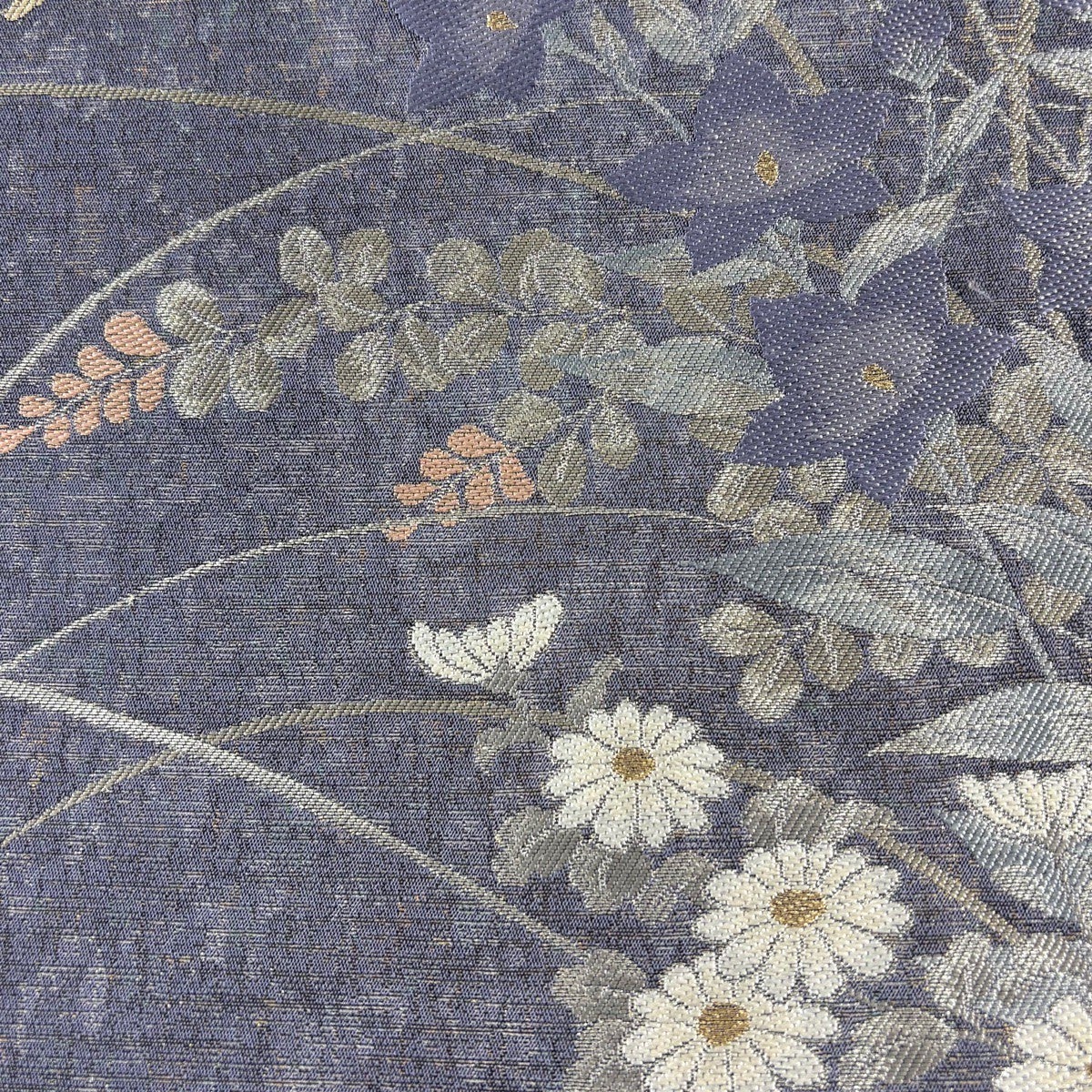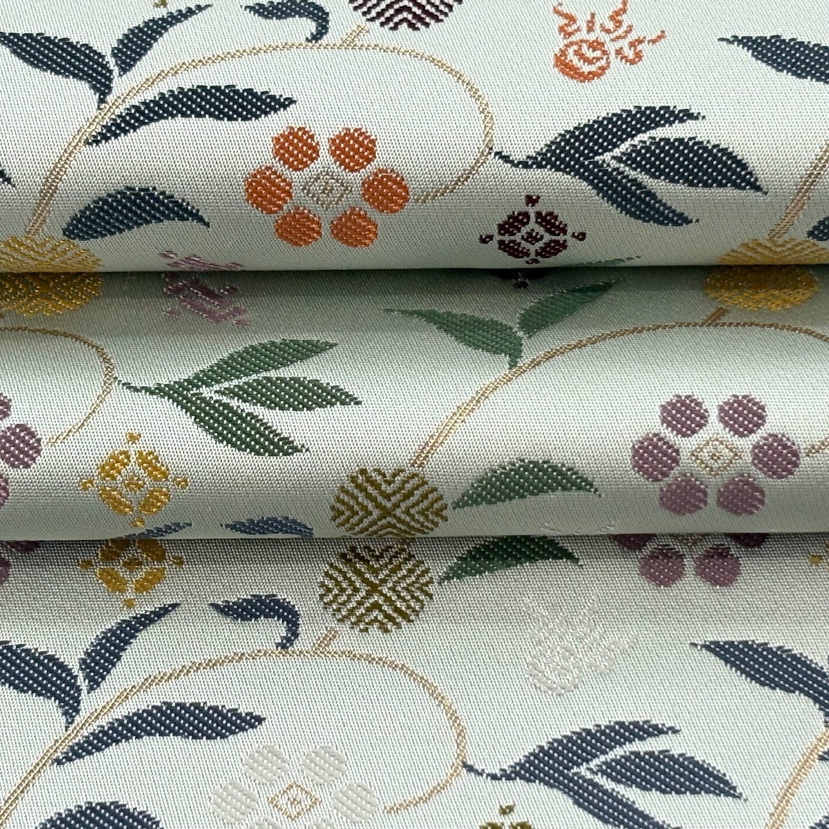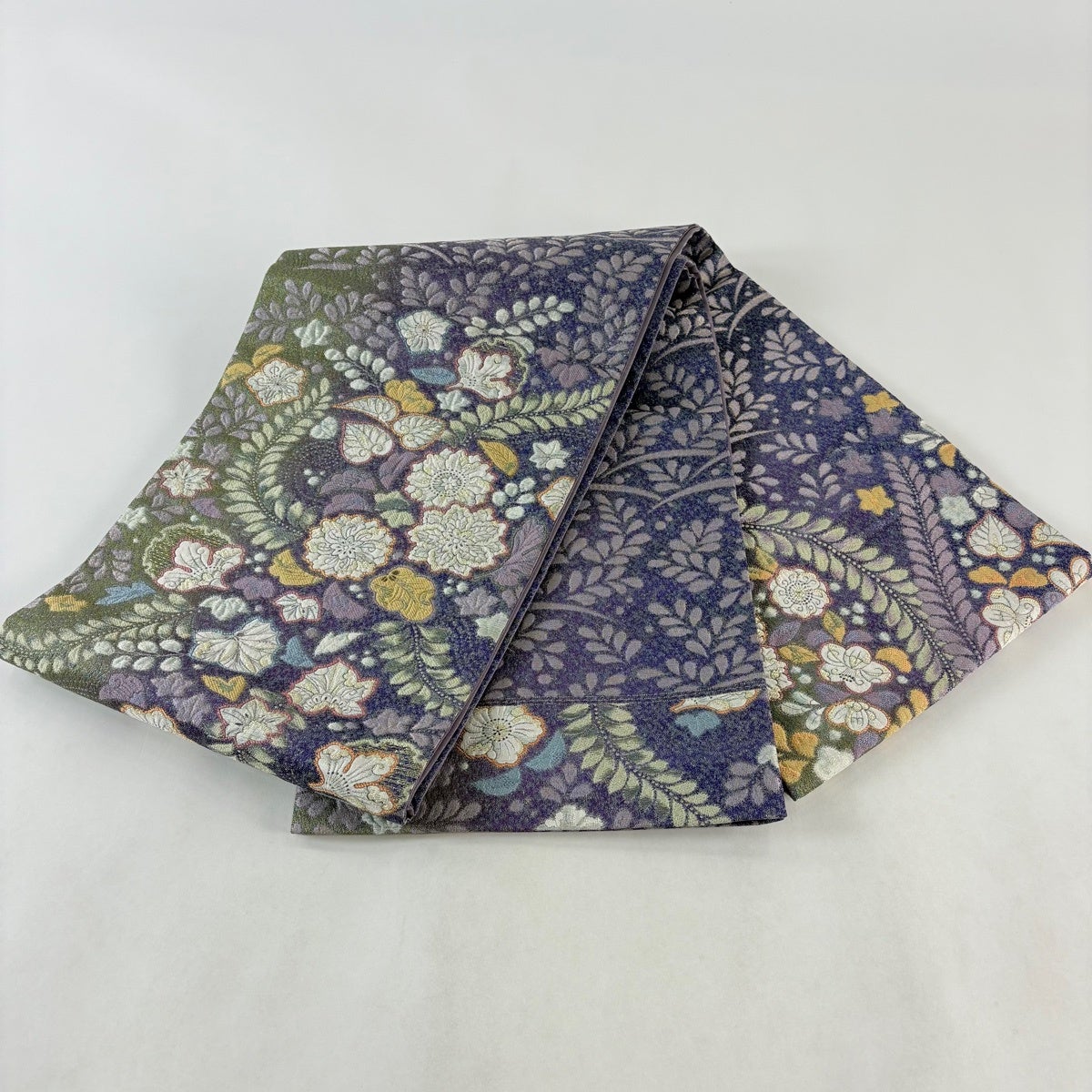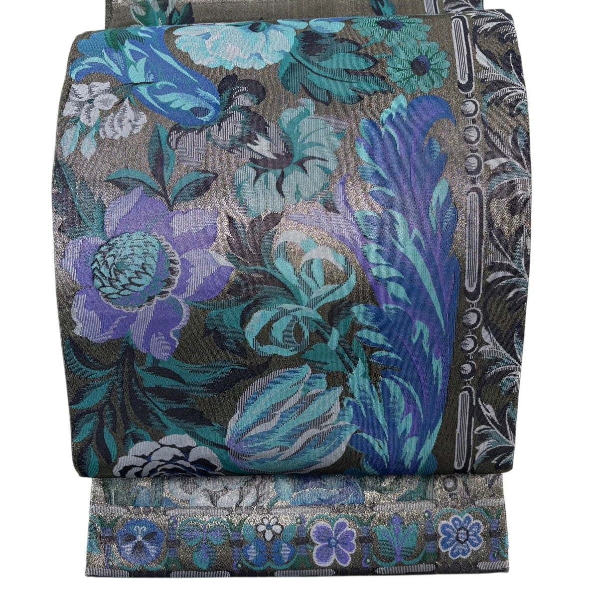 袋帯とは女性用の主にフォーマル用の帯で第一礼装として着用されることが多く、形状は表地にのみ柄があり裏地は無地になるように袋状に織って作成されたため袋帯という名が付きました。 帯を締める際にはおめでたいことが重なりますようにという願いが込められている二重太鼓や成人式の際に振袖に見かけるふくら雀や文庫結びなどの変わり結びを用いて着用します。