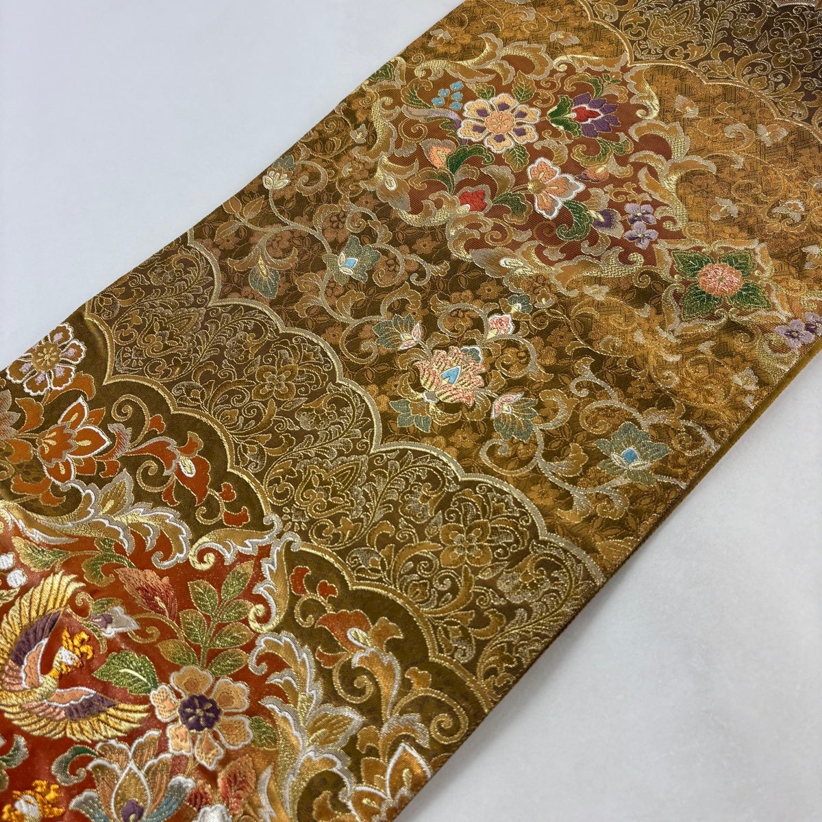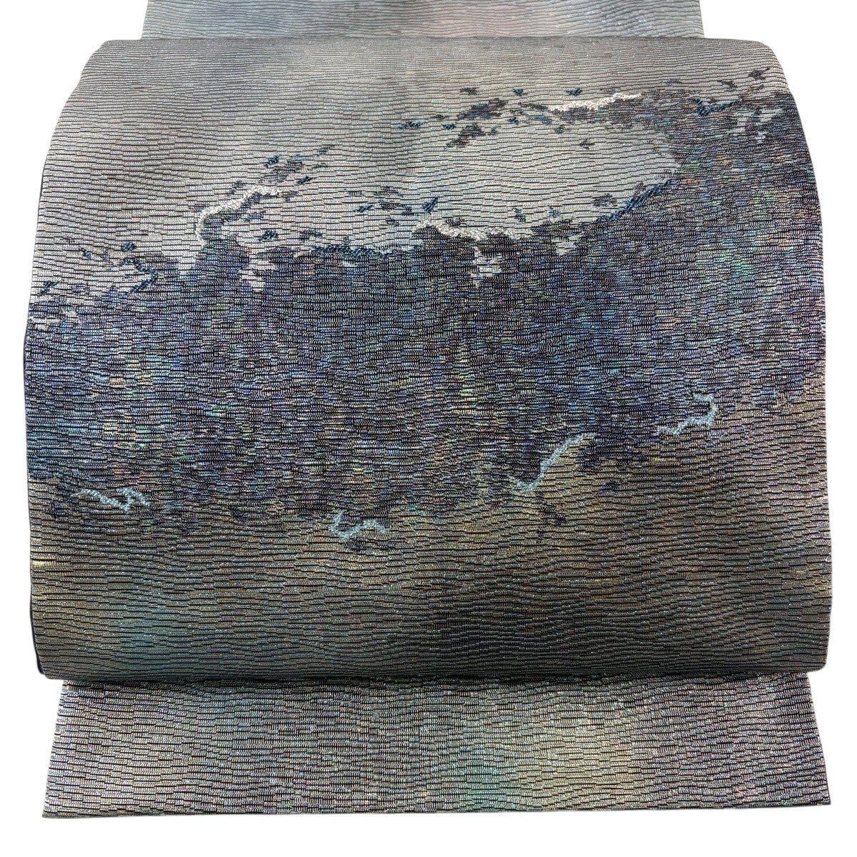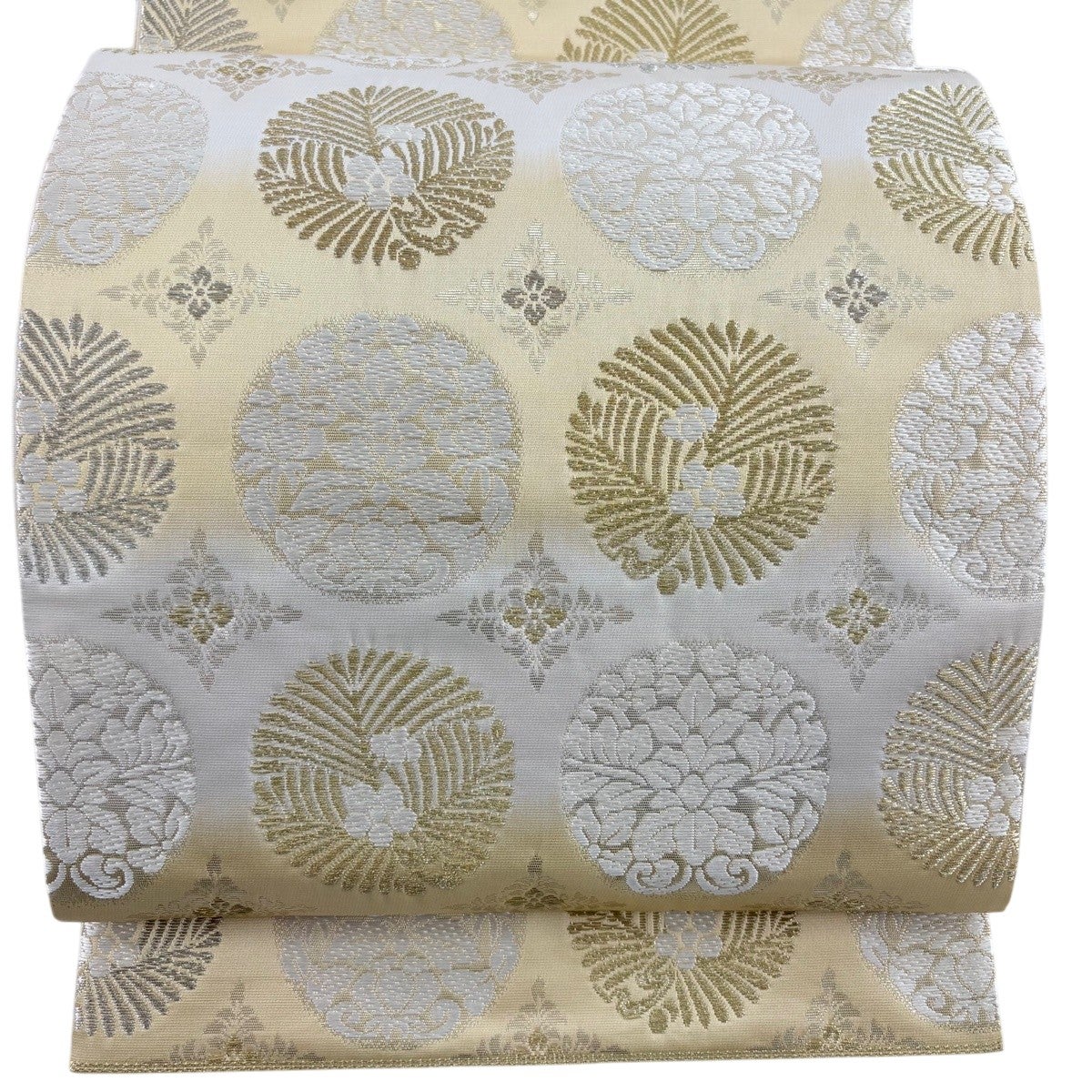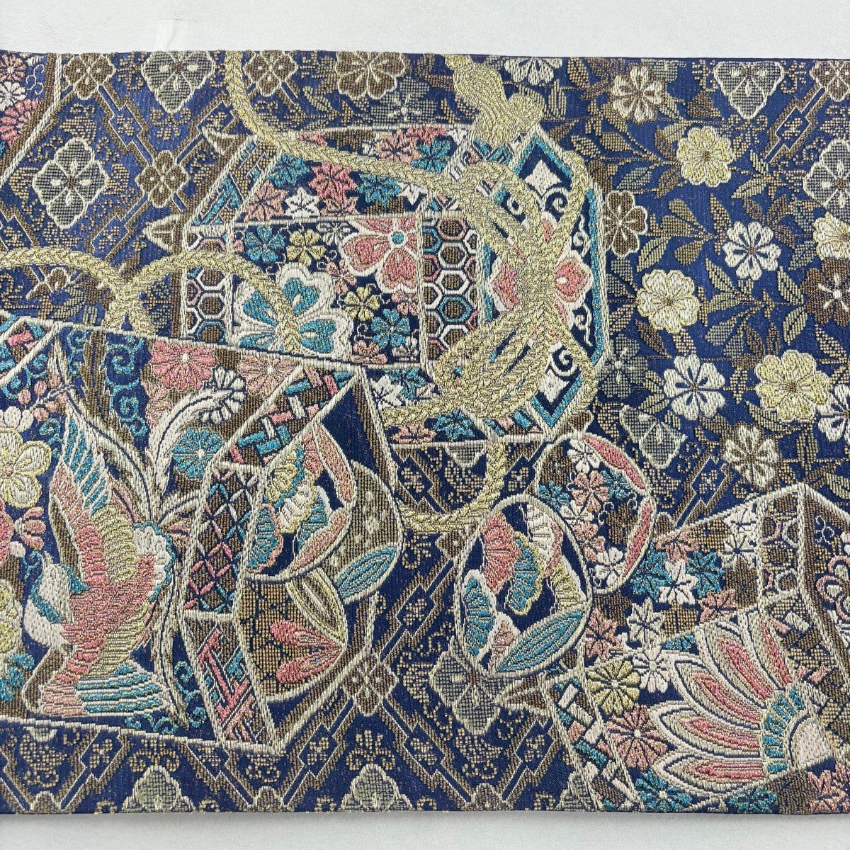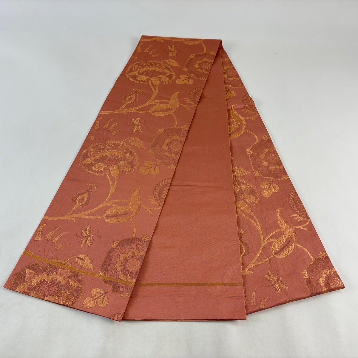 袋帯とは女性用の主にフォーマル用の帯で第一礼装として着用されることが多く、形状は表地にのみ柄があり裏地は無地になるように袋状に織って作成されたため袋帯という名が付きました。 帯を締める際にはおめでたいことが重なりますようにという願いが込められている二重太鼓や成人式の際に振袖に見かけるふくら雀や文庫結びなどの変わり結びを用いて着用します。