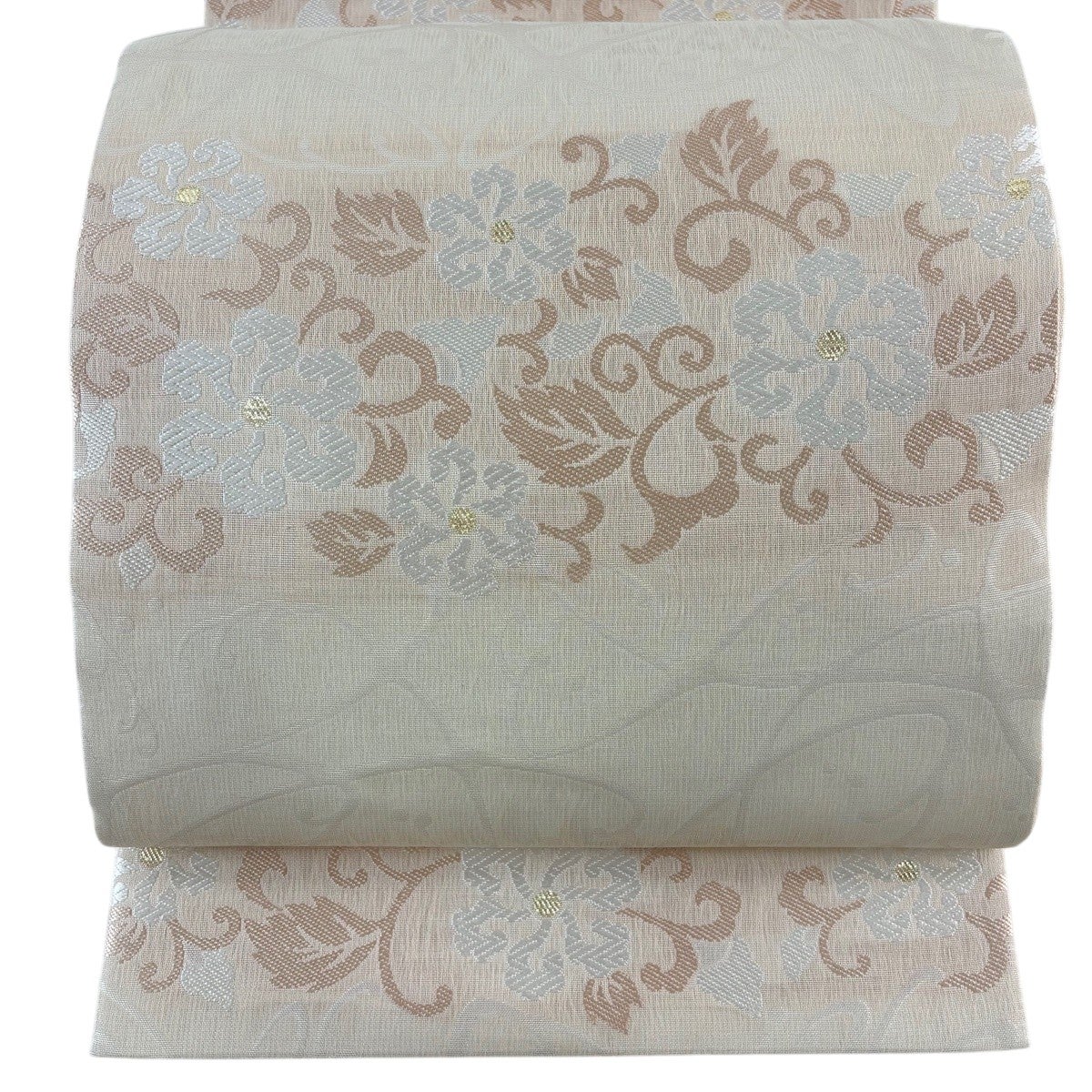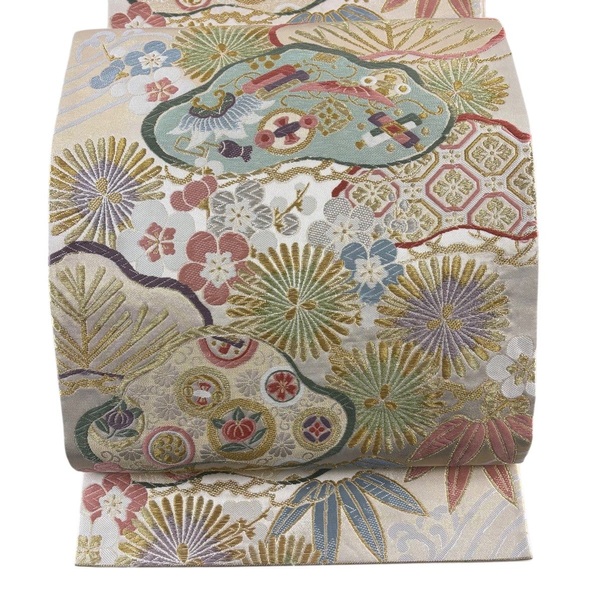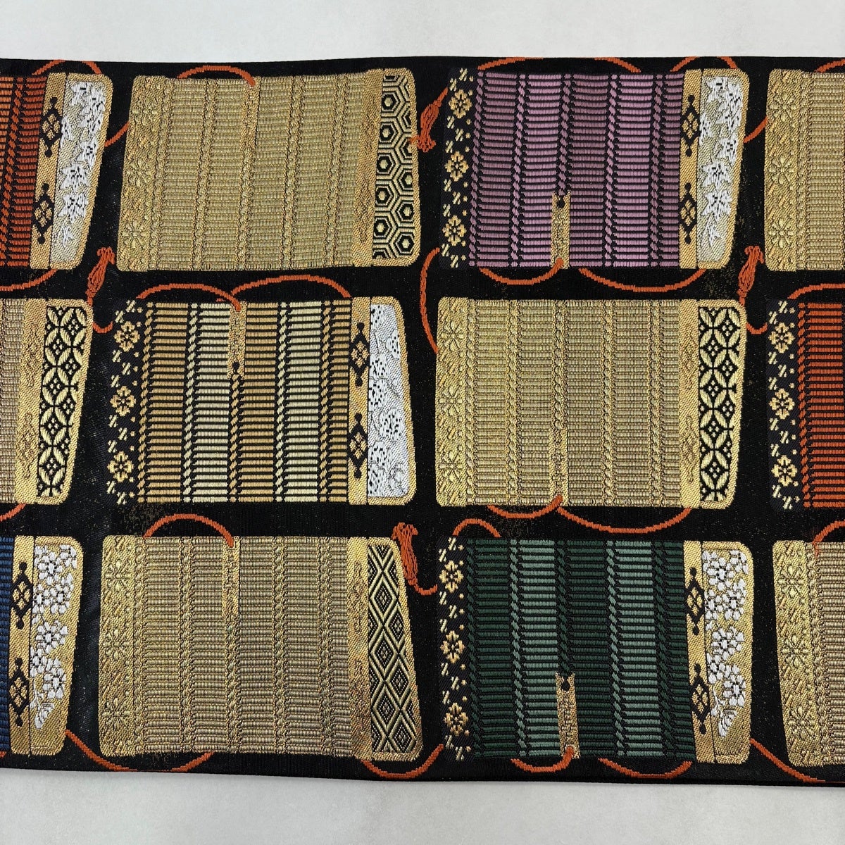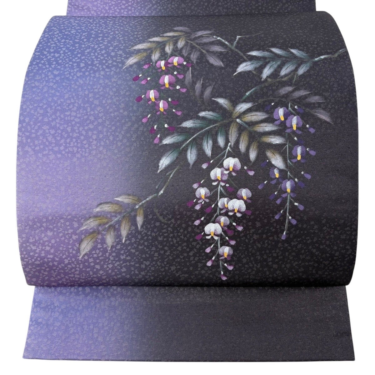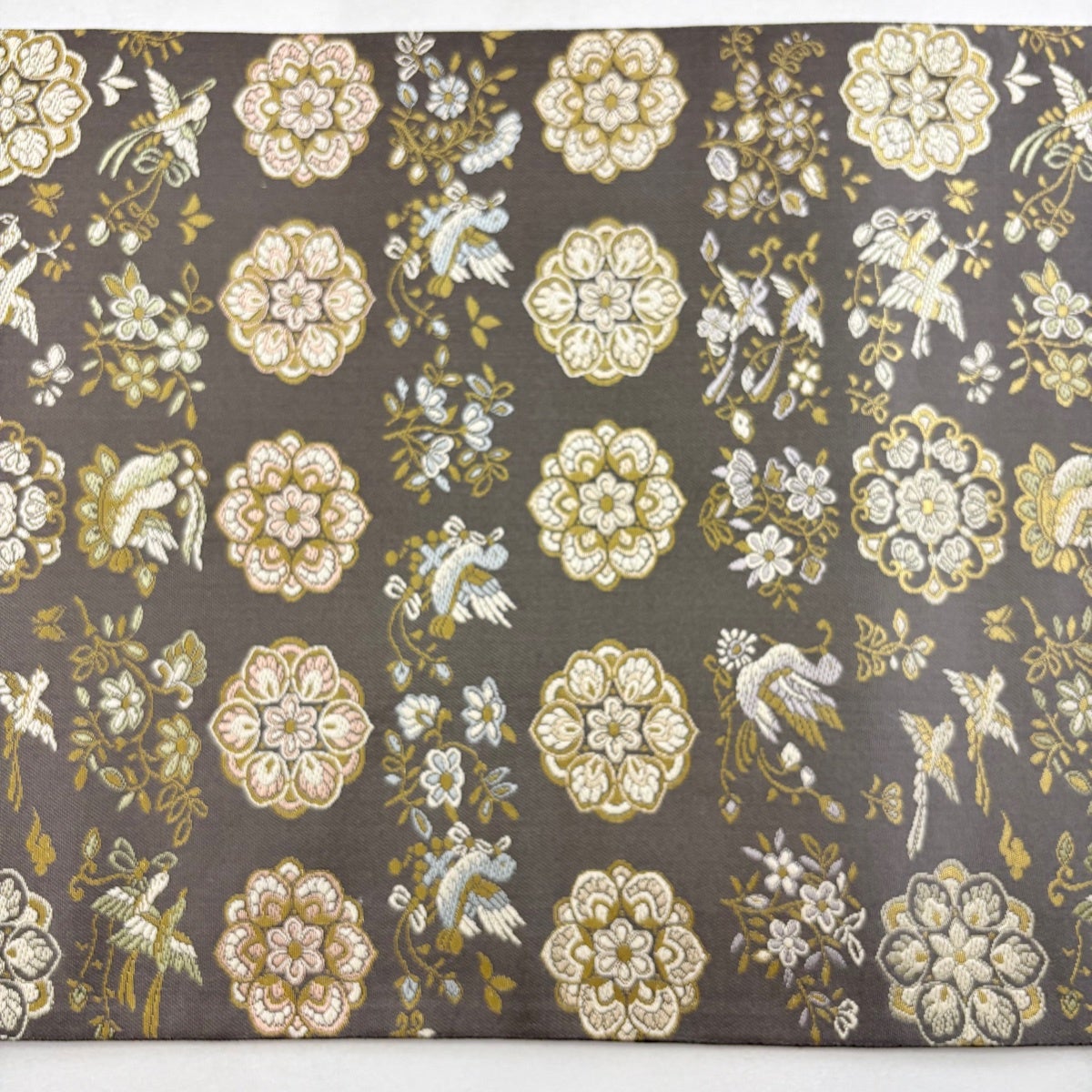 袋帯とは女性用の主にフォーマル用の帯で第一礼装として着用されることが多く、形状は表地にのみ柄があり裏地は無地になるように袋状に織って作成されたため袋帯という名が付きました。 帯を締める際にはおめでたいことが重なりますようにという願いが込められている二重太鼓や成人式の際に振袖に見かけるふくら雀や文庫結びなどの変わり結びを用いて着用します。