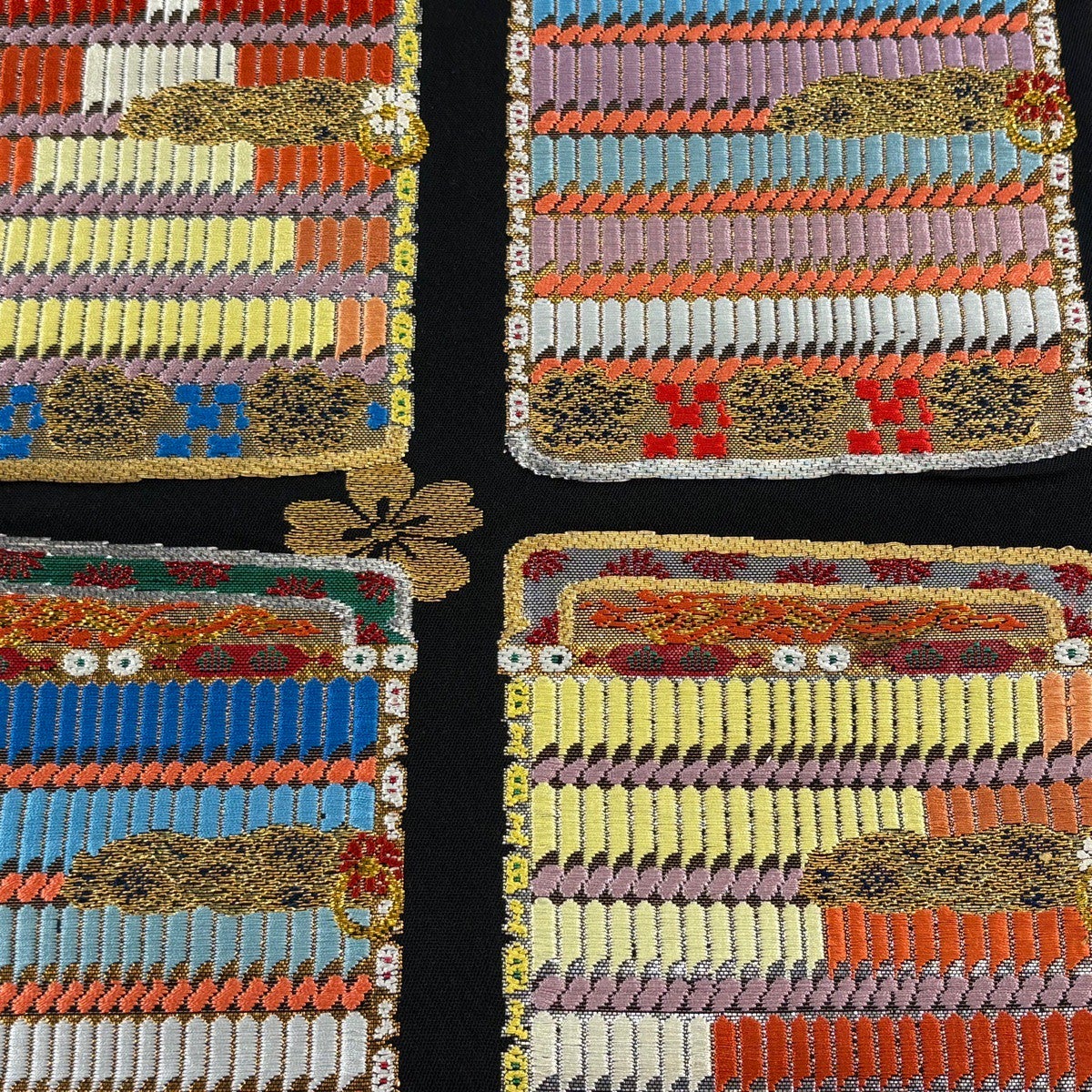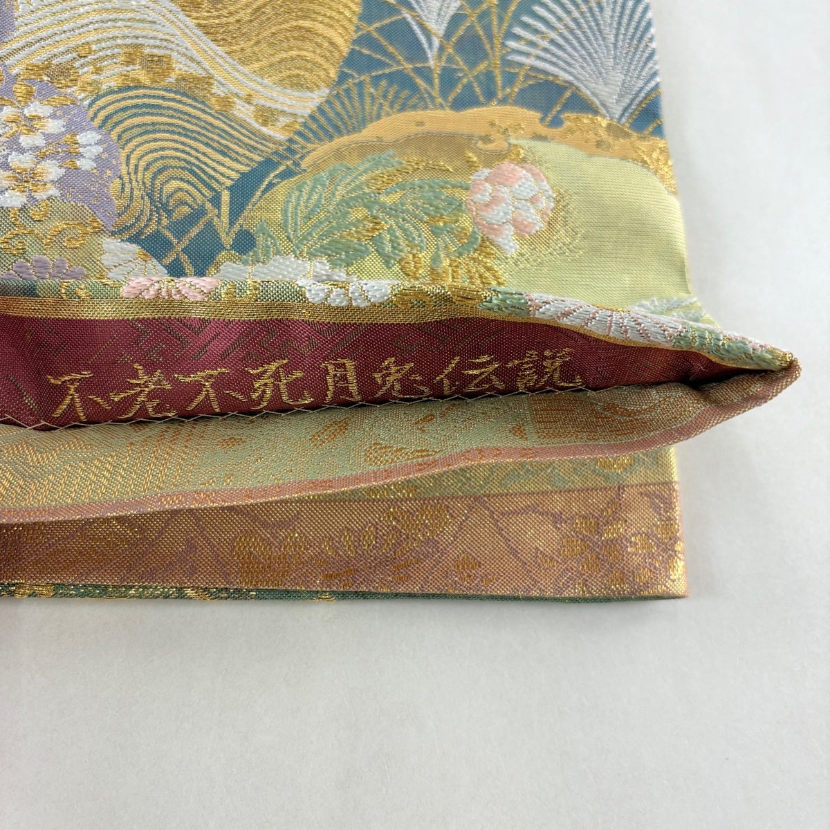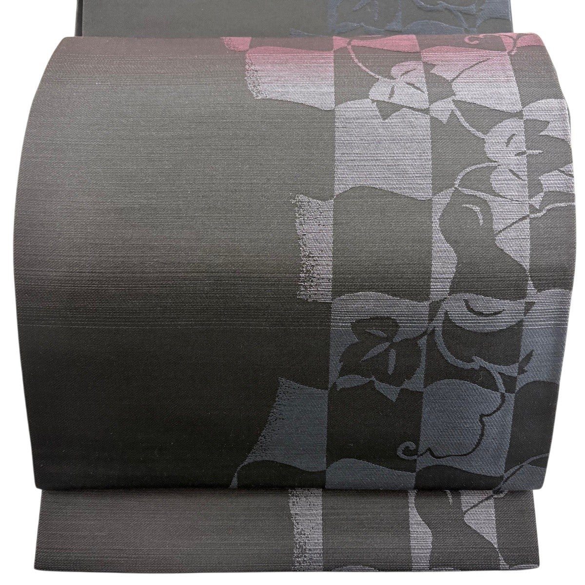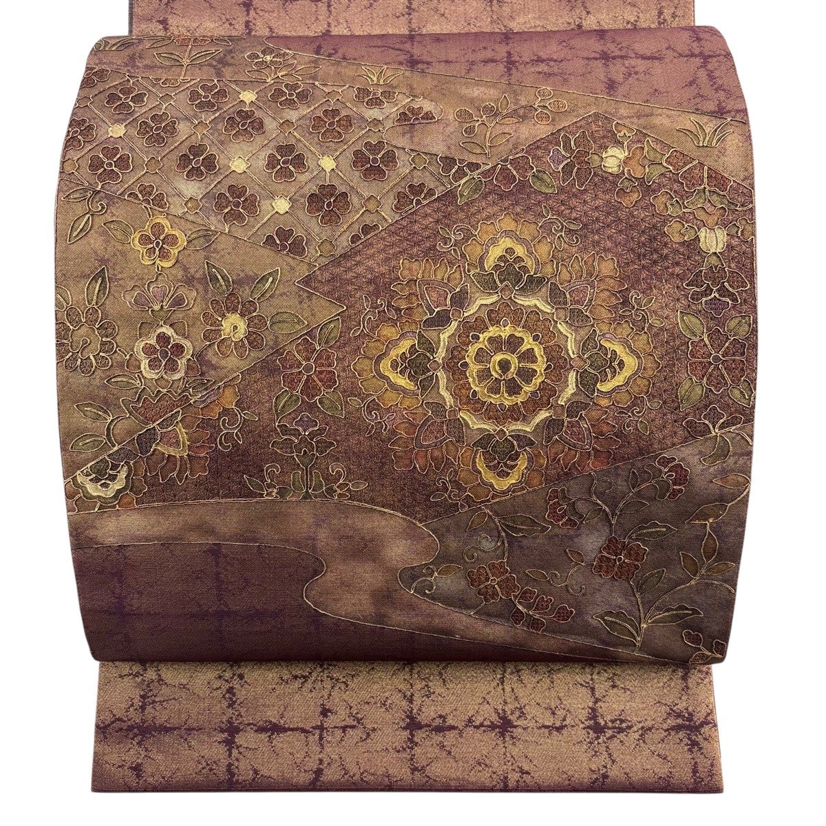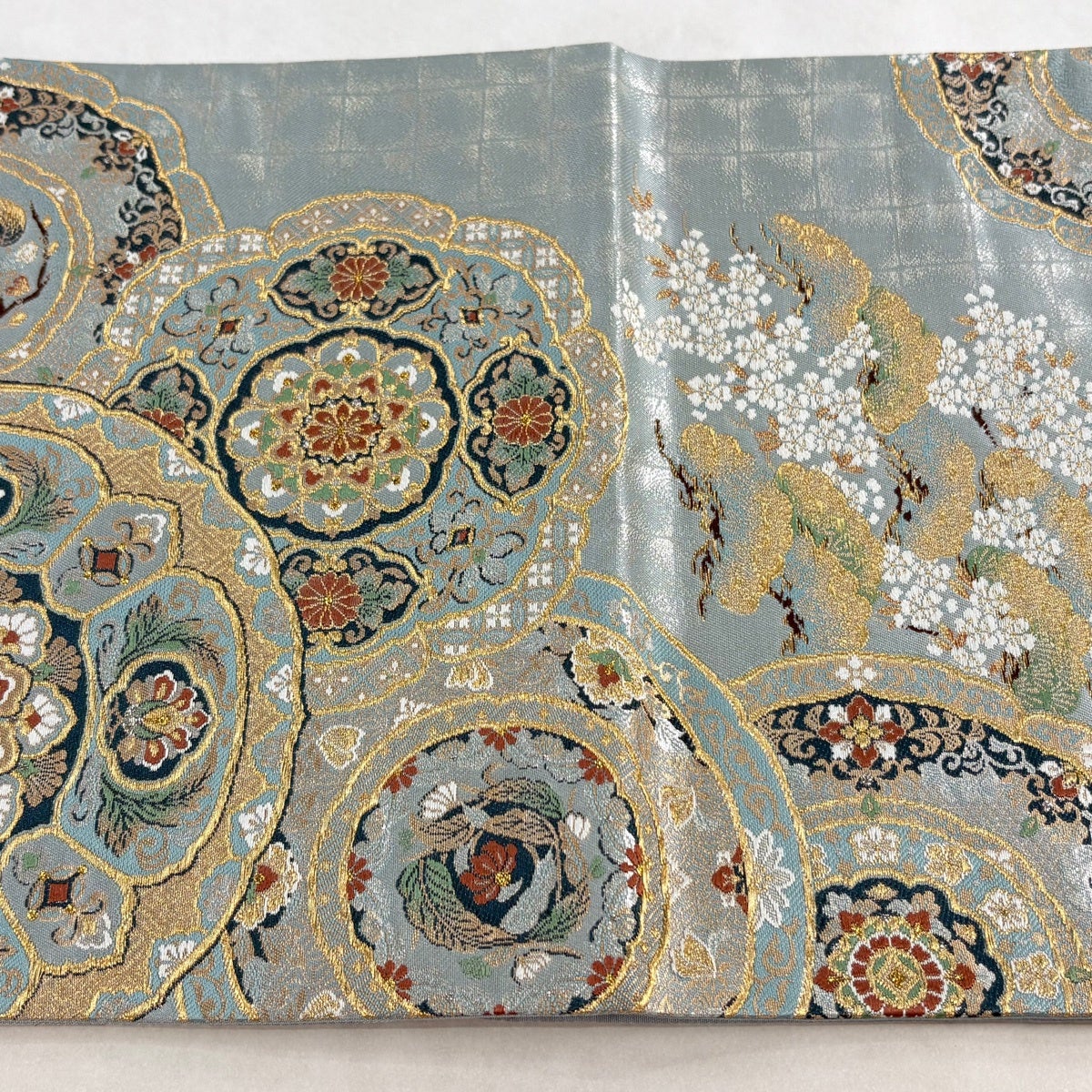袋帯とは女性用の主にフォーマル用の帯で第一礼装として着用されることが多く、形状は表地にのみ柄があり裏地は無地になるように袋状に織って作成されたため袋帯という名が付きました。 帯を締める際にはおめでたいことが重なりますようにという願いが込められている二重太鼓や成人式の際に振袖に見かけるふくら雀や文庫結びなどの変わり結びを用いて着用します。