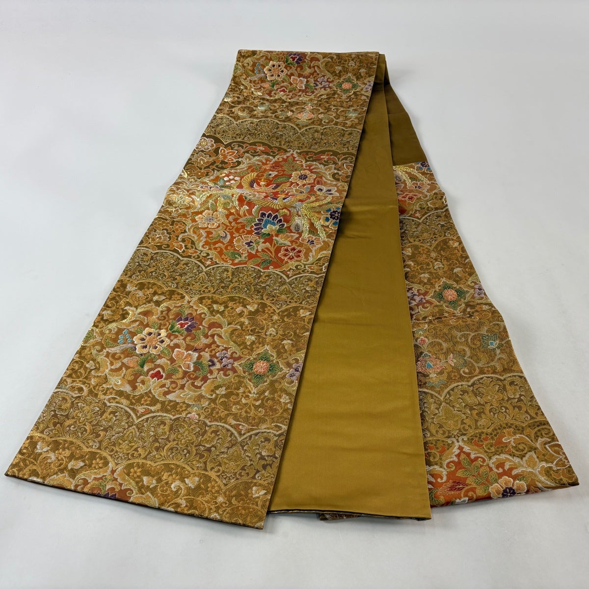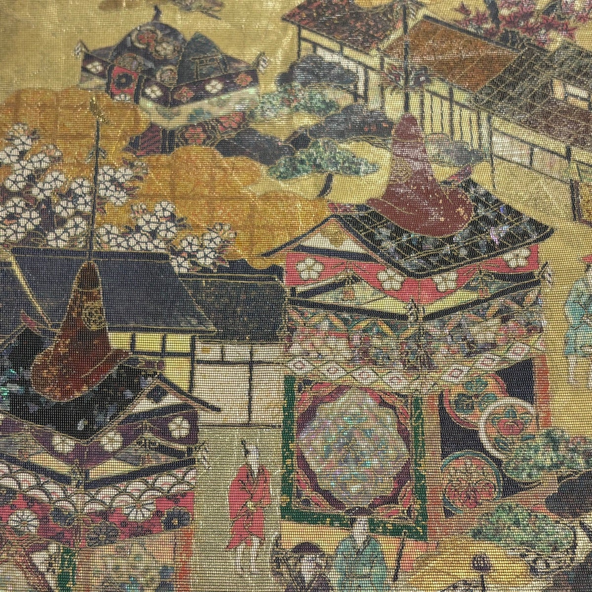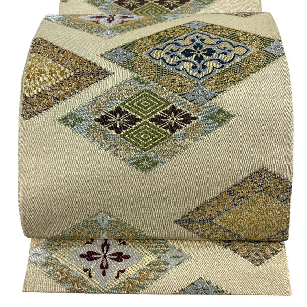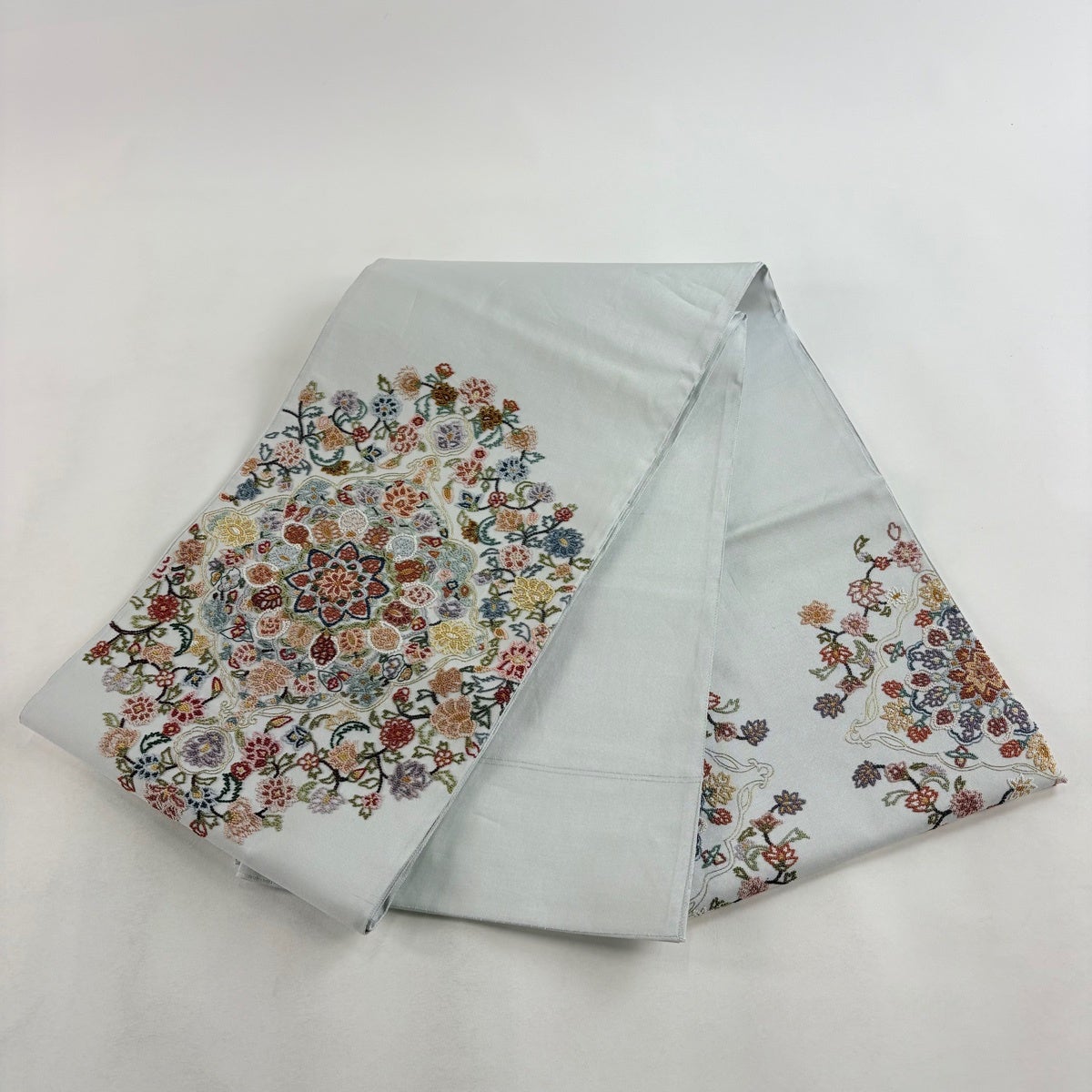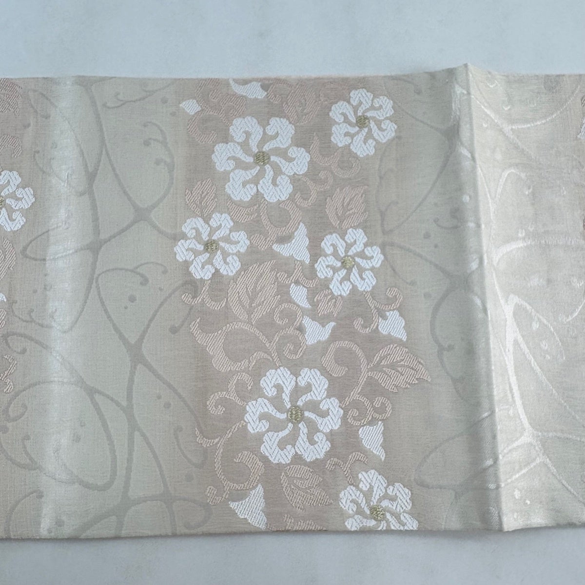 袋帯とは女性用の主にフォーマル用の帯で第一礼装として着用されることが多く、形状は表地にのみ柄があり裏地は無地になるように袋状に織って作成されたため袋帯という名が付きました。 帯を締める際にはおめでたいことが重なりますようにという願いが込められている二重太鼓や成人式の際に振袖に見かけるふくら雀や文庫結びなどの変わり結びを用いて着用します。