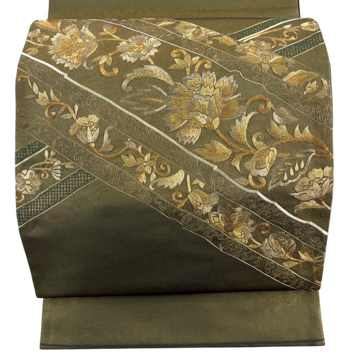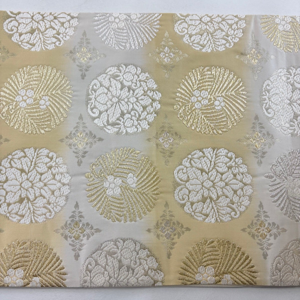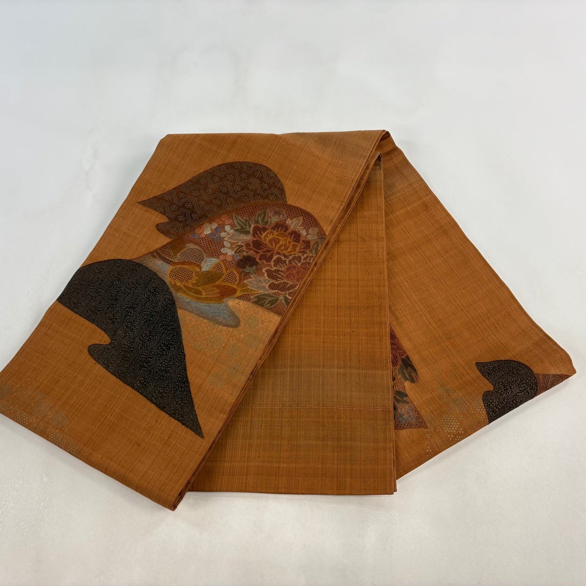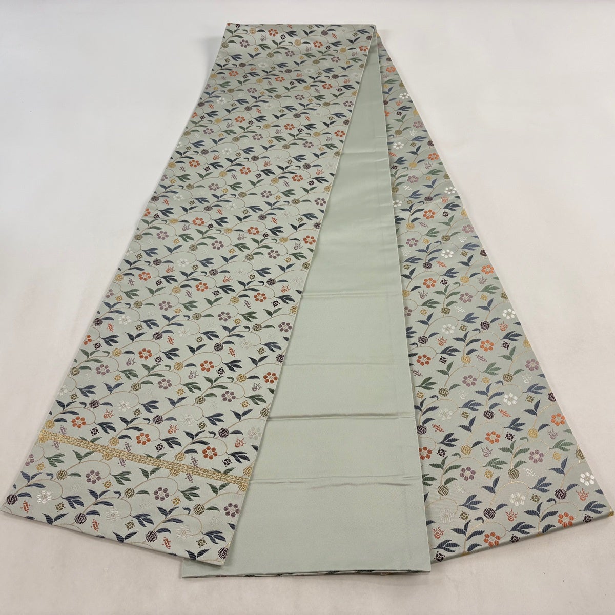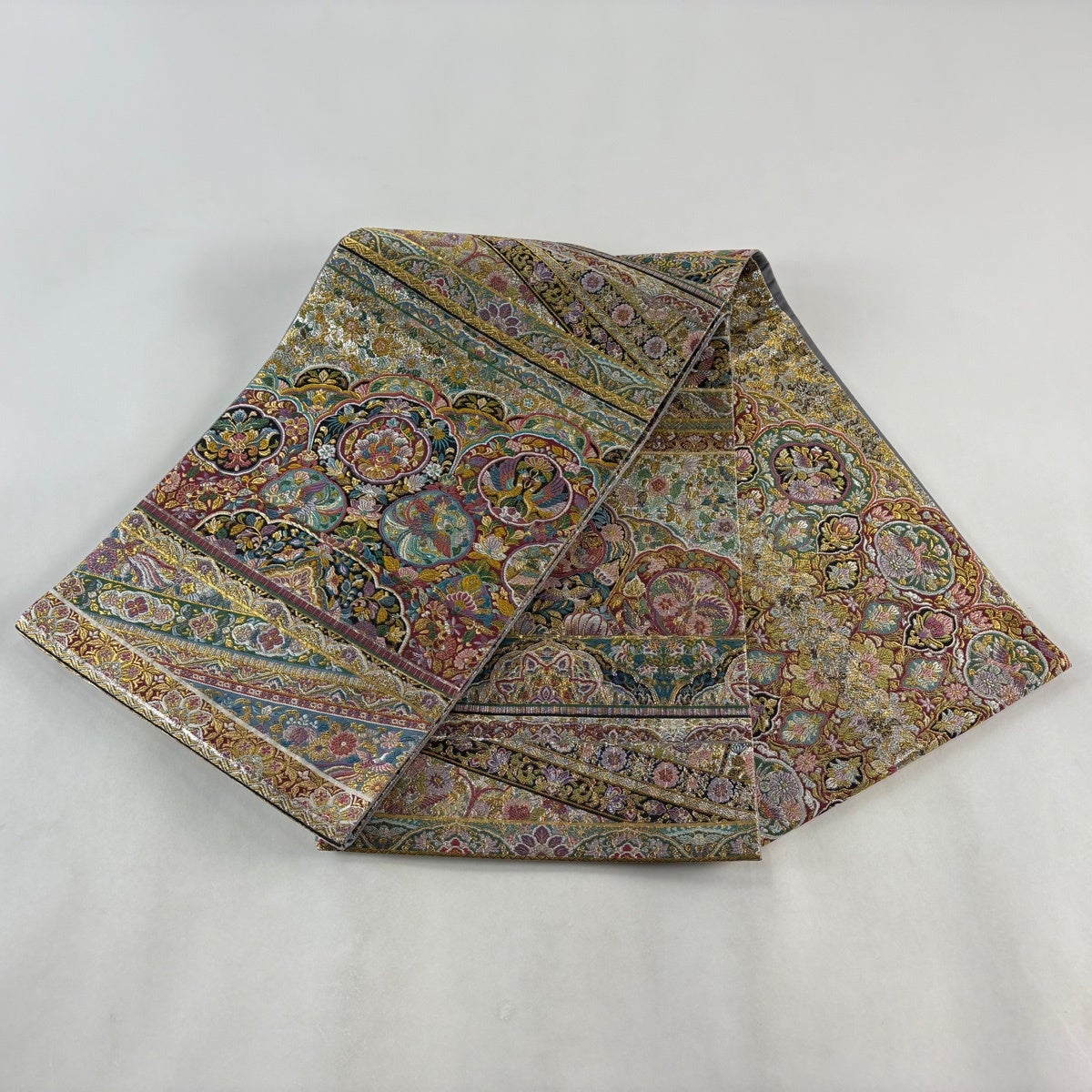袋帯とは女性用の主にフォーマル用の帯で第一礼装として着用されることが多く、形状は表地にのみ柄があり裏地は無地になるように袋状に織って作成されたため袋帯という名が付きました。 帯を締める際にはおめでたいことが重なりますようにという願いが込められている二重太鼓や成人式の際に振袖に見かけるふくら雀や文庫結びなどの変わり結びを用いて着用します。