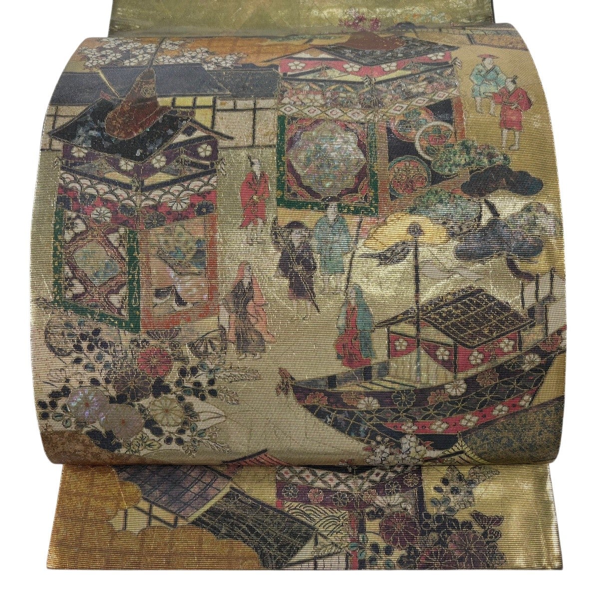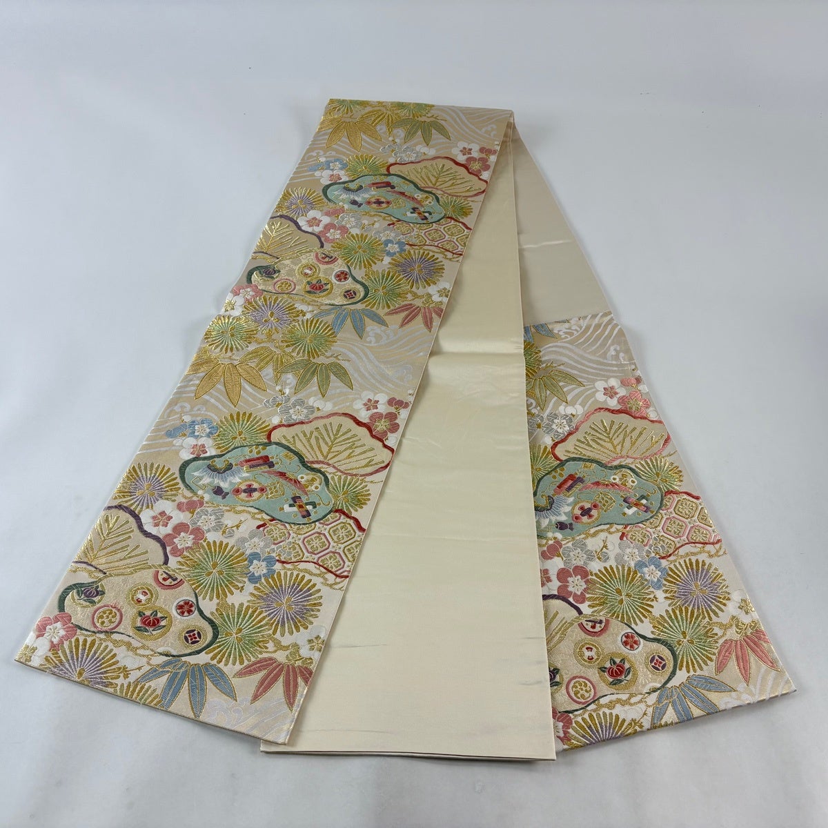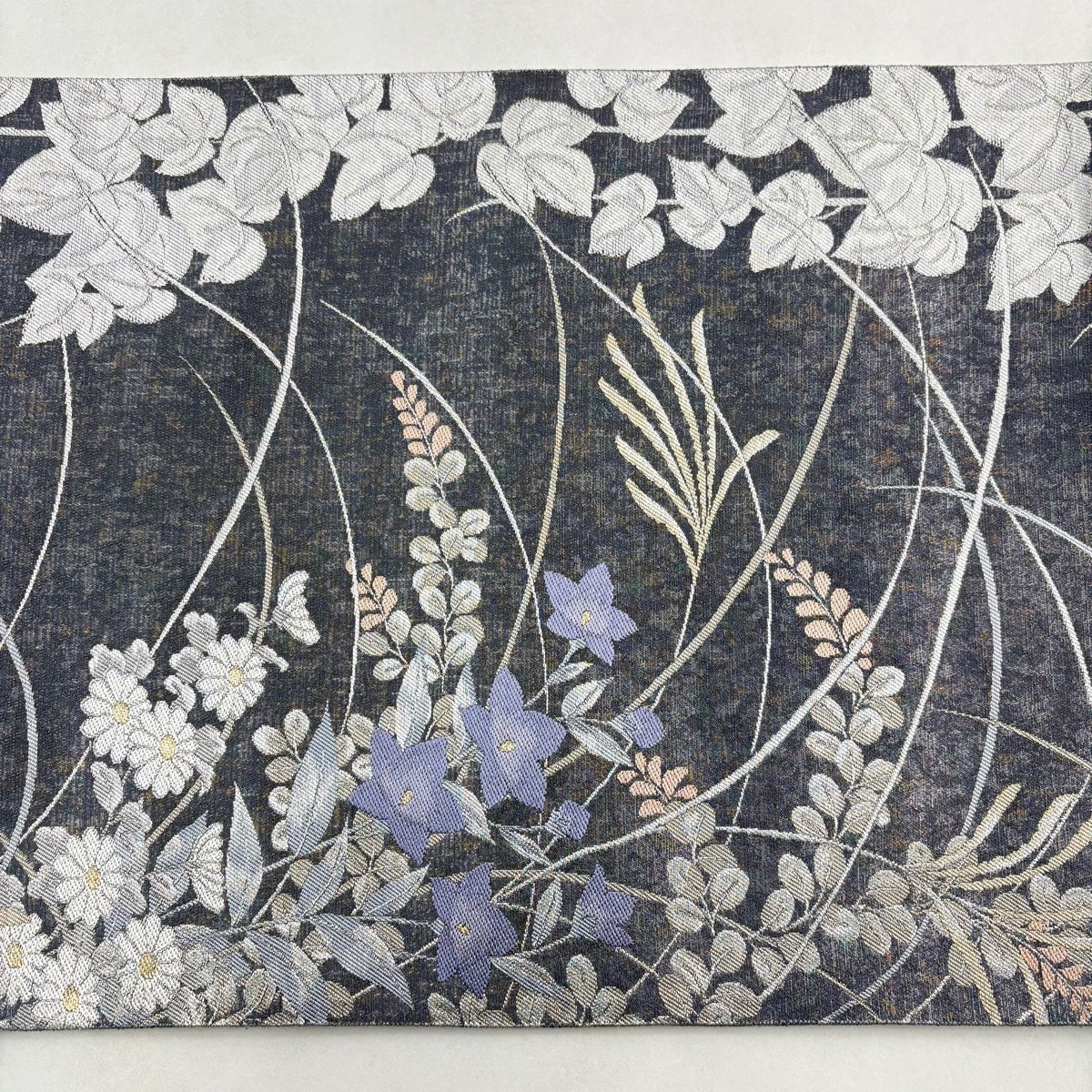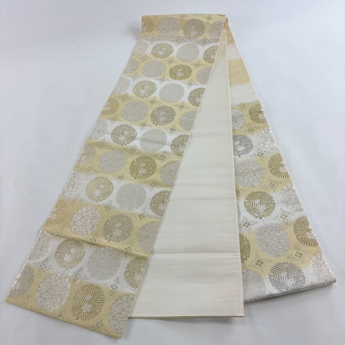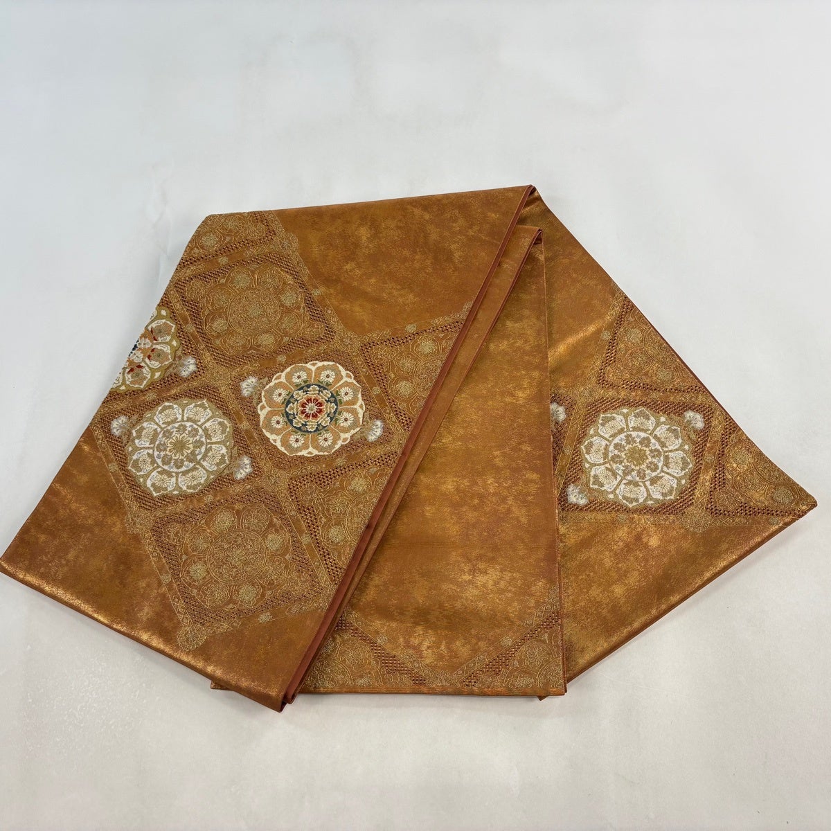 袋帯とは女性用の主にフォーマル用の帯で第一礼装として着用されることが多く、形状は表地にのみ柄があり裏地は無地になるように袋状に織って作成されたため袋帯という名が付きました。 帯を締める際にはおめでたいことが重なりますようにという願いが込められている二重太鼓や成人式の際に振袖に見かけるふくら雀や文庫結びなどの変わり結びを用いて着用します。