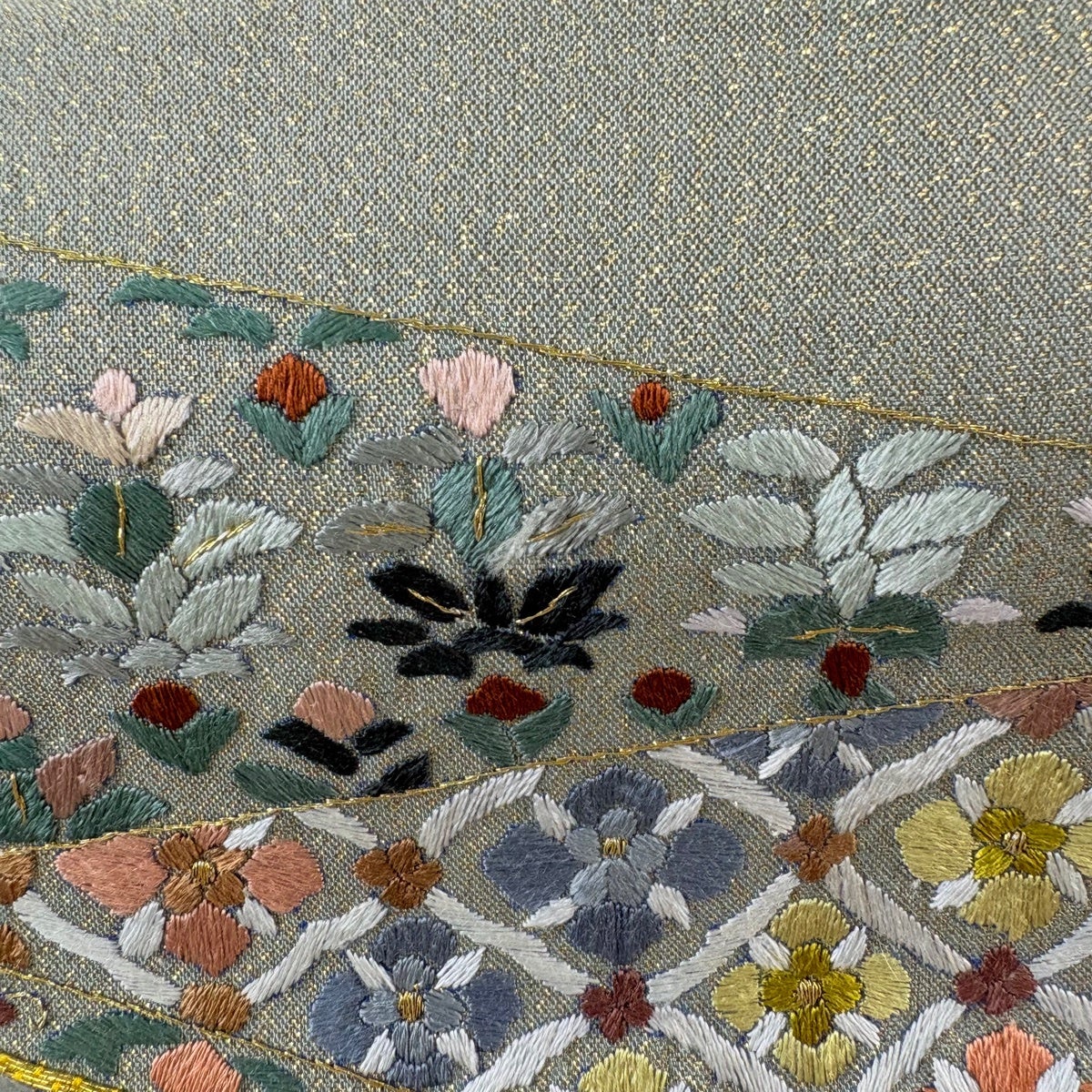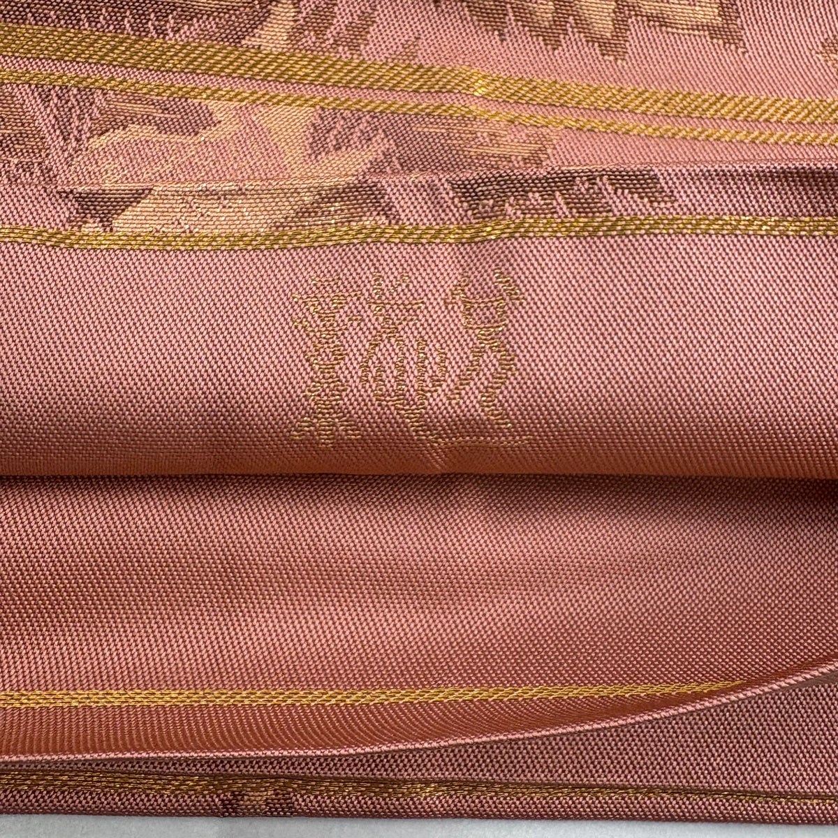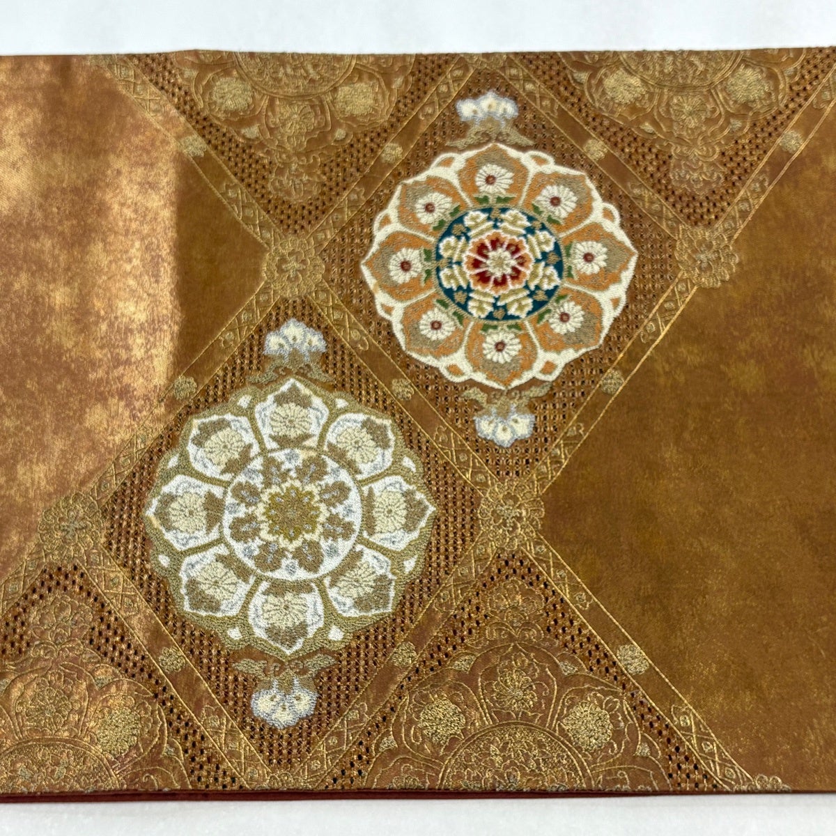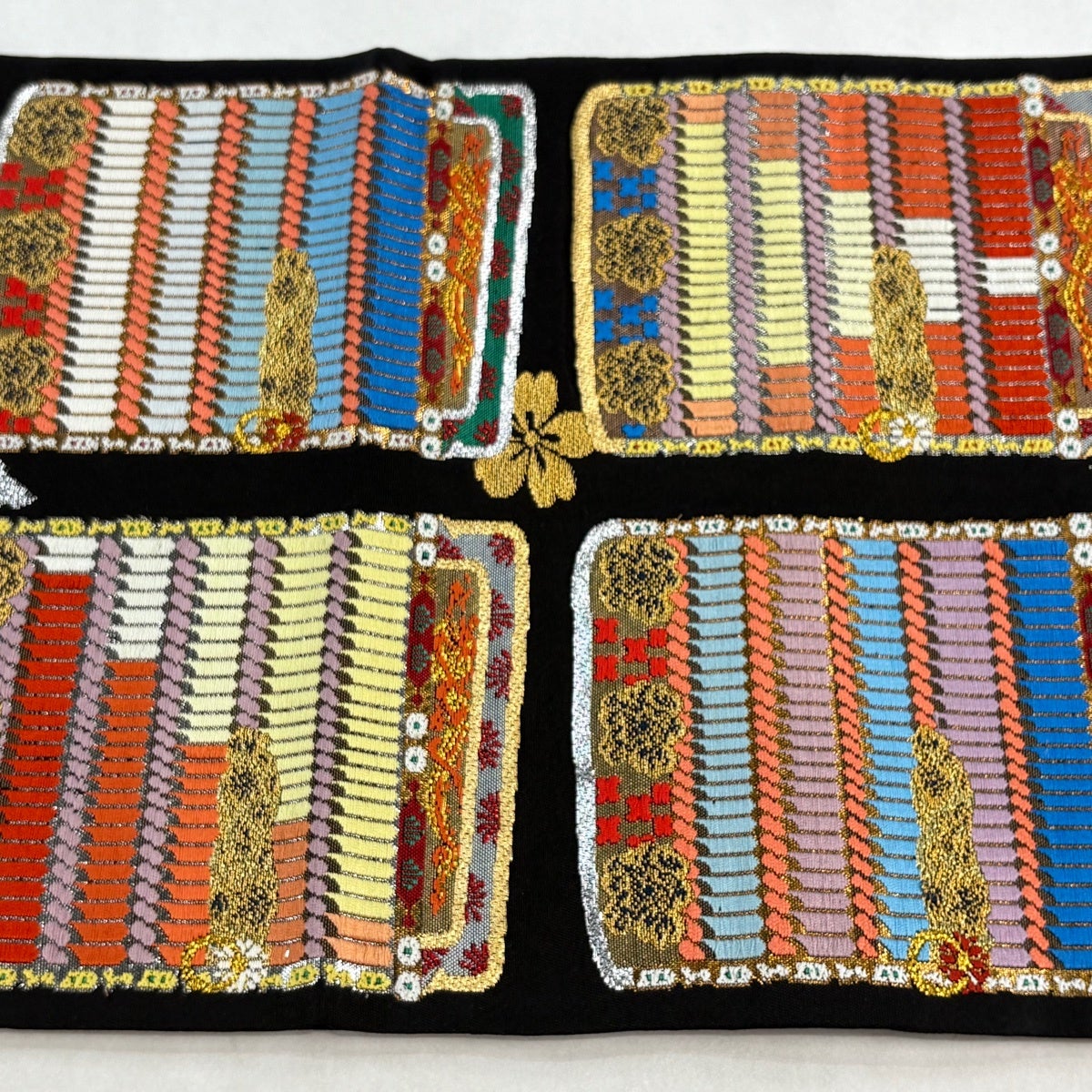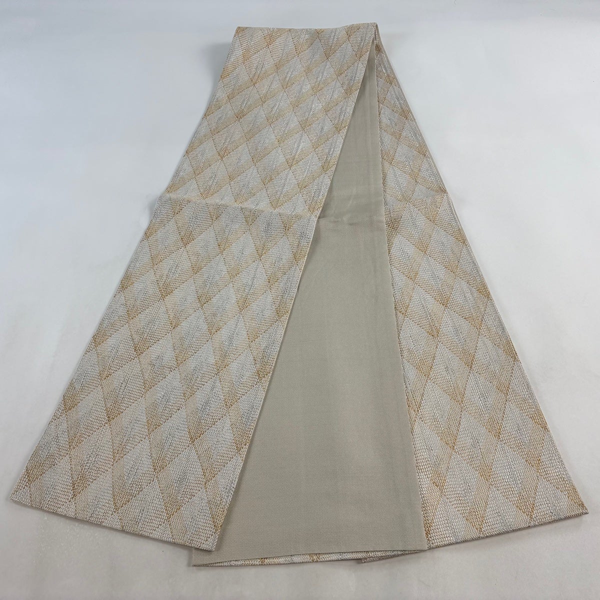 袋帯とは女性用の主にフォーマル用の帯で第一礼装として着用されることが多く、形状は表地にのみ柄があり裏地は無地になるように袋状に織って作成されたため袋帯という名が付きました。 帯を締める際にはおめでたいことが重なりますようにという願いが込められている二重太鼓や成人式の際に振袖に見かけるふくら雀や文庫結びなどの変わり結びを用いて着用します。