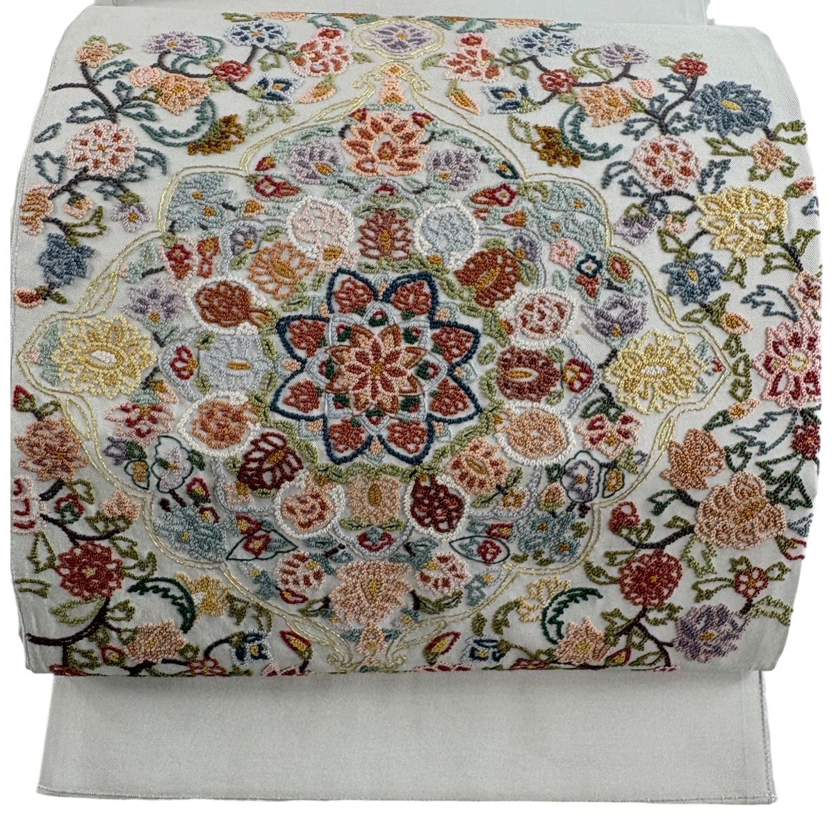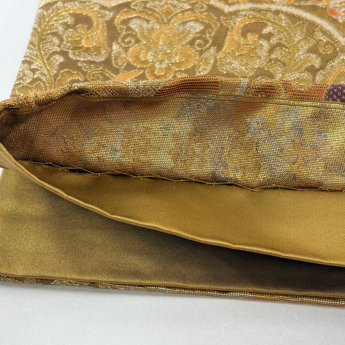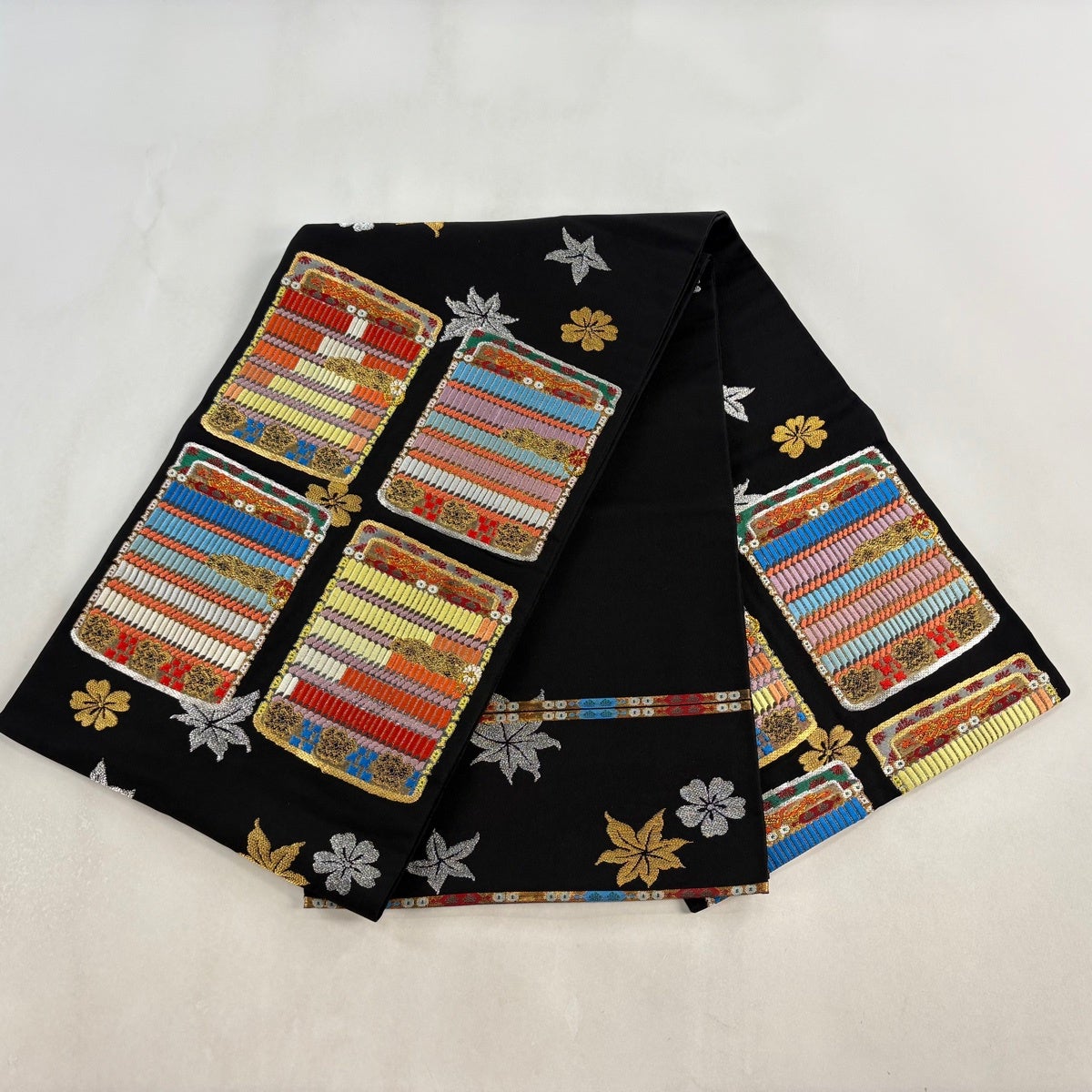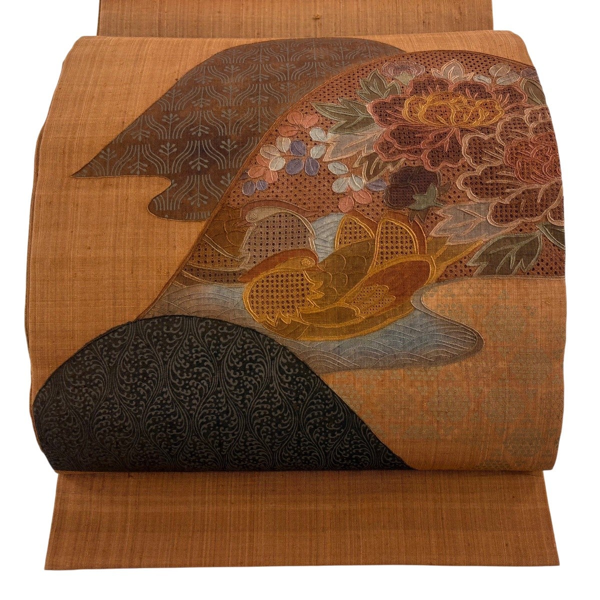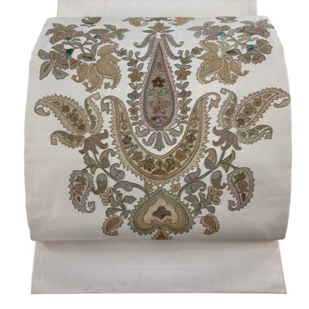 袋帯とは女性用の主にフォーマル用の帯で第一礼装として着用されることが多く、形状は表地にのみ柄があり裏地は無地になるように袋状に織って作成されたため袋帯という名が付きました。 帯を締める際にはおめでたいことが重なりますようにという願いが込められている二重太鼓や成人式の際に振袖に見かけるふくら雀や文庫結びなどの変わり結びを用いて着用します。