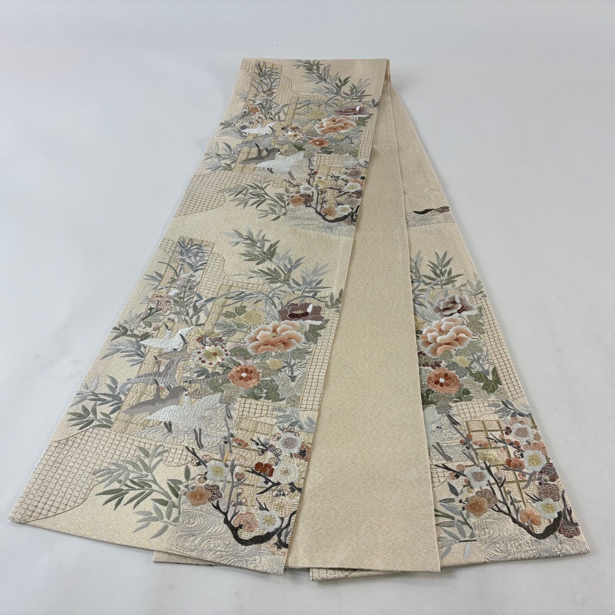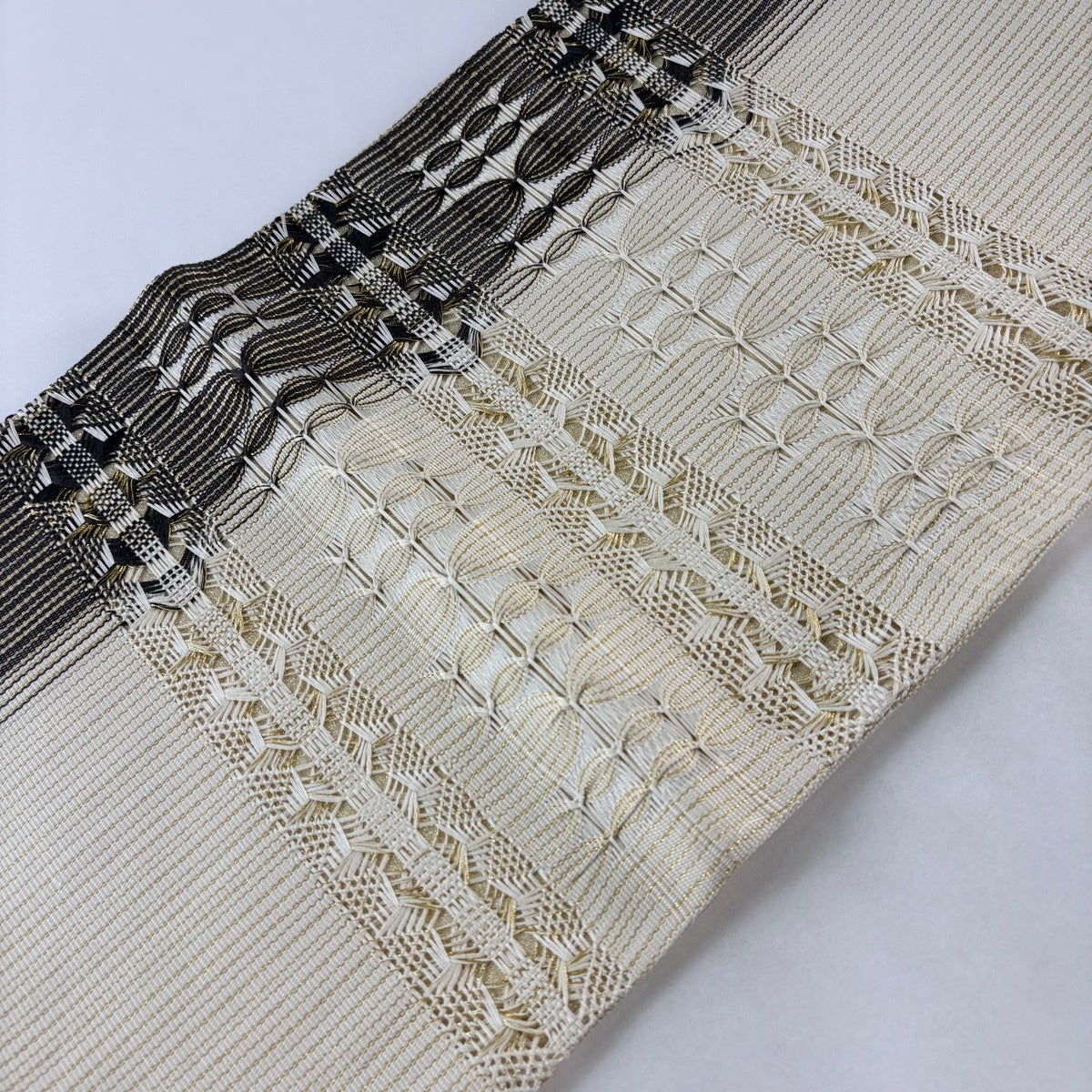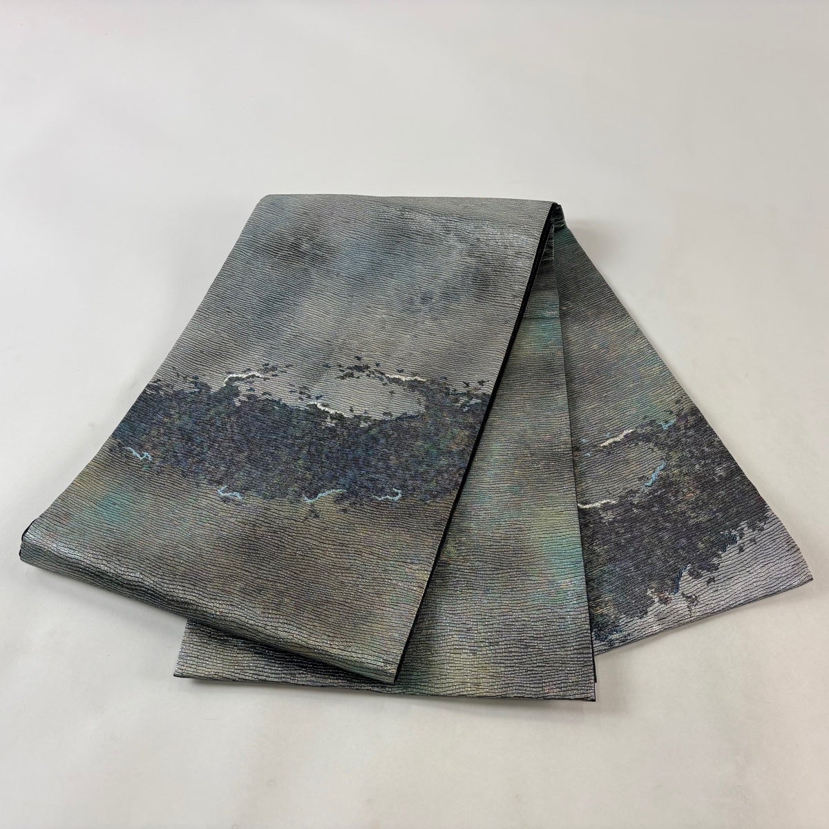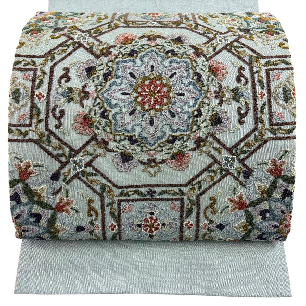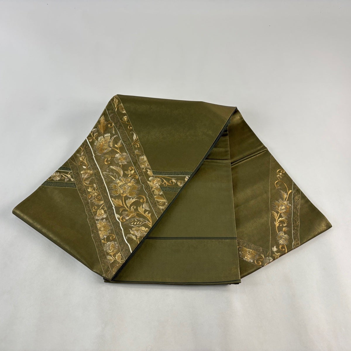 袋帯とは女性用の主にフォーマル用の帯で第一礼装として着用されることが多く、形状は表地にのみ柄があり裏地は無地になるように袋状に織って作成されたため袋帯という名が付きました。 帯を締める際にはおめでたいことが重なりますようにという願いが込められている二重太鼓や成人式の際に振袖に見かけるふくら雀や文庫結びなどの変わり結びを用いて着用します。
