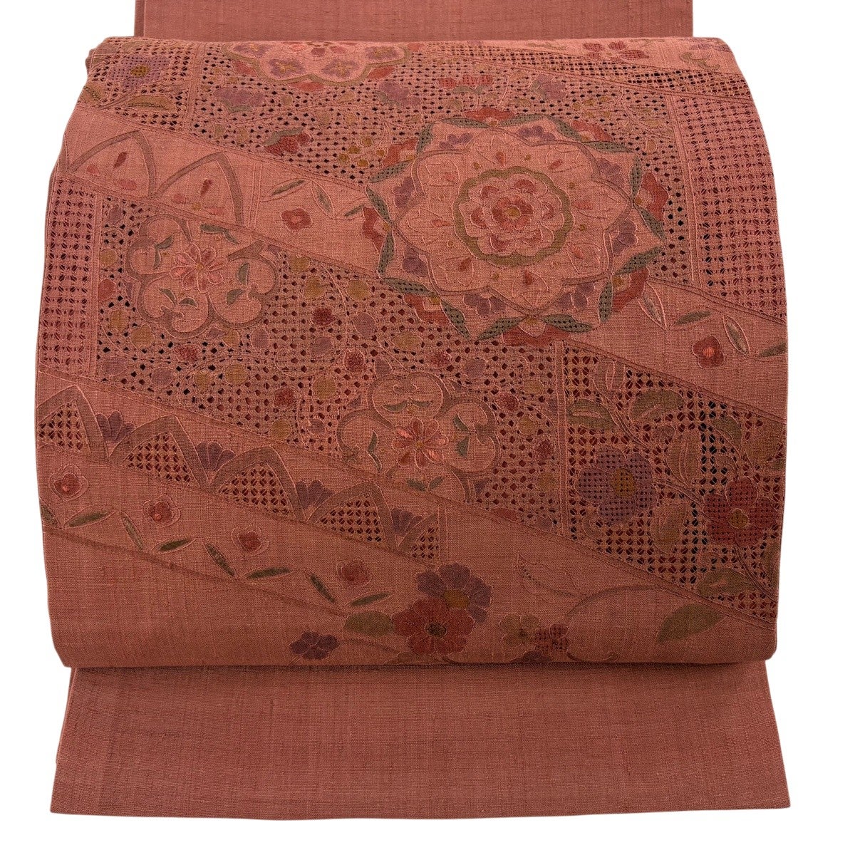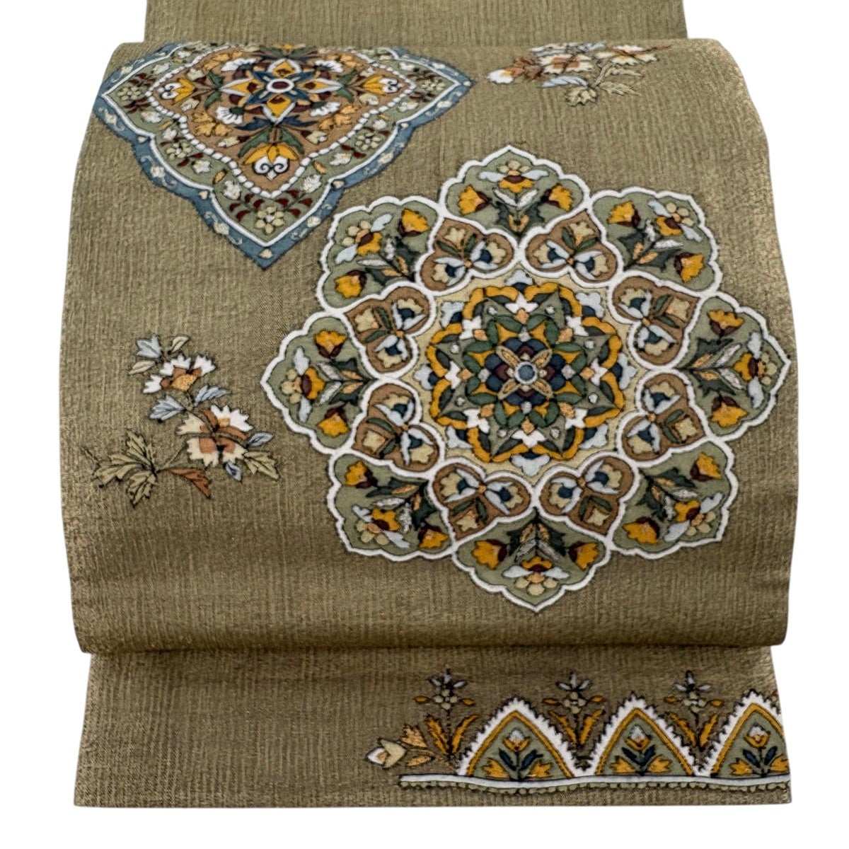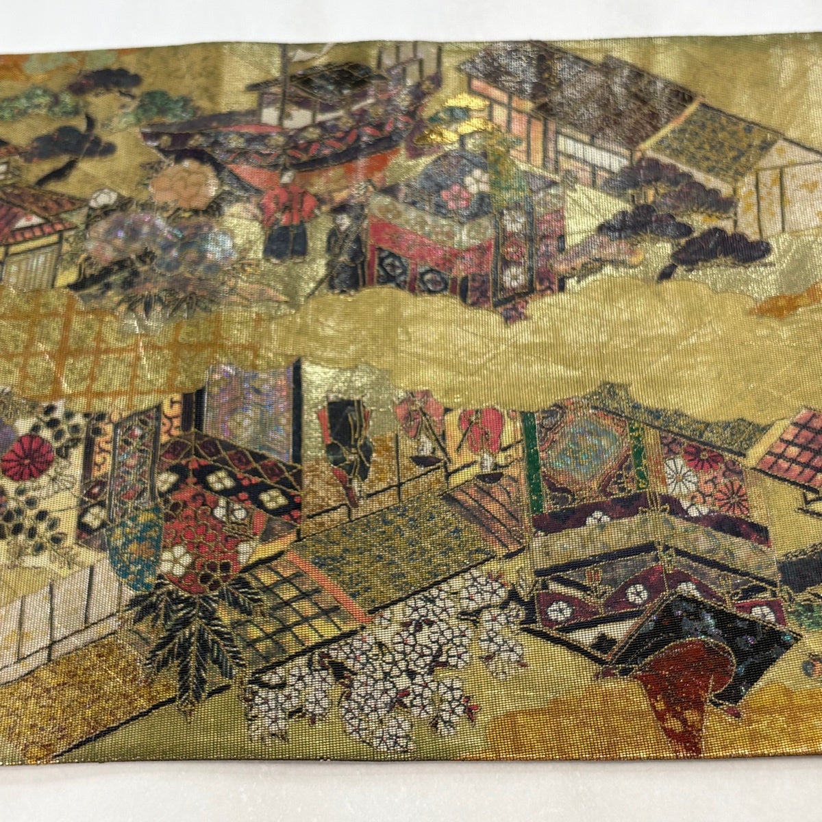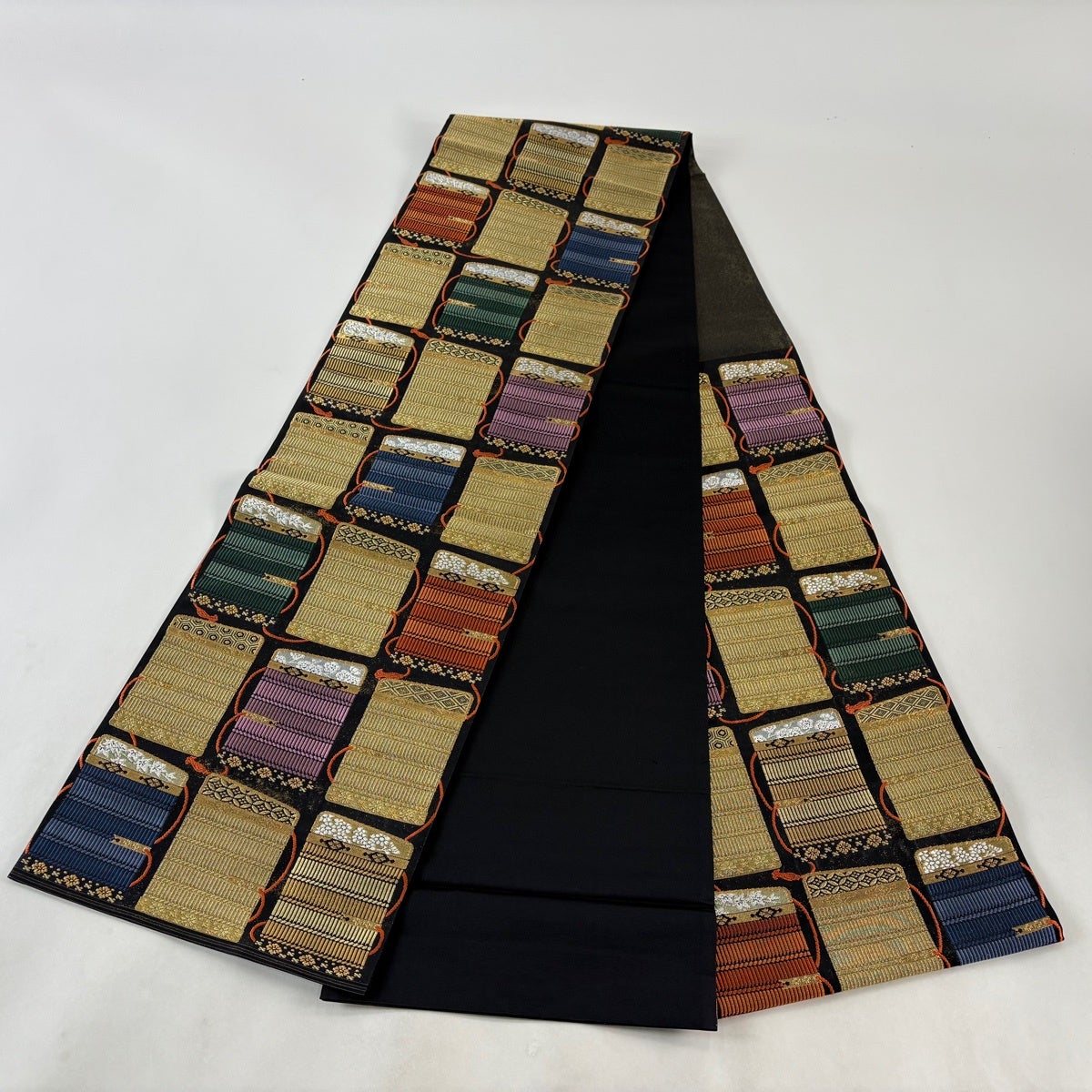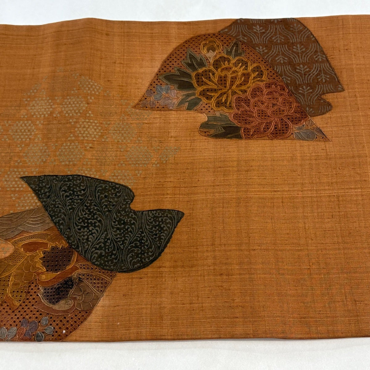 袋帯とは女性用の主にフォーマル用の帯で第一礼装として着用されることが多く、形状は表地にのみ柄があり裏地は無地になるように袋状に織って作成されたため袋帯という名が付きました。 帯を締める際にはおめでたいことが重なりますようにという願いが込められている二重太鼓や成人式の際に振袖に見かけるふくら雀や文庫結びなどの変わり結びを用いて着用します。