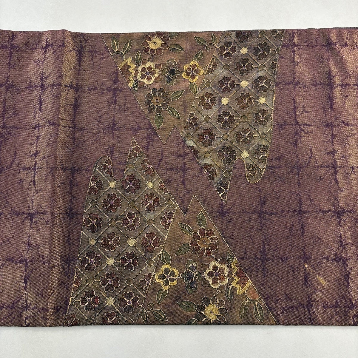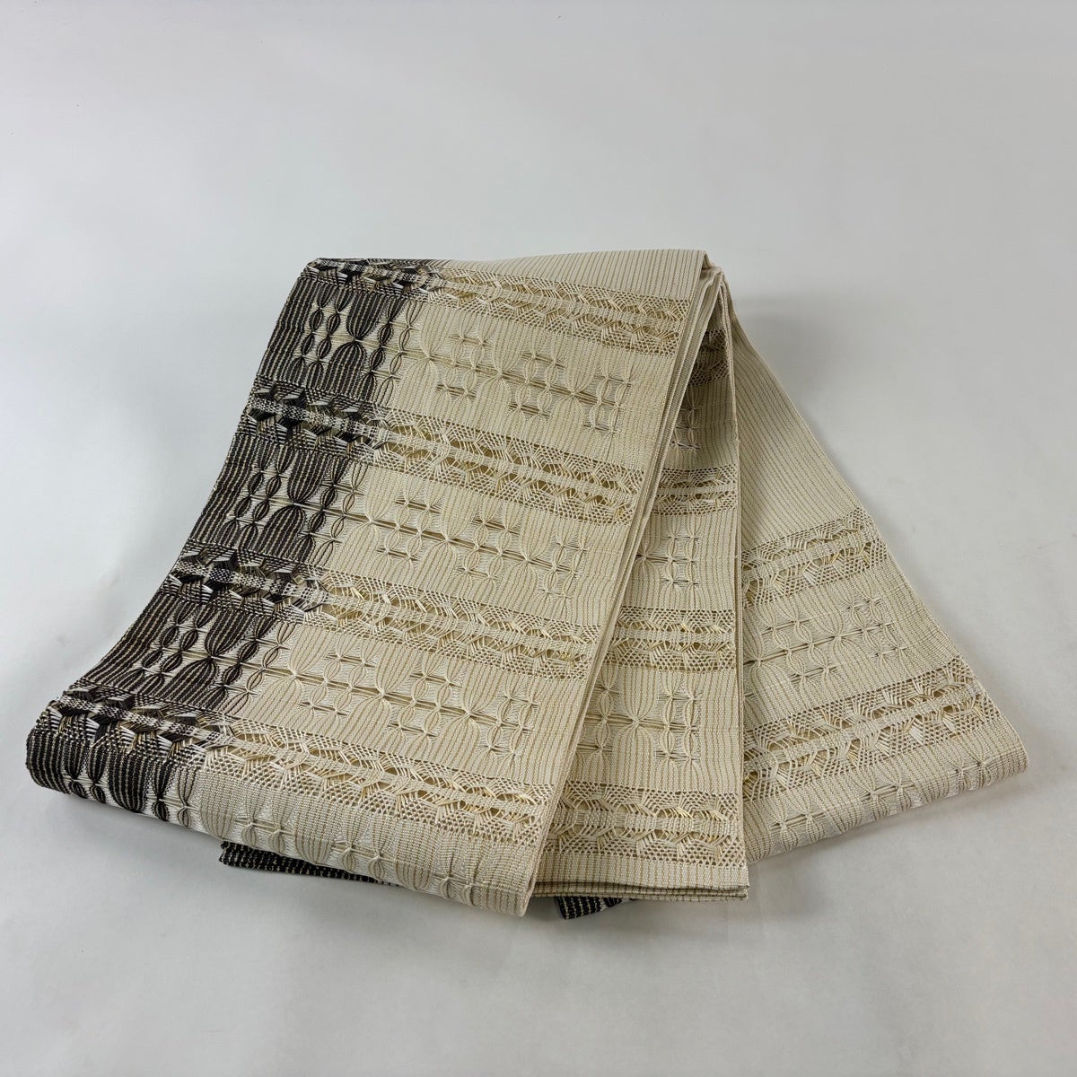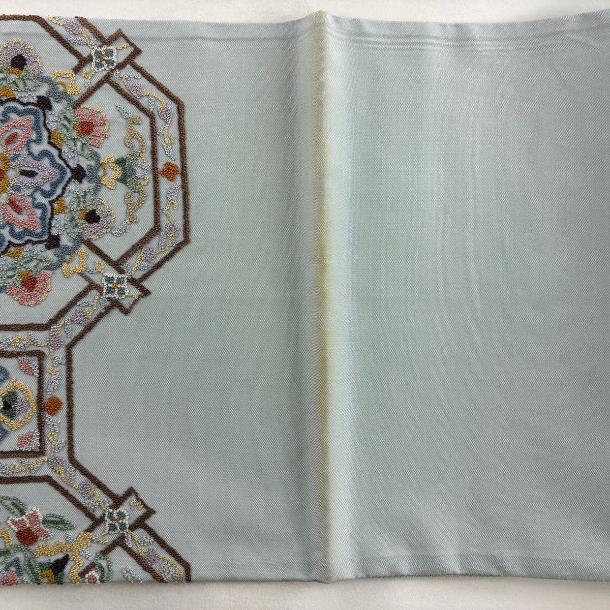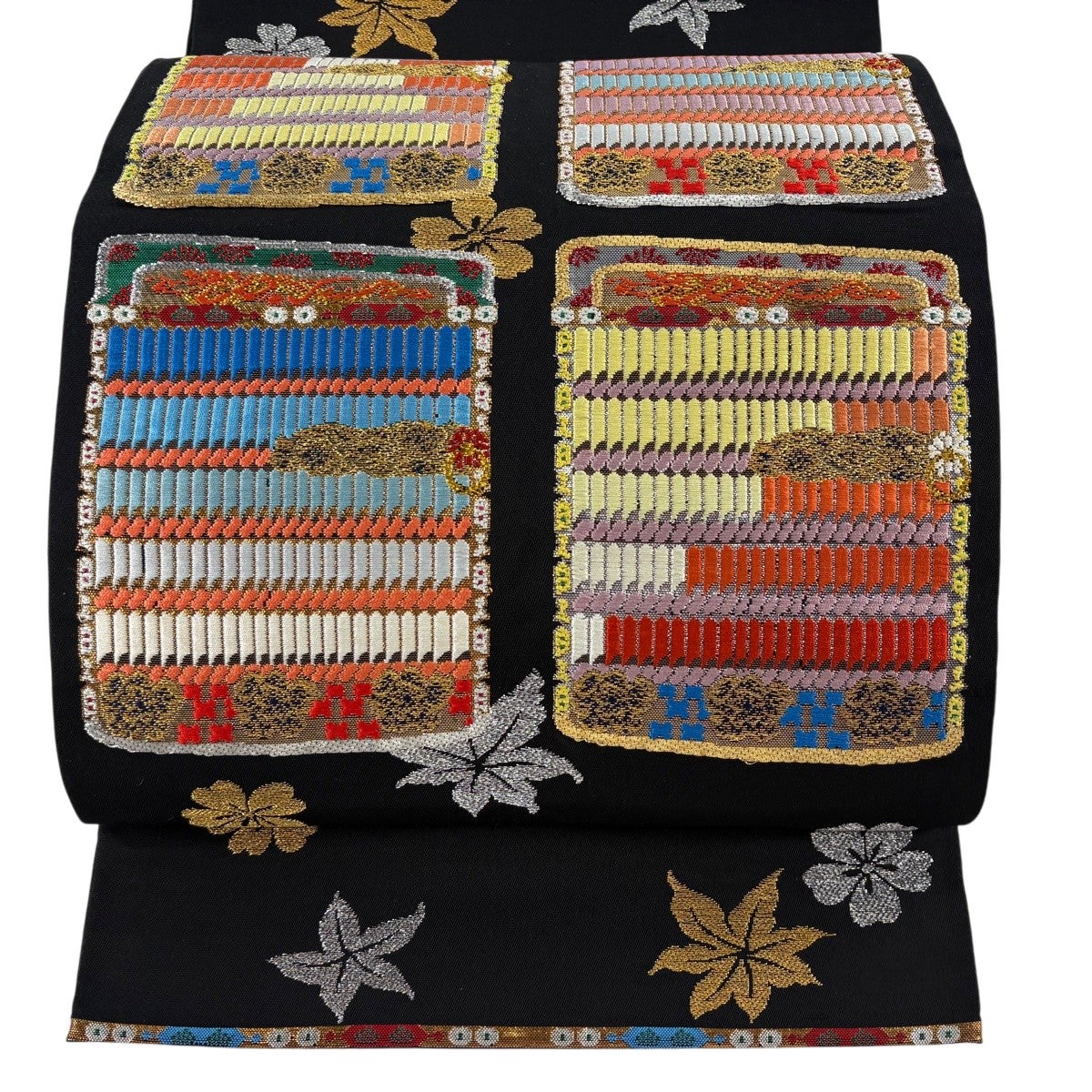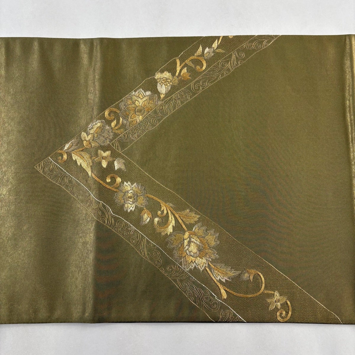 袋帯とは女性用の主にフォーマル用の帯で第一礼装として着用されることが多く、形状は表地にのみ柄があり裏地は無地になるように袋状に織って作成されたため袋帯という名が付きました。 帯を締める際にはおめでたいことが重なりますようにという願いが込められている二重太鼓や成人式の際に振袖に見かけるふくら雀や文庫結びなどの変わり結びを用いて着用します。