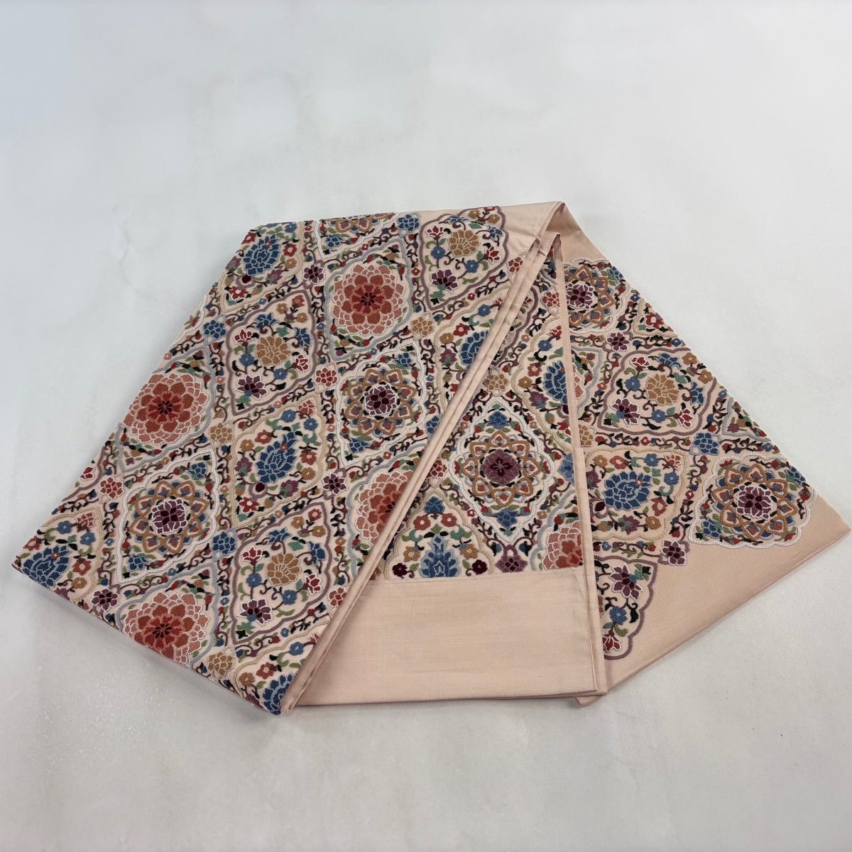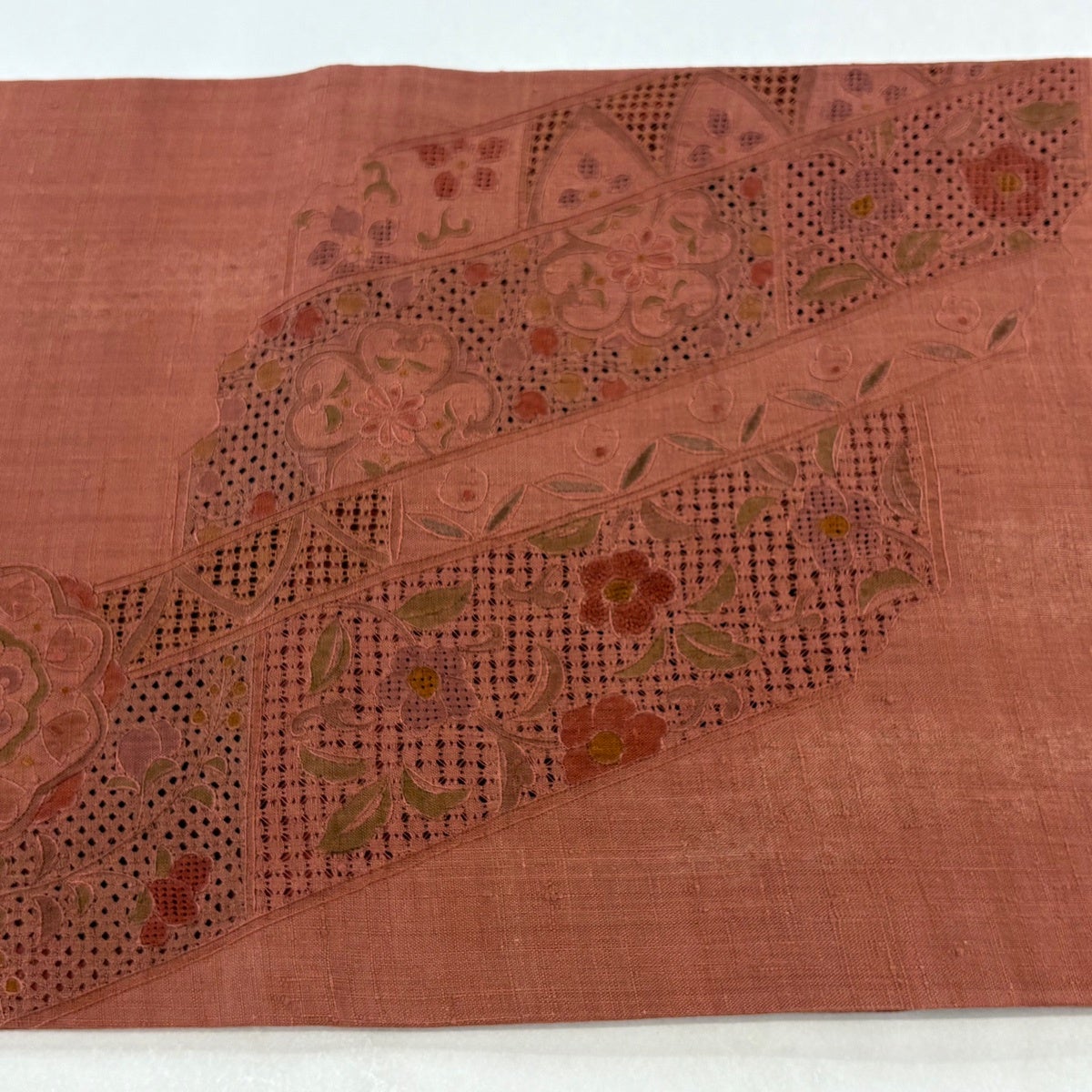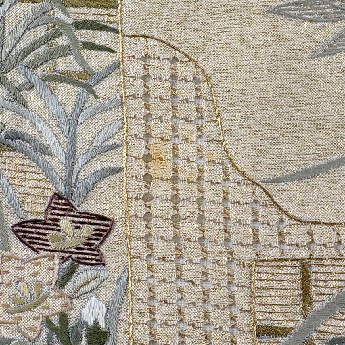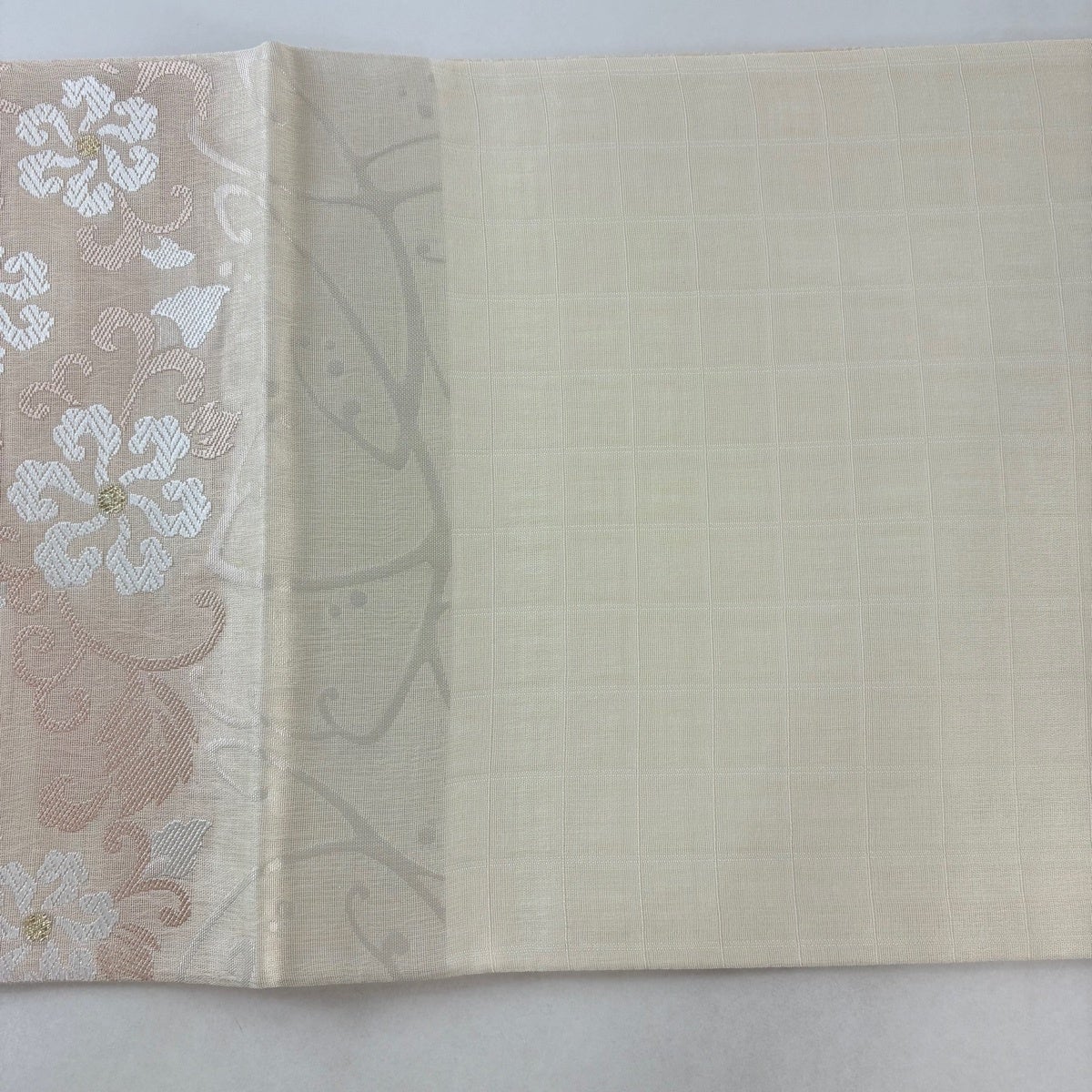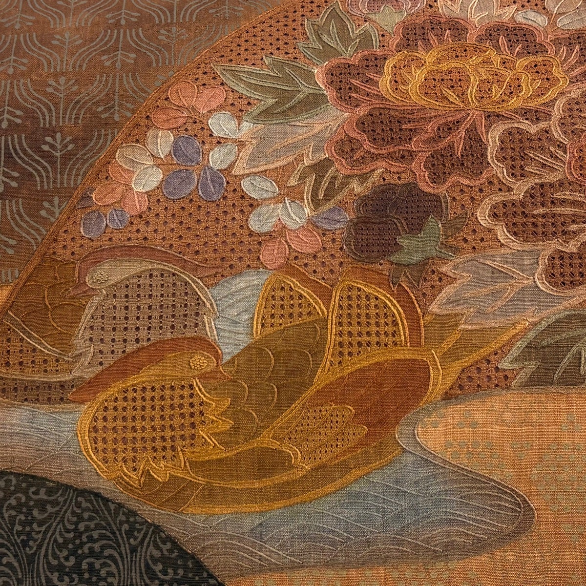 袋帯とは女性用の主にフォーマル用の帯で第一礼装として着用されることが多く、形状は表地にのみ柄があり裏地は無地になるように袋状に織って作成されたため袋帯という名が付きました。 帯を締める際にはおめでたいことが重なりますようにという願いが込められている二重太鼓や成人式の際に振袖に見かけるふくら雀や文庫結びなどの変わり結びを用いて着用します。