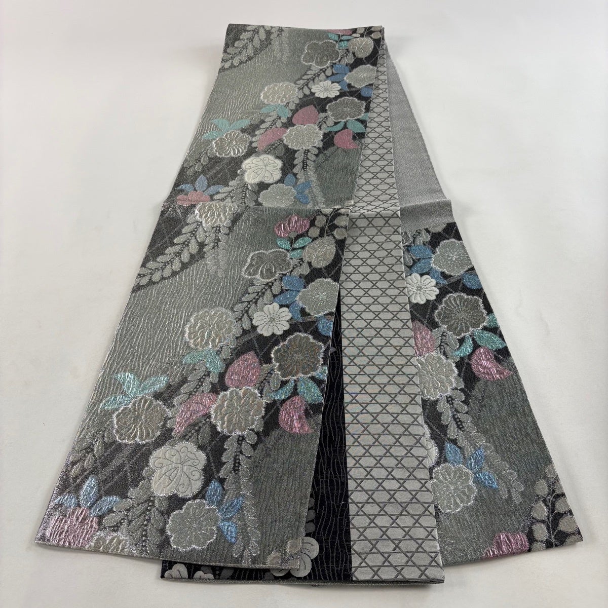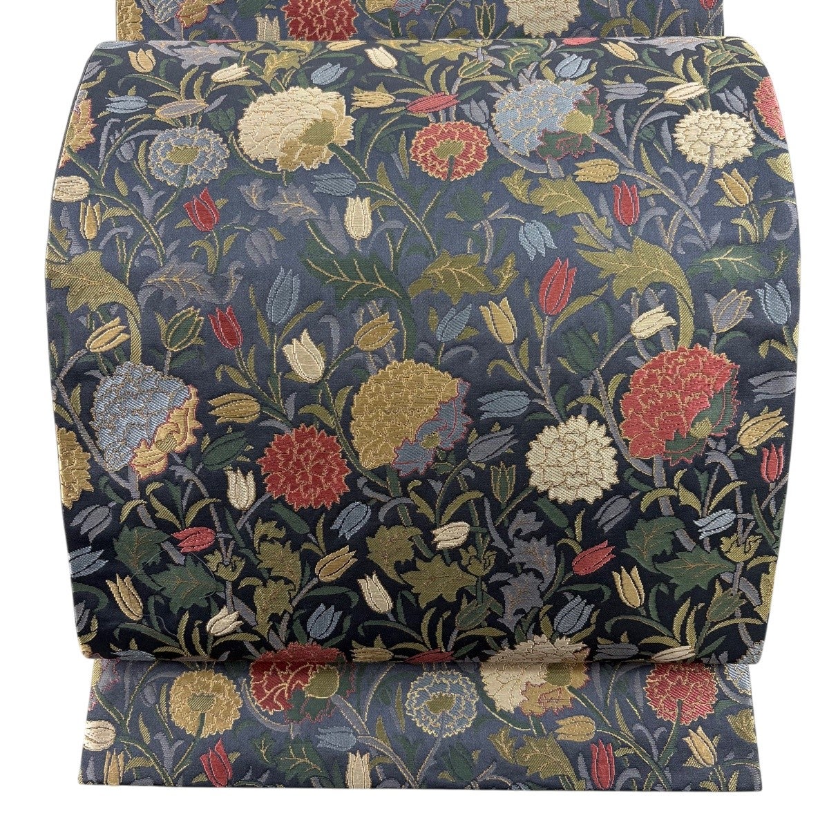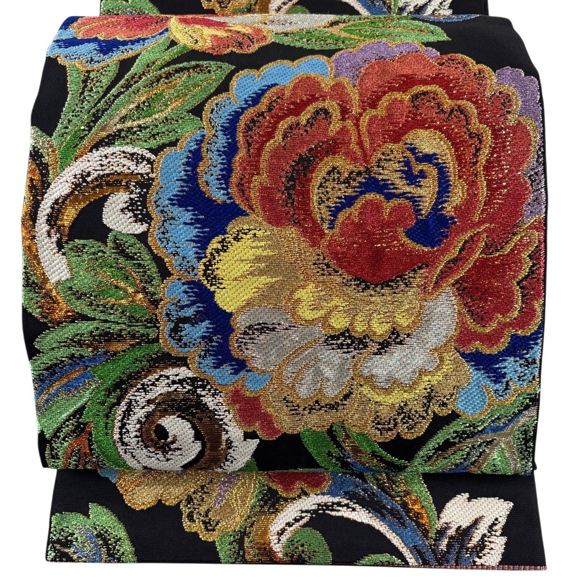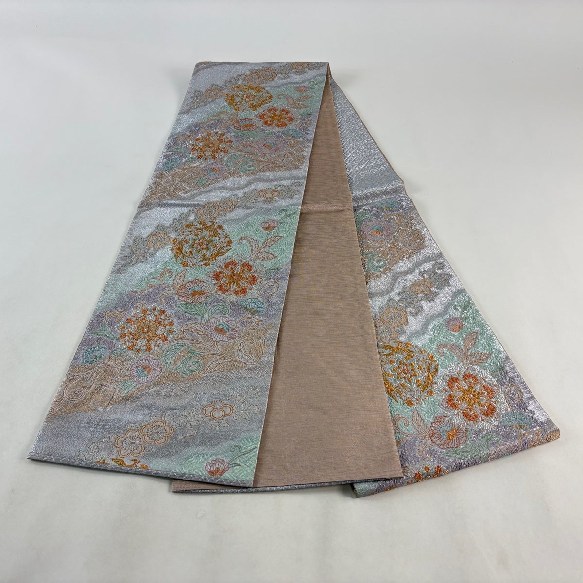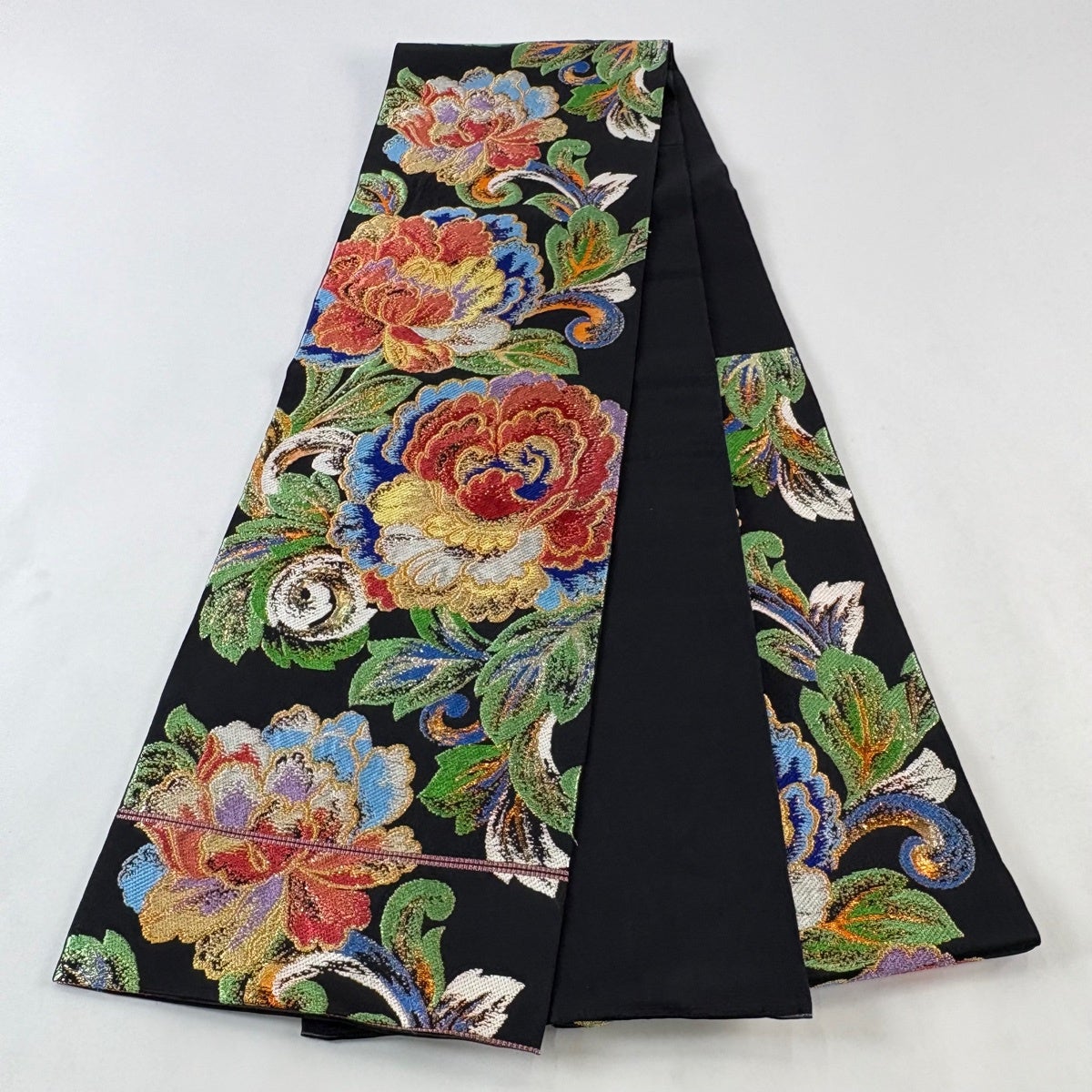 袋帯とは女性用の主にフォーマル用の帯で第一礼装として着用されることが多く、形状は表地にのみ柄があり裏地は無地になるように袋状に織って作成されたため袋帯という名が付きました。 帯を締める際にはおめでたいことが重なりますようにという願いが込められている二重太鼓や成人式の際に振袖に見かけるふくら雀や文庫結びなどの変わり結びを用いて着用します。
