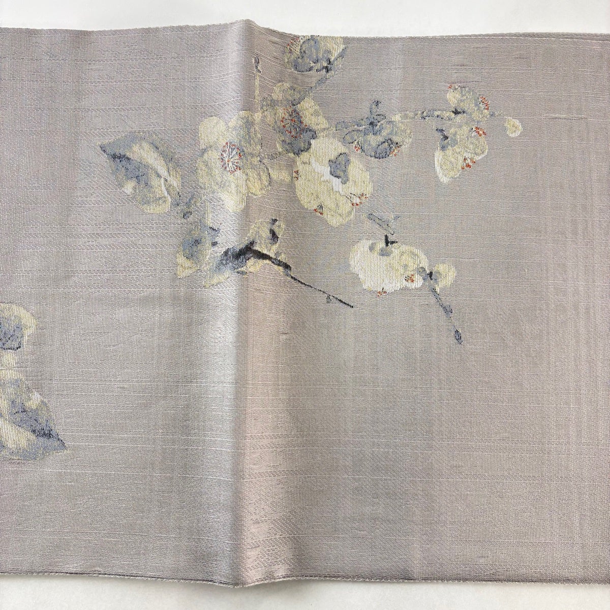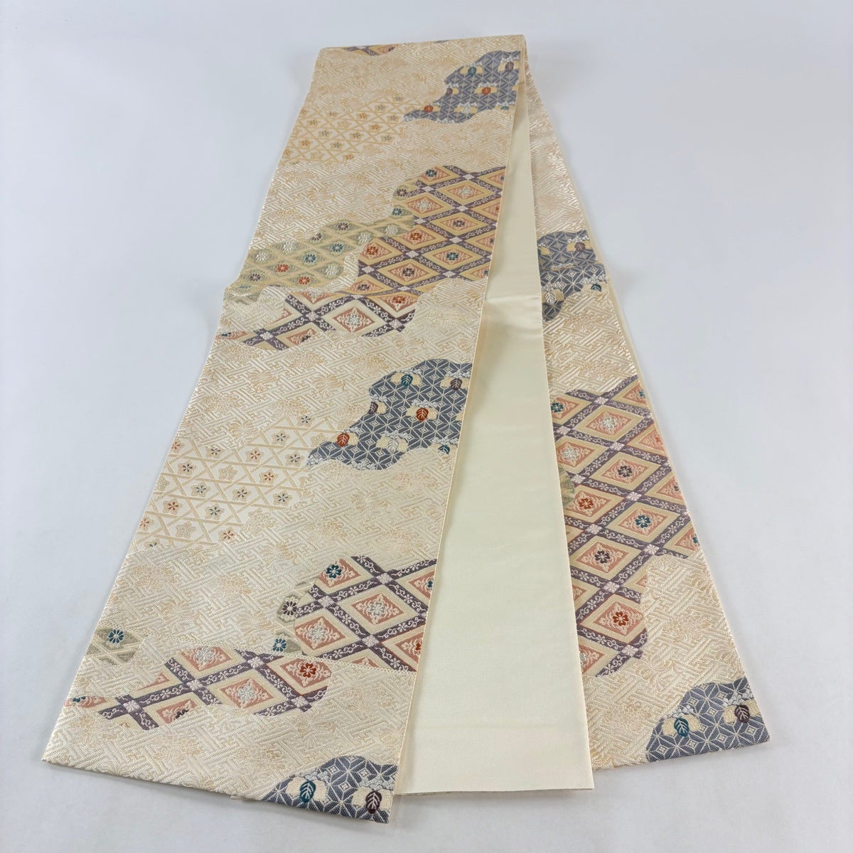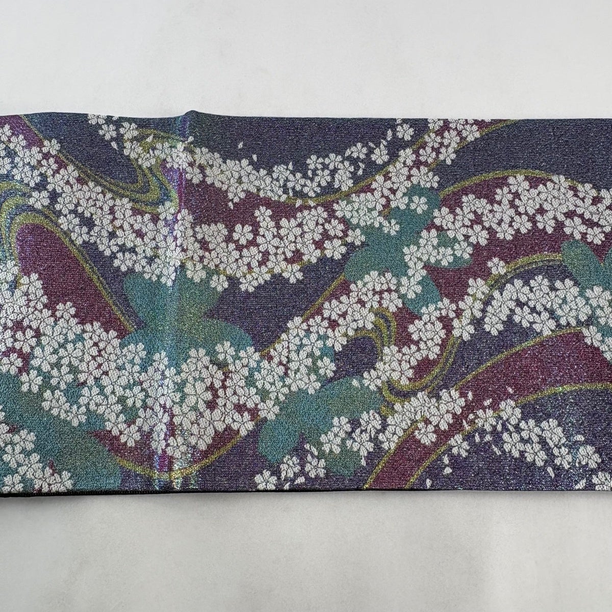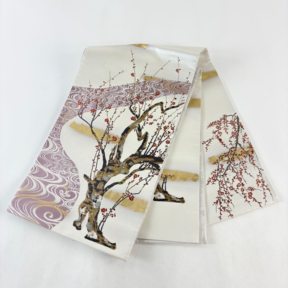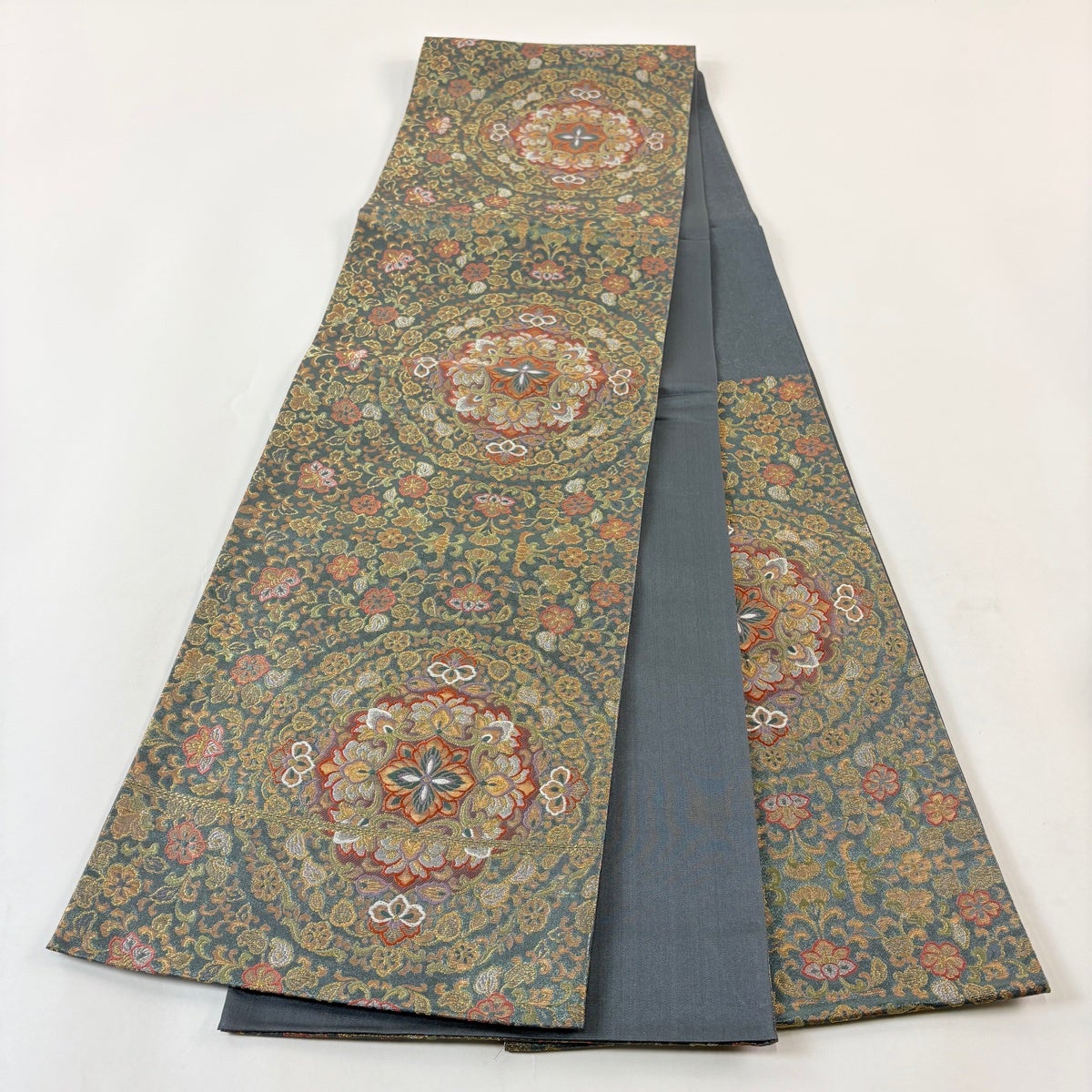 袋帯とは女性用の主にフォーマル用の帯で第一礼装として着用されることが多く、形状は表地にのみ柄があり裏地は無地になるように袋状に織って作成されたため袋帯という名が付きました。 帯を締める際にはおめでたいことが重なりますようにという願いが込められている二重太鼓や成人式の際に振袖に見かけるふくら雀や文庫結びなどの変わり結びを用いて着用します。